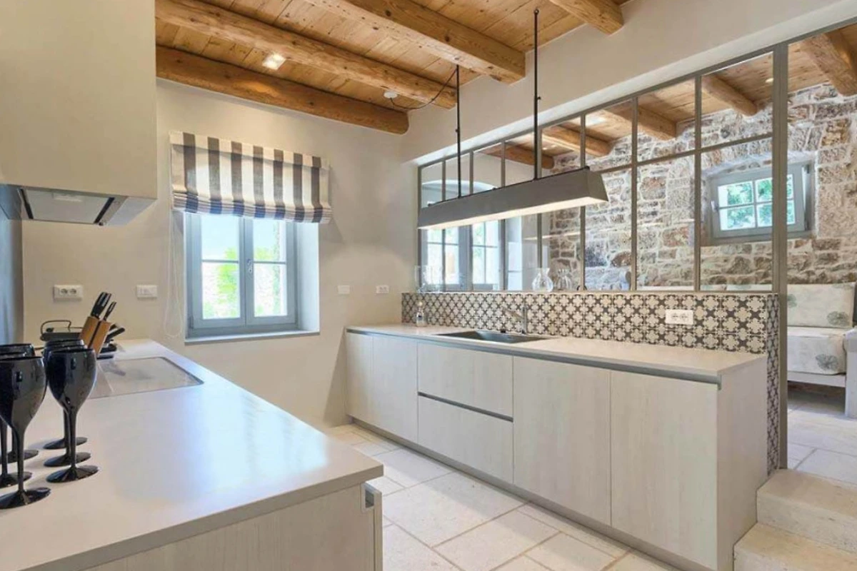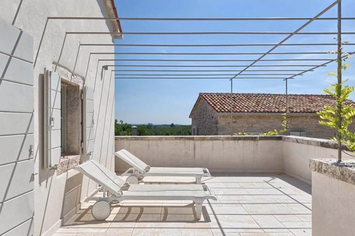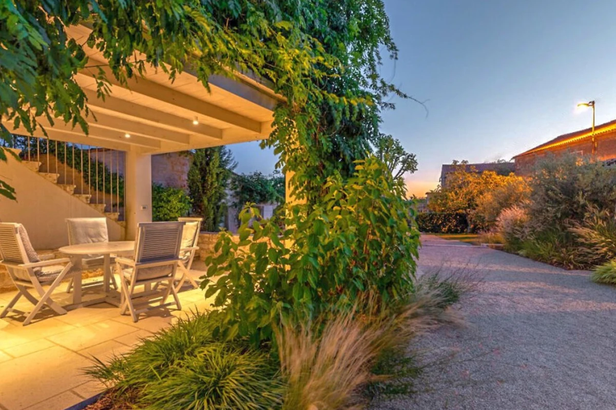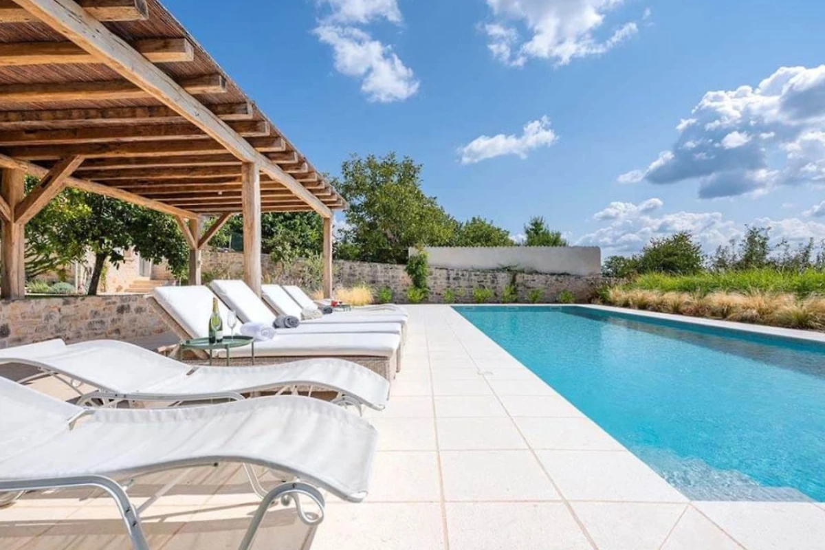 Im ruhigen Weiler Radovani, nicht weit von Višnjan entfernt, finden Sie die einzigartige Villa Charlotta. Dieses alte istrische Bauernhaus wurde mit einer Kombination aus Alt und Neu renoviert, wobei traditionelle istrische Elemente gekonnt in luxuriöse Innenräume integriert wurden. Der Komplex besteht aus 3 unabhängigen Wohneinheiten und einem Poolhaus mit 7 Schlafzimmern und 7 Badezimmern für 13 Personen, und auch Haustiere sind willkommen. Die Villa Charlotta bietet Ihnen eine neue Dimension der Entspannung mit einem traumhaften Garten mit mehreren Innenhöfen und einem Swimmingpool, völliger Privatsphäre inmitten von mediterranem Grün und einem Concierge-Service, der ein frisch zubereitetes Frühstück und die Wartung der Villa beinhaltet.