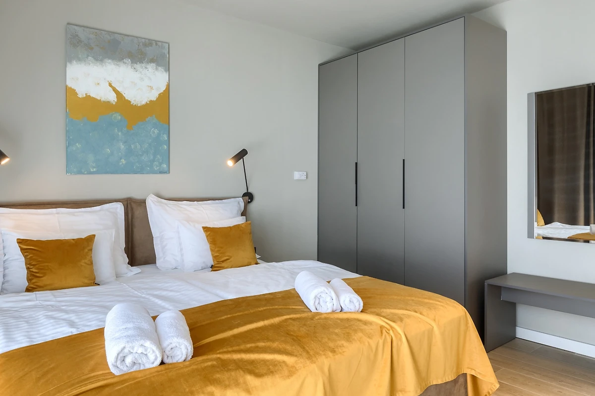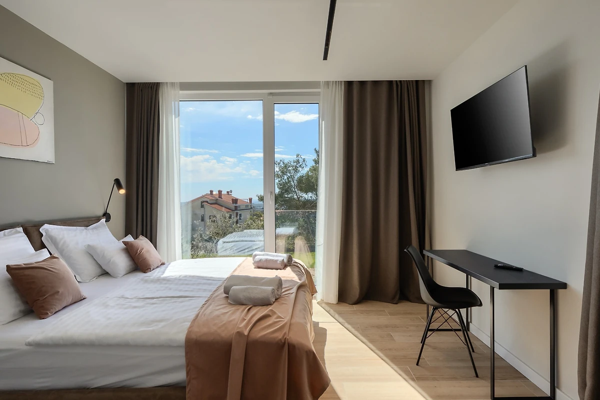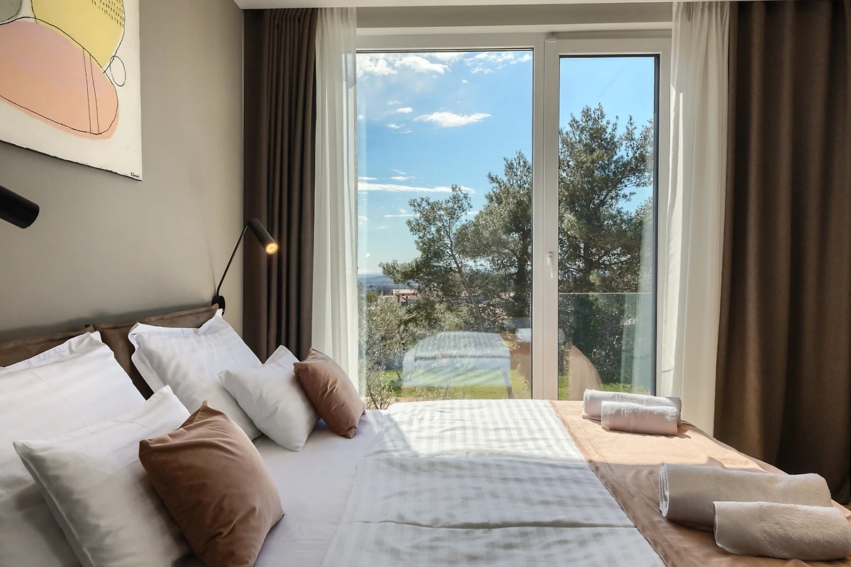 Villa Tonka hat 4 modern eingerichtete Schlafzimmer, jedes mit eigenem Bad. Alle Zimmer befinden sich in der 1. Etage und sind mit Doppelbetten ausgestattet. Darüber hinaus haben 3 Schlafzimmer Zugang zu einem Balkon mit Meerblick.