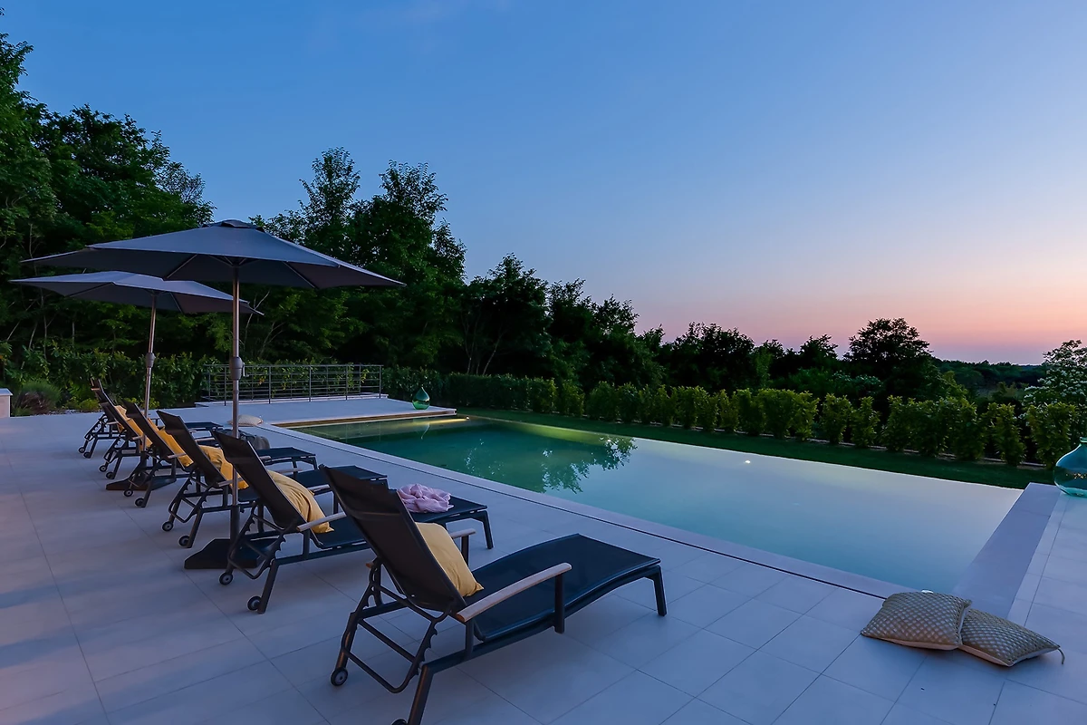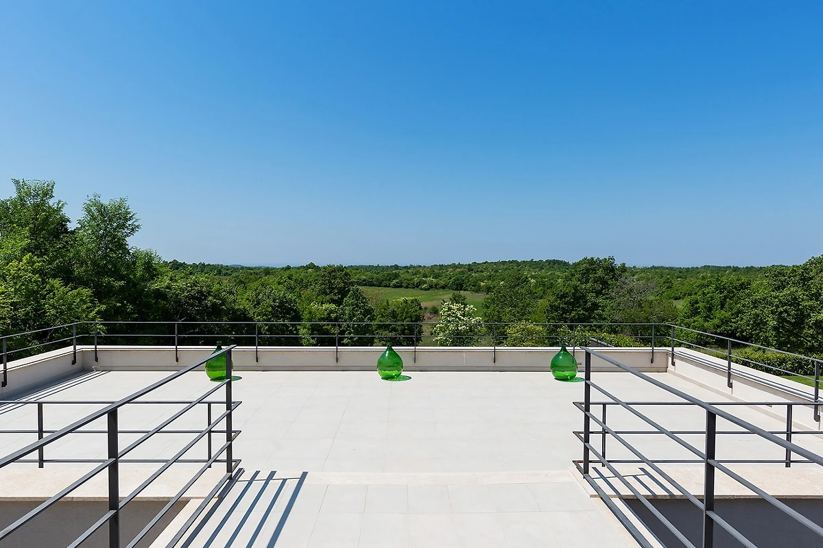 Der 702 m² grosse Garten ist auf allen Seiten von Hecken umgeben und bietet einen wunderschönen Blick auf die istrische Landschaft. Der 60 m² grosse Swimmingpool, der über eine Treppe zu erreichen ist, bietet zu jeder Tageszeit Erfrischung. Eine Aussendusche ist ebenfalls vorhanden. Die Liegewiese am Pool ist der ideale Ort, um sich bei einer guten Sommerlektüre zu entspannen. Wenn Sie sich an einem anderen Ort entspannen möchten, können Sie den überdachten Wellnessbereich mit Jacuzzi nutzen, von dem aus Sie ebenfalls eine schöne Aussicht geniessen können. In einer ähnlich reizvollen Umgebung können Sie auf der überdachten Terrasse mit einem grossen Tisch für 10 Personen, einer voll ausgestatteten Sommerküche und einem Gasgrill Zeit mit Ihren Lieben verbringen. Für den ultimativen Luxus während Ihres Aufenthalts in der raffinierten Villa Damian steht Ihnen gegen Aufpreis ein privater Koch zur Verfügung.