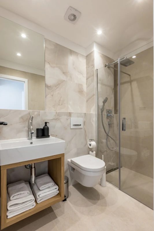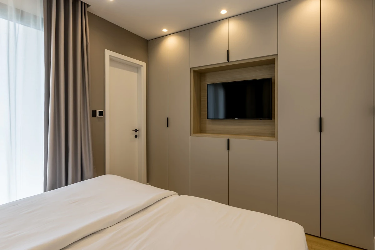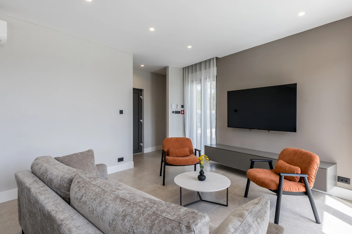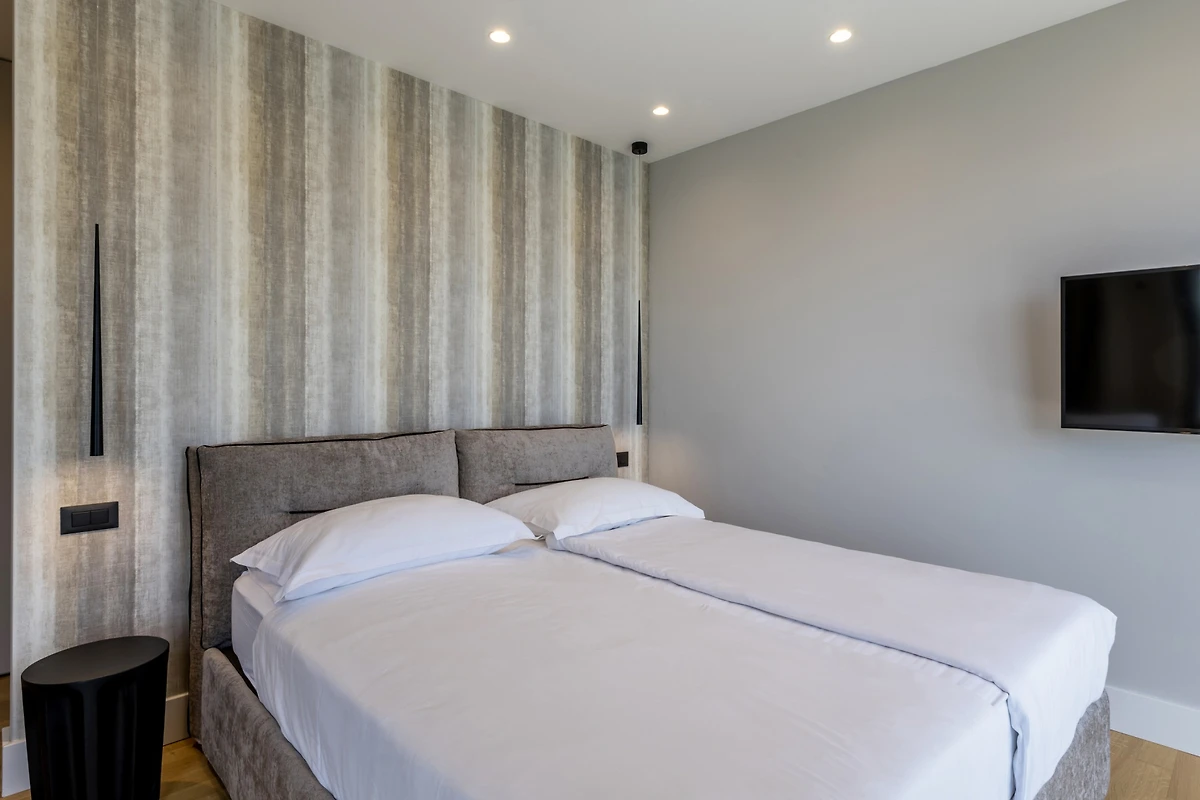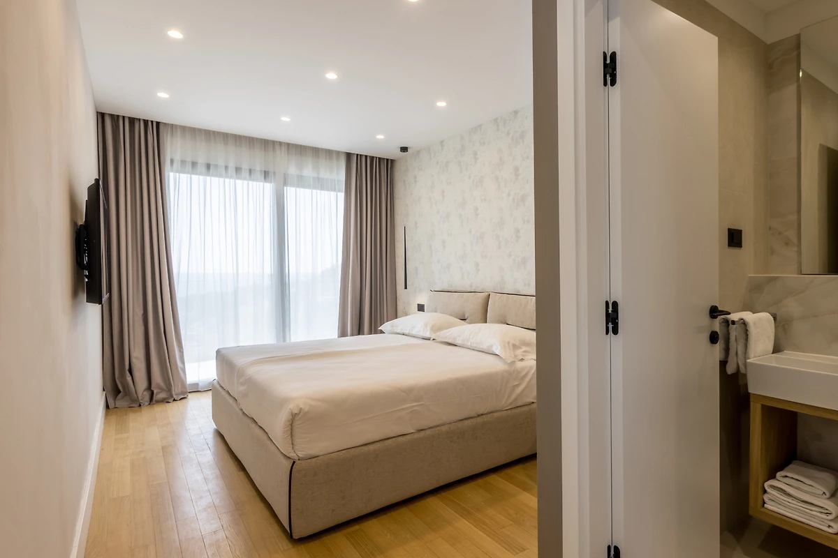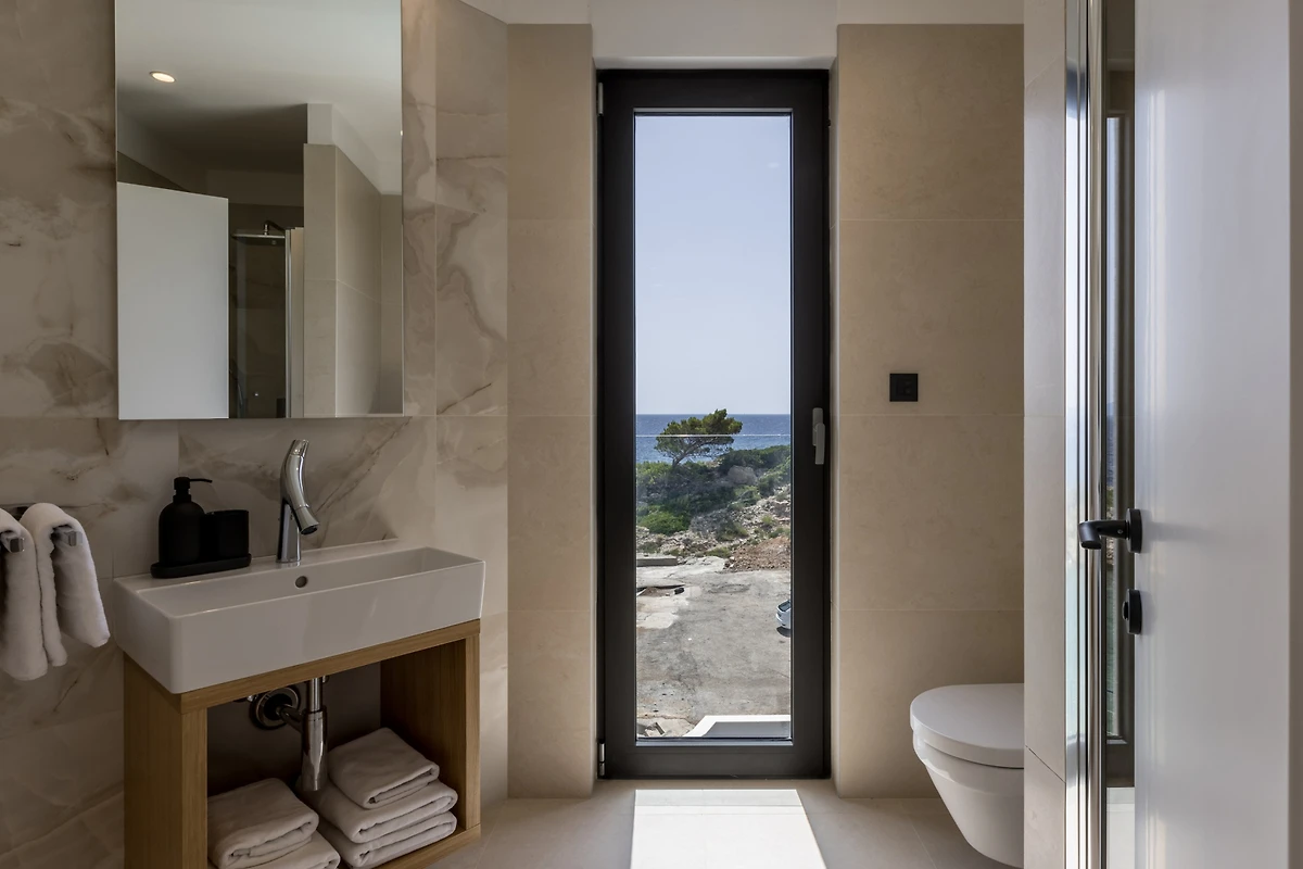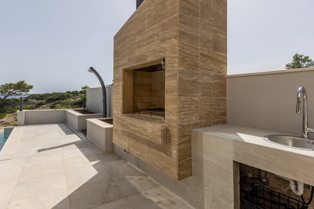 Das Innere der Villa Luca ist 226 m² gross und besteht aus 2 Etagen. Im Erdgeschoss befindet sich ein grosser, heller, offener Raum, bestehend aus einer voll ausgestatteten Küche mit einer grossen Insel, einem Esszimmer mit 8 Sitzplätzen und einem Wohnzimmer mit TV. Der Raum ist komplett zum Meer hin ausgerichtet, um die Aussicht optimal zu nutzen, und zahlreiche Balkontüren schaffen die Illusion einer Verbindung zwischen Innen und Aussen. Wir glauben, dass das Kochen und Entspannen in einem solchen Raum ein wahres Vergnügen sein wird, und was auch immer Sie tun, Sie werden in der Lage sein, Ihre Augen auf das Schönste zu richten - die blaue Adria.