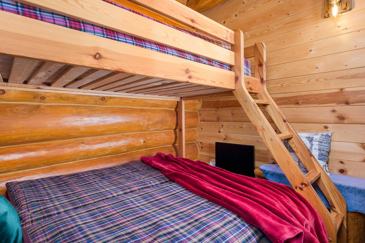 Es gibt 2 Schlafzimmer in der Villa, 1 mit einem Doppelbett und 1 mit einem Etagenbett, das als Kinderzimmer genutzt werden kann. Es gibt auch eine Galerie mit einem Schlafsofa. Es gibt 2 Bäder in der Villa, 1 im Erdgeschoss und 1 im 1. Es gibt auch eine Gästetoilette.