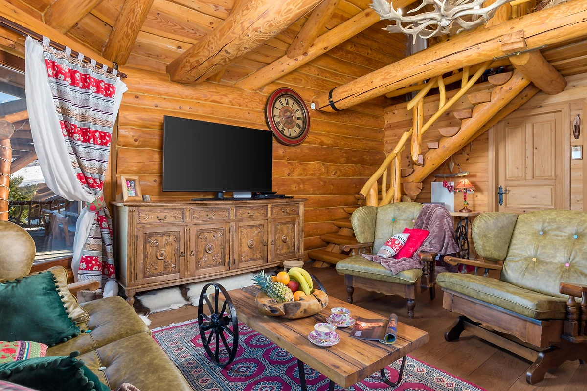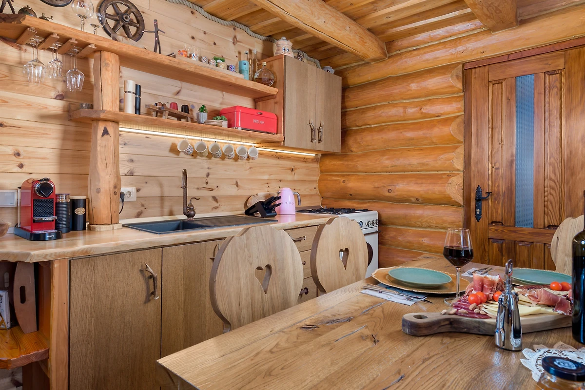Das Innere der Villa erstreckt sich über 200 m² und besteht aus 2 Etagen + einer Galerie. Sobald Sie das Haus betreten, werden Sie erstaunt sein. Und zwar auf eine wirklich gute Art und Weise. Massivholzoberflächen im ganzen Haus, massgefertigte Holzmöbel, zahlreiche einzigartige Details, die ebenfalls handgefertigt sind, und Innenkamine, die Sie an kalten Tagen wärmen, sind nur einige der Besonderheiten. Im Inneren des Hauses finden Sie mehrere Bereiche zum Entspannen, vor allem im Wohnzimmer und auf der Galerie. Bequeme Sofas sind ideal für einen entspannten Nachmittag mit Blick auf die umliegenden Hügel oder für eine Runde Brettspiele. In der voll ausgestatteten Küche stehen moderne Geräte für die Zubereitung von Mahlzeiten bereit, die Sie im Innen- oder Aussenbereich geniessen können. Die Zimmer sind klimatisiert und für kältere Tage gibt es neben dem Kamin auch eine Fussbodenheizung.