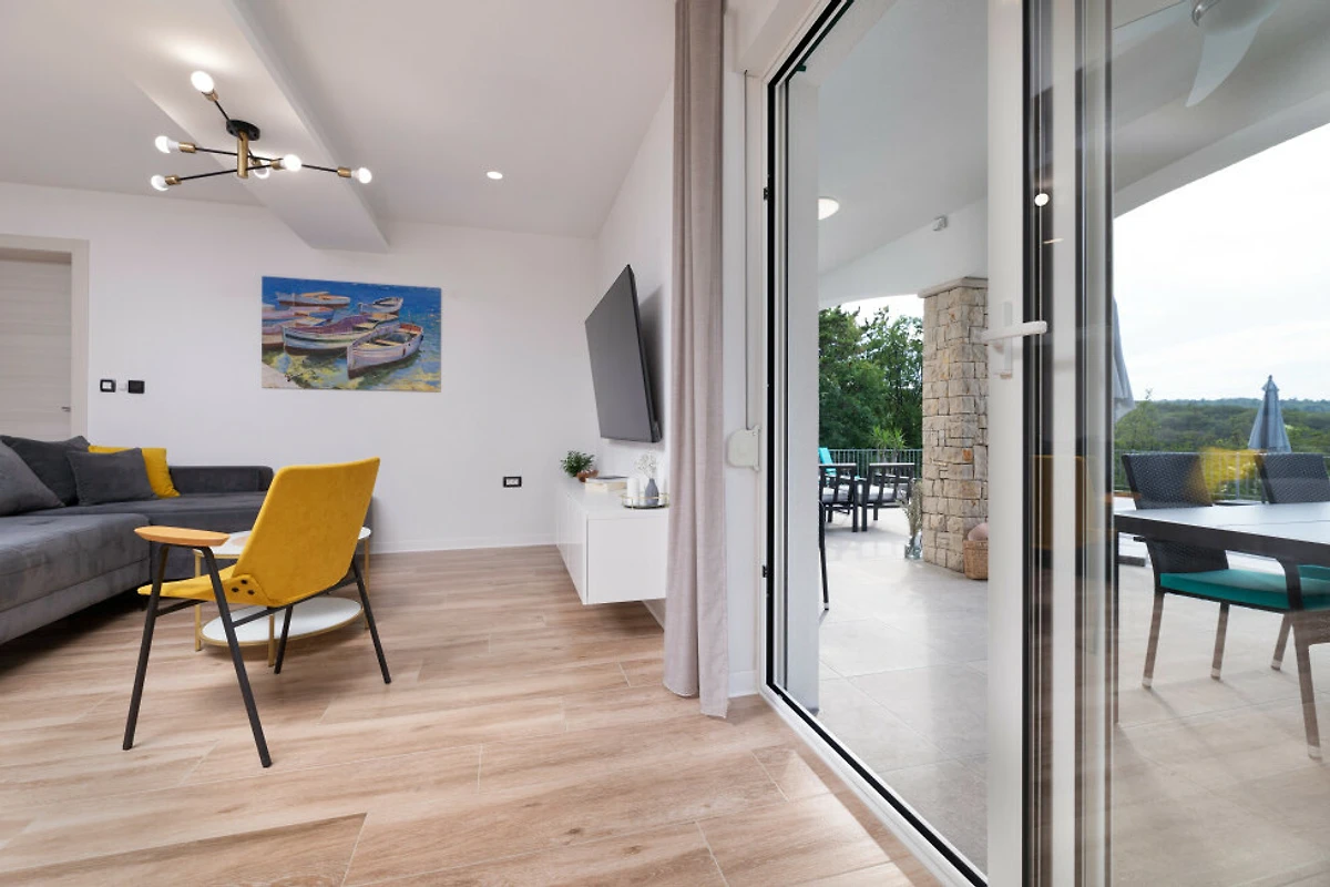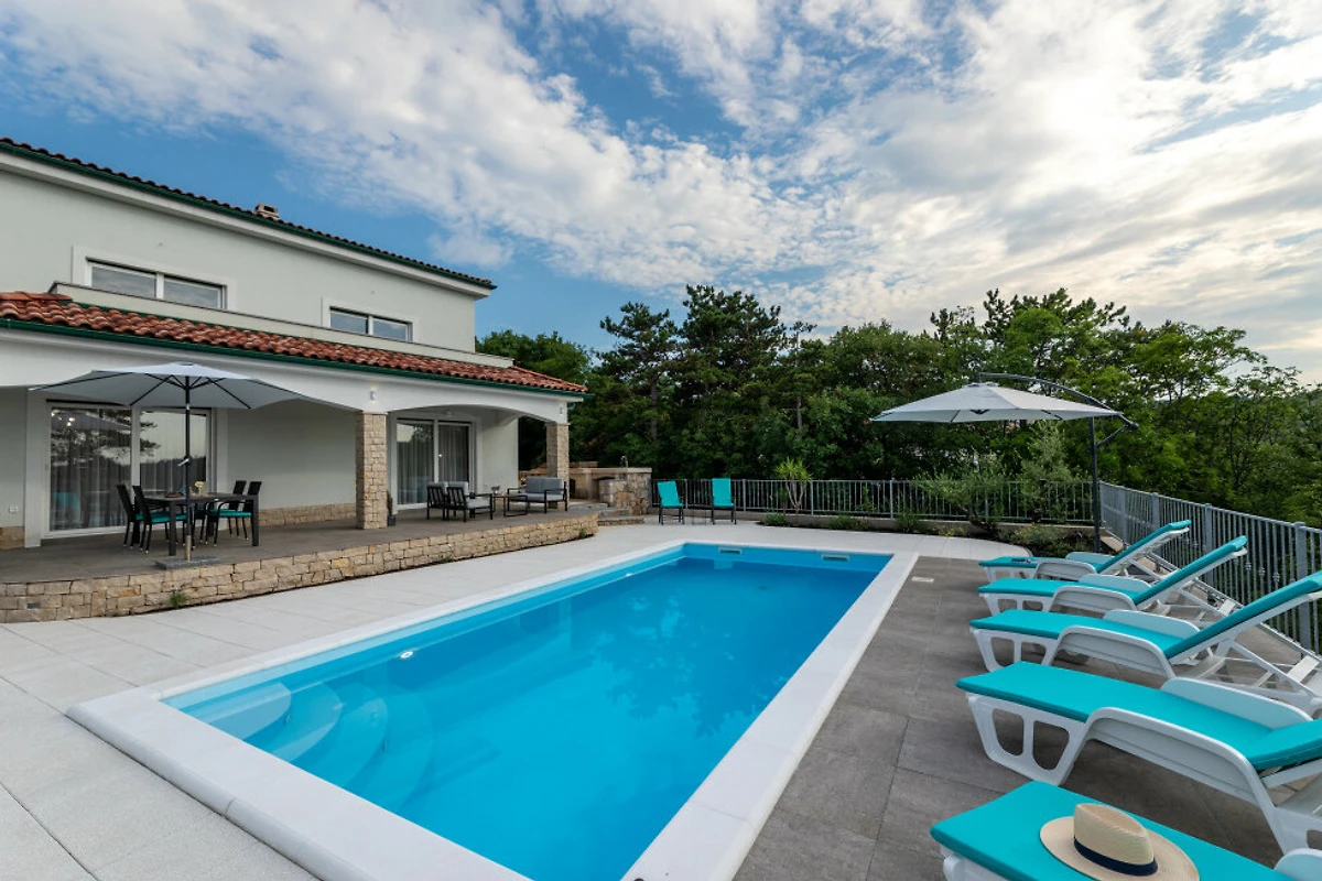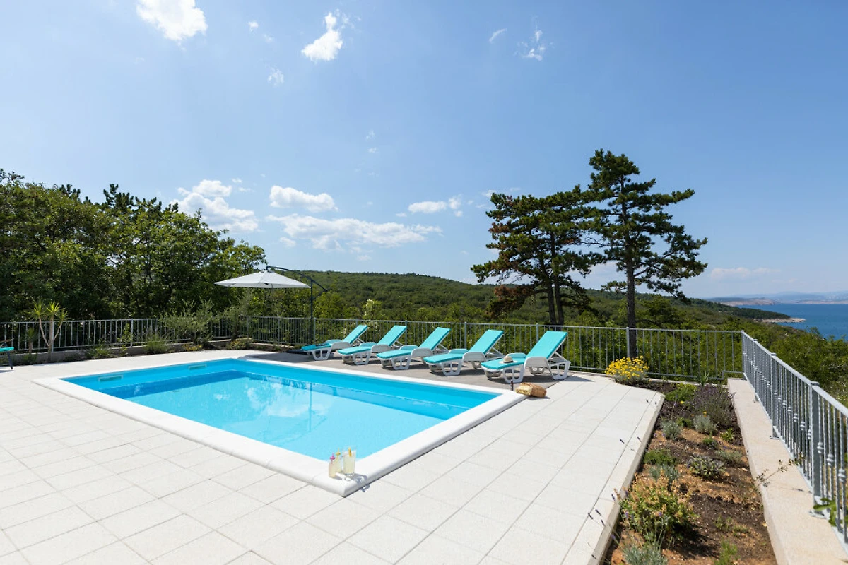 Eingebettet in die malerische Landschaft von Dobrinj bietet diese geräumige 130 Quadratmeter grosse Villa den perfekten Rückzugsort für Familien und Paare, die Komfort und Entspannung suchen. Mit Platz für bis zu 5 Gäste bietet diese Immobilie ein ideales Gleichgewicht zwischen Privatsphäre und gemeinsamen Wohnbereichen.