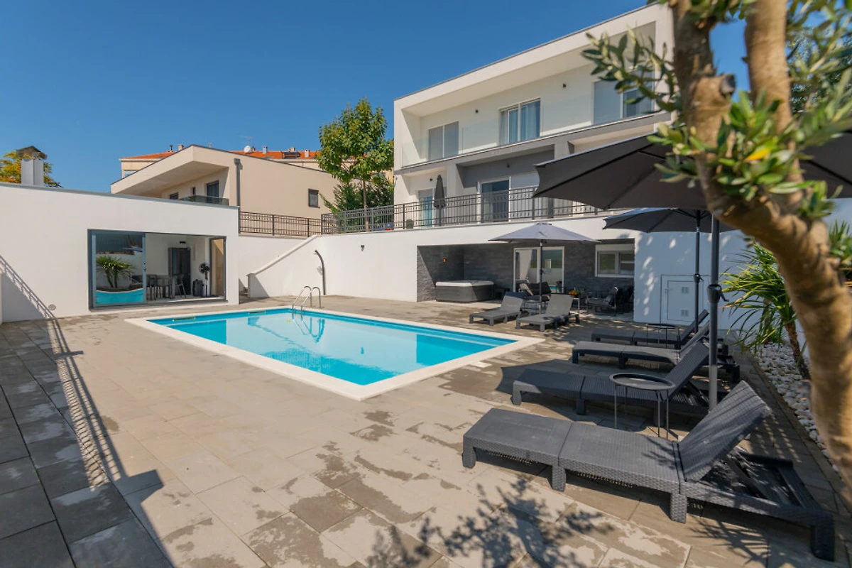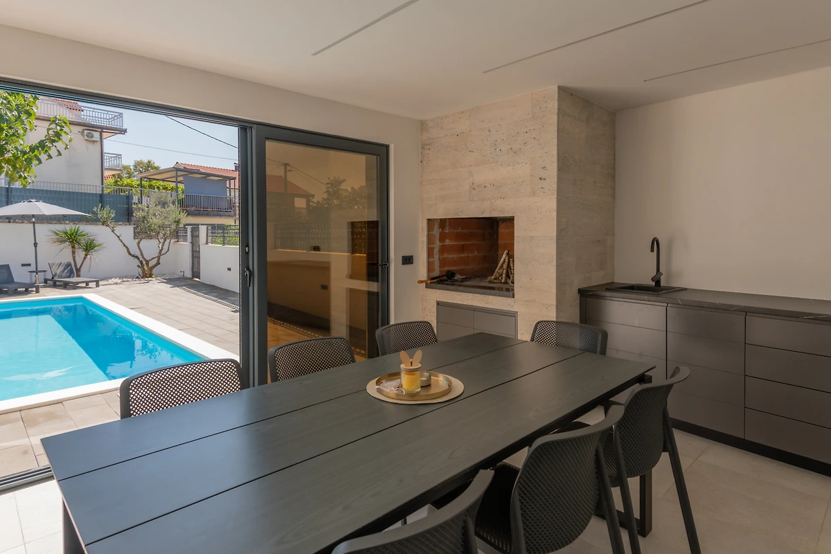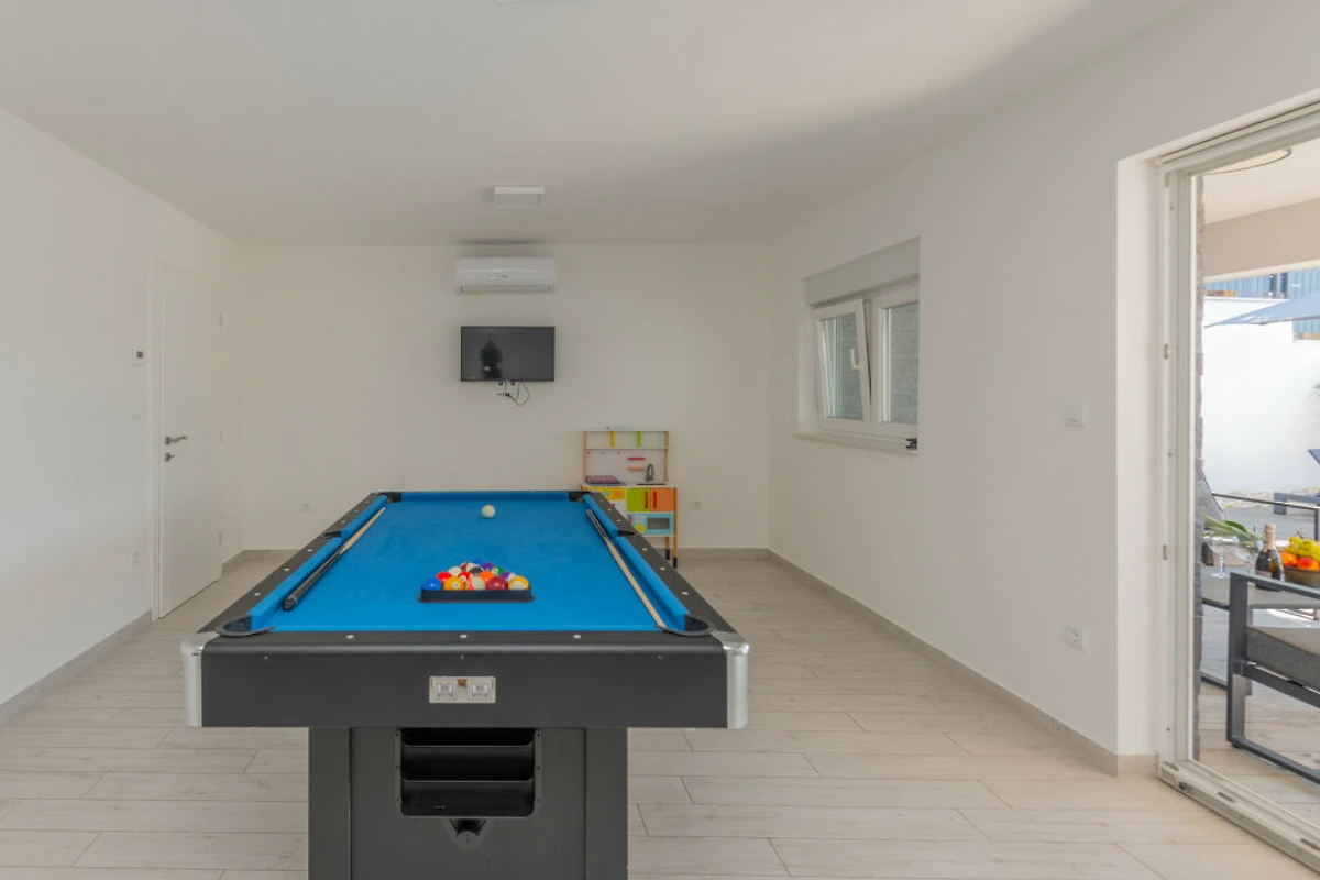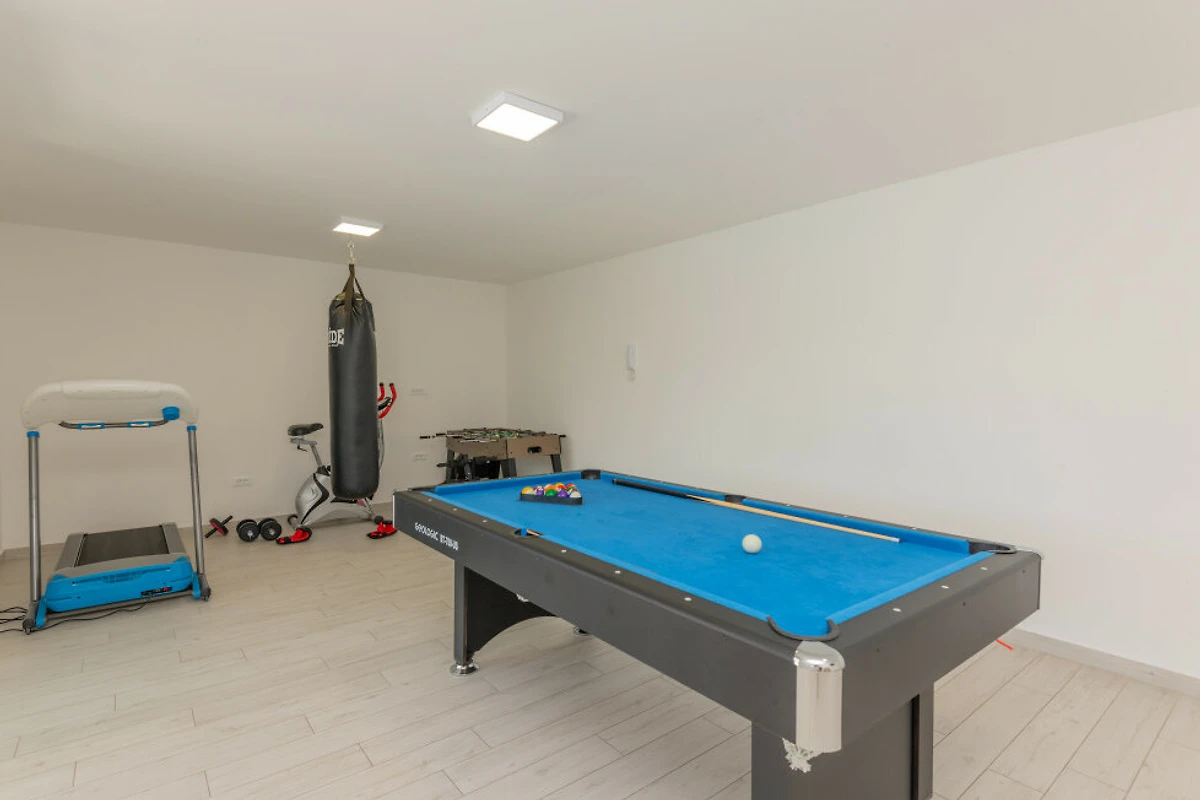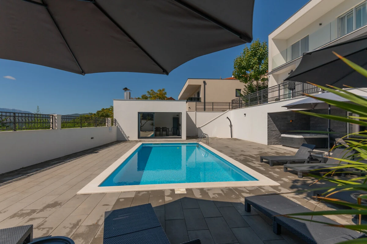 Die Villa in Makarska verfügt über 4 Schlafzimmer und hat Platz für 8 Personen. Die Villa hat eine Fläche von 230 m². Die Immobilie befindet sich 500 m von der Stadt Imotski, 500 m vom Imotski-Supermarkt, 28 km vom Sandstrand in Baška Voda und 90 km vom Flughafen Split entfernt. Die Unterkunft ist mit folgenden Gegenständen ausgestattet: Garten, Gartenmöbel, eingezäunter Garten, Terrasse, Waschmaschine, Trockner, Grill, Kamin, Bügeleisen, Internet (WLAN), Haartrockner, Fitnessstudio / Fitnesscenter, Whirlpool, Spa, Klimaanlage, privater Swimmingpool, Parkplatz im selben Gebäude, Fernseher. In der offenen Gasküche werden Kühlschrank, Mikrowelle, Ofen, Gefrierschrank, Geschirrspüler, Geschirr/Besteck, Küchenutensilien, Kaffeemaschine und Toaster bereitgestellt.
