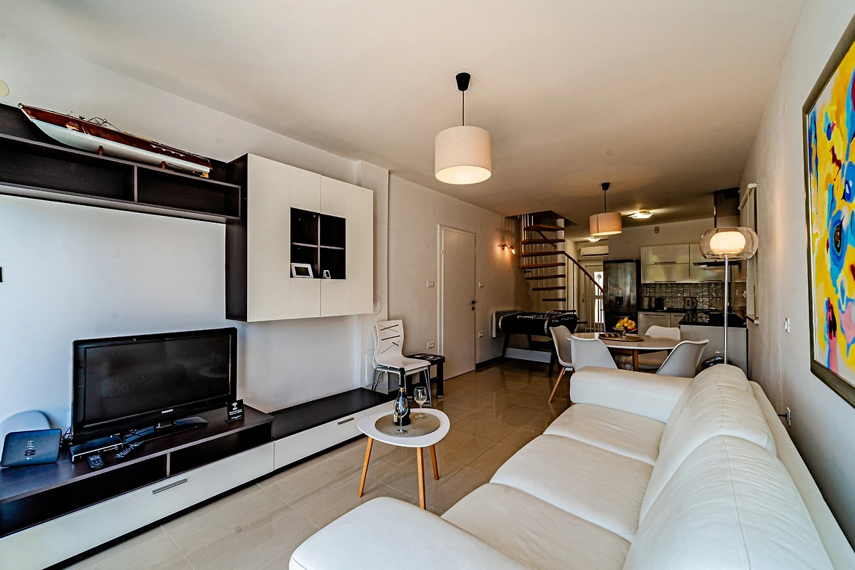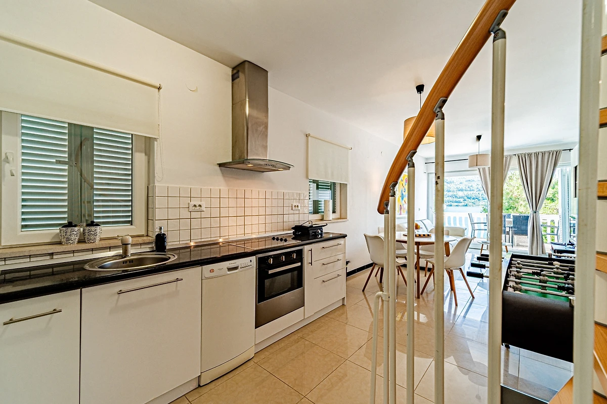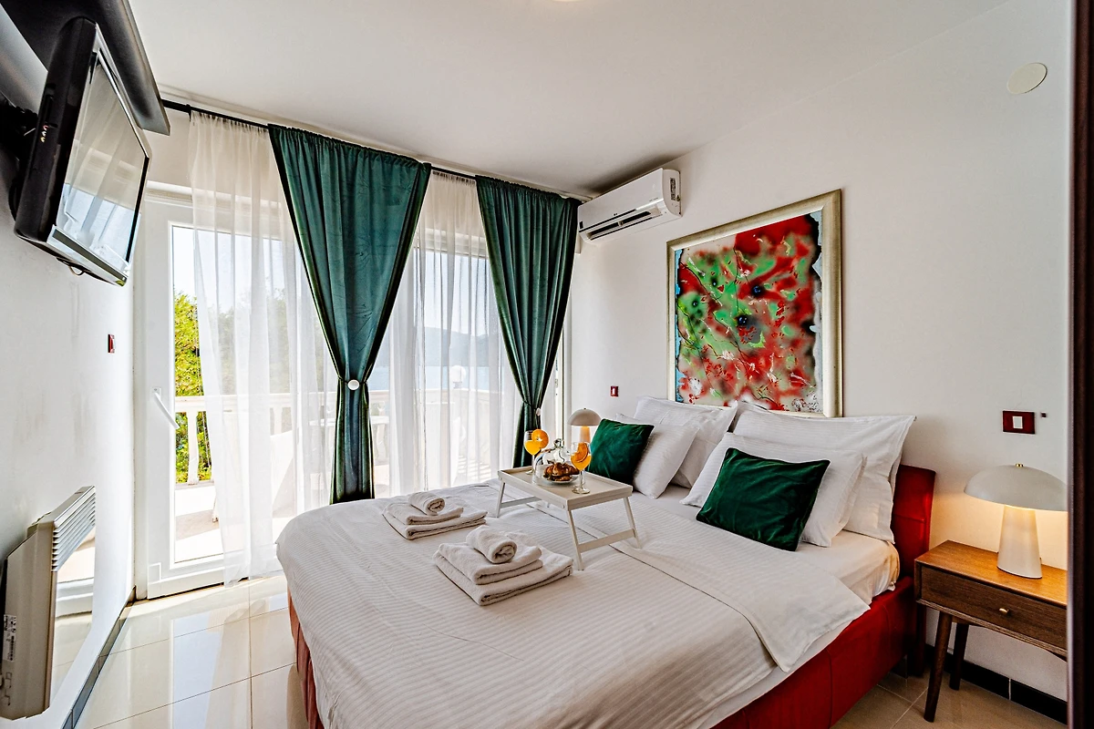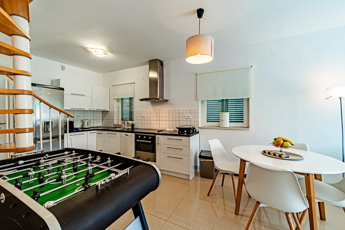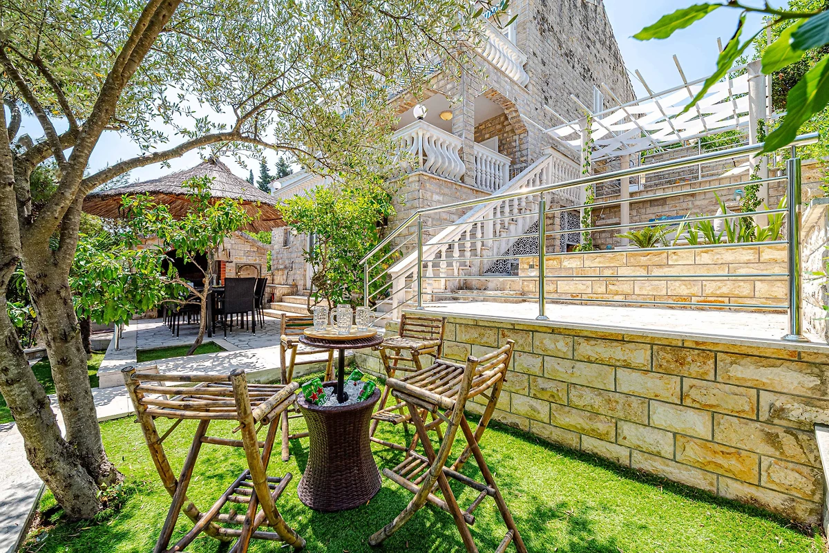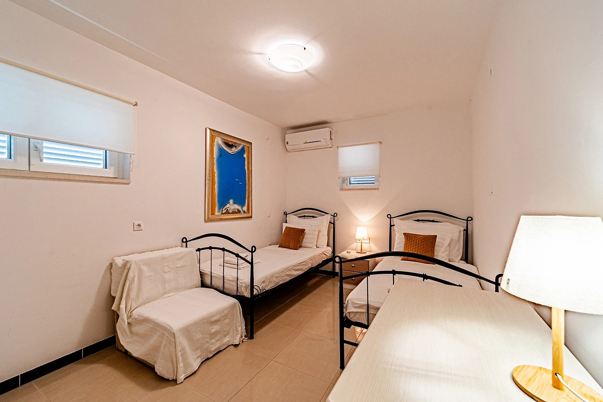 Entdecken Sie eine geräumige und luxuriöse Familienunterkunft, die im charmanten Wohnkomplex von Hodilje eingebettet ist und ein aussergewöhnliches Urlaubserlebnis für bis zu 10 Gäste bietet. Diese beeindruckende 195 Quadratmeter grosse Immobilie verfügt über 5 wunderschön eingerichtete Schlafzimmer mit variabler Bettenkonfiguration, darunter 1 Doppelbett, 3 Queensize-Betten und 2 Einzelbetten.