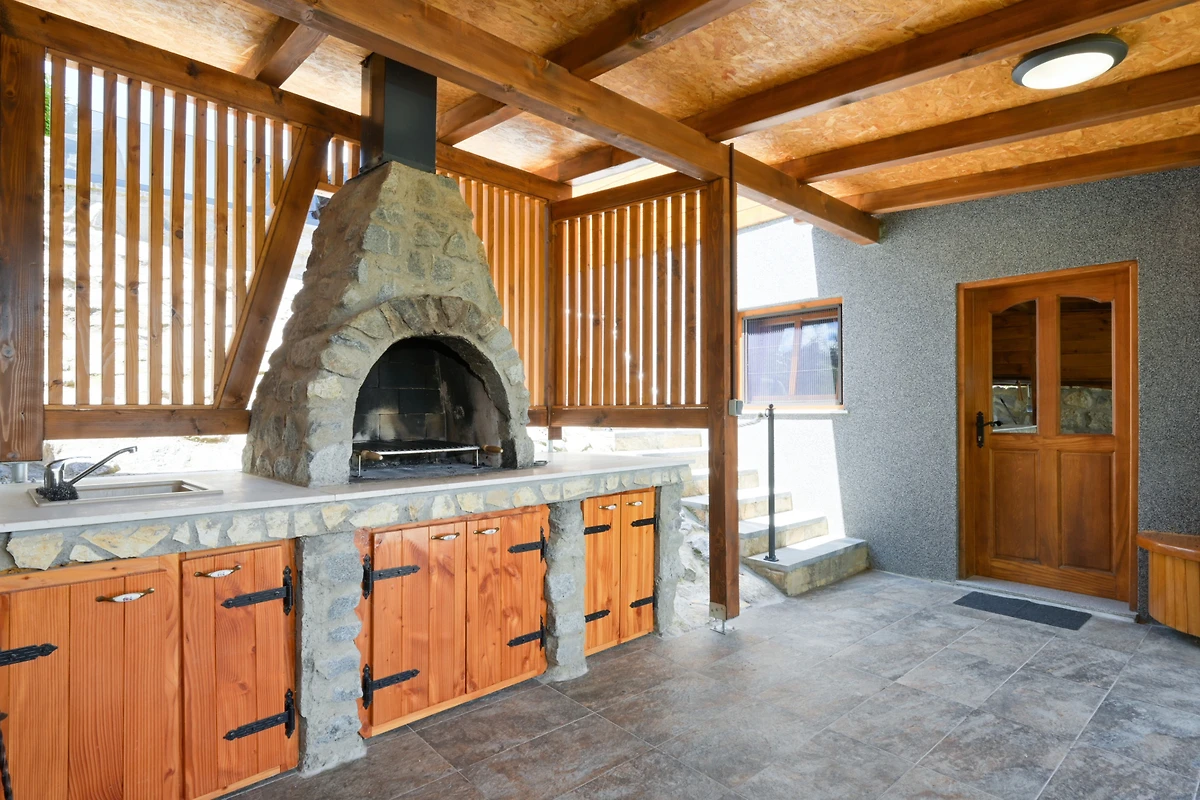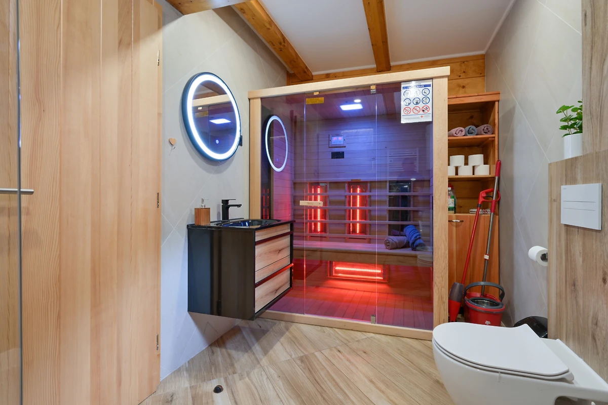 Zusätzliche Innenausstattungsmerkmale umfassen Klimaanlage, WLAN, einen Kamin für gemütliche Abende und ein Bügeleisen für Ihre Bequemlichkeit. Die Unterkunft ist haustierfreundlich und erlaubt bis zu 2 Tiere sowie einen Kinderbereich und Spa-Einrichtungen für zusätzlichen Genuss.