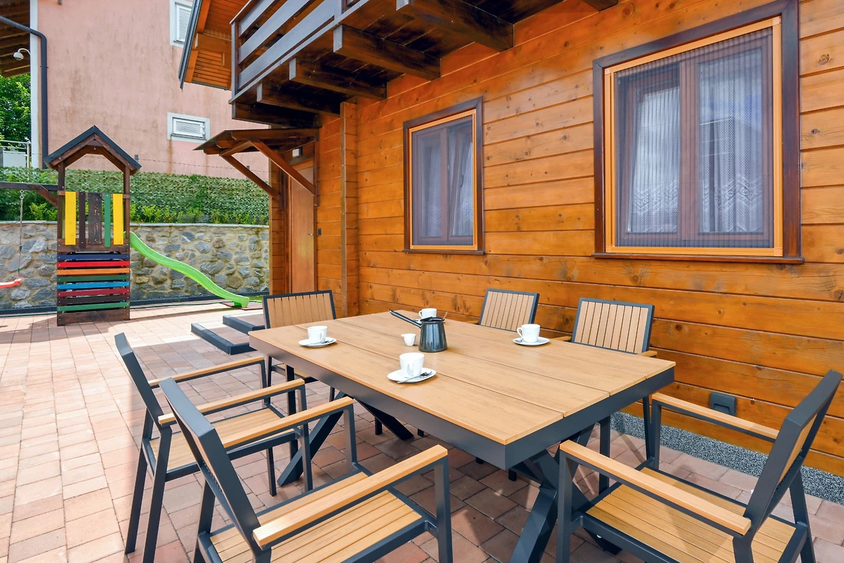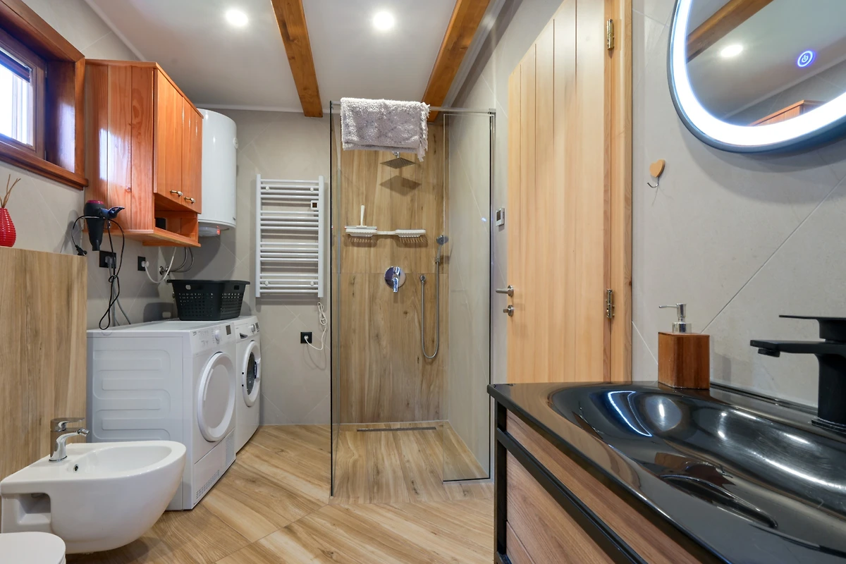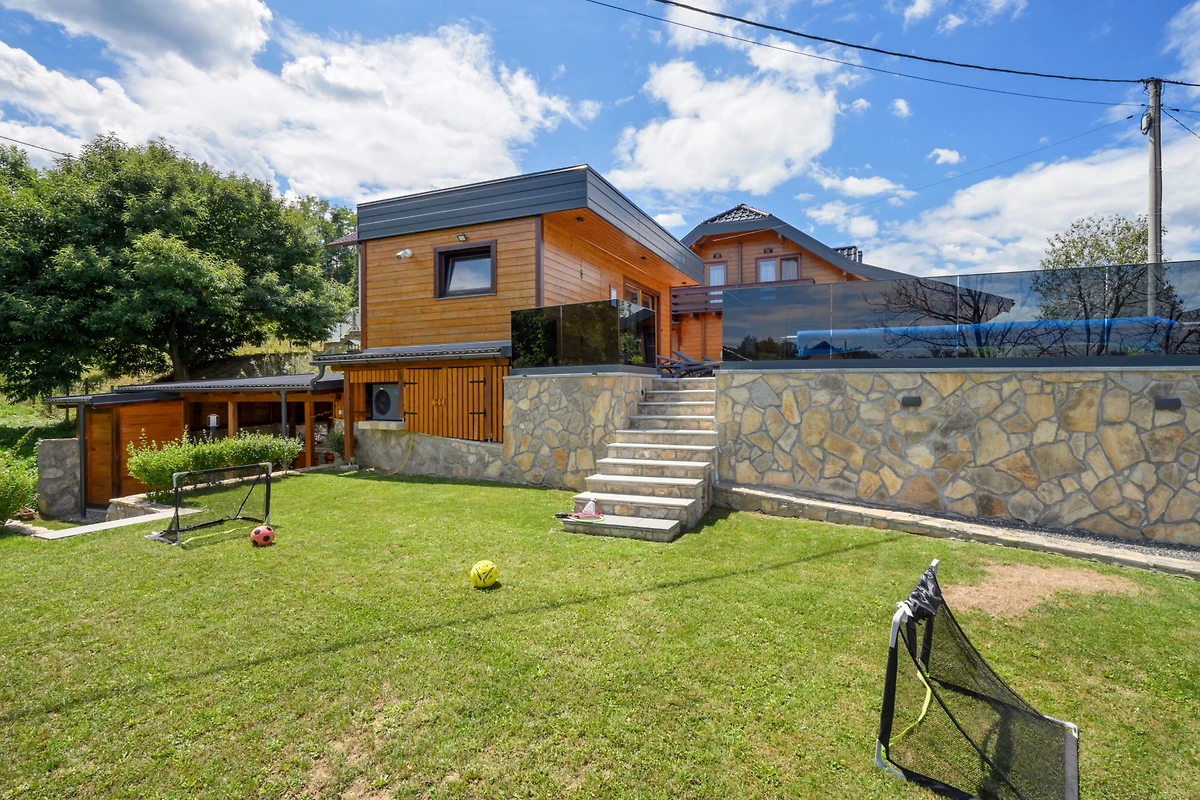 Die Immobilie verfügt über ein beeindruckendes Angebot an Annehmlichkeiten, die darauf ausgelegt sind, einen erholsamen und angenehmen Aufenthalt zu gewährleisten. Die Gäste werden den privaten beheizten Swimmingpool mit einer Grösse von 5x6 Metern zu schätzen wissen, der ideal ist, um an warmen Tagen abzukühlen. Die Villa verfügt über eine private Garage mit Parkplatz für 4 Fahrzeuge und bietet bequeme und sichere Parkmöglichkeiten.
