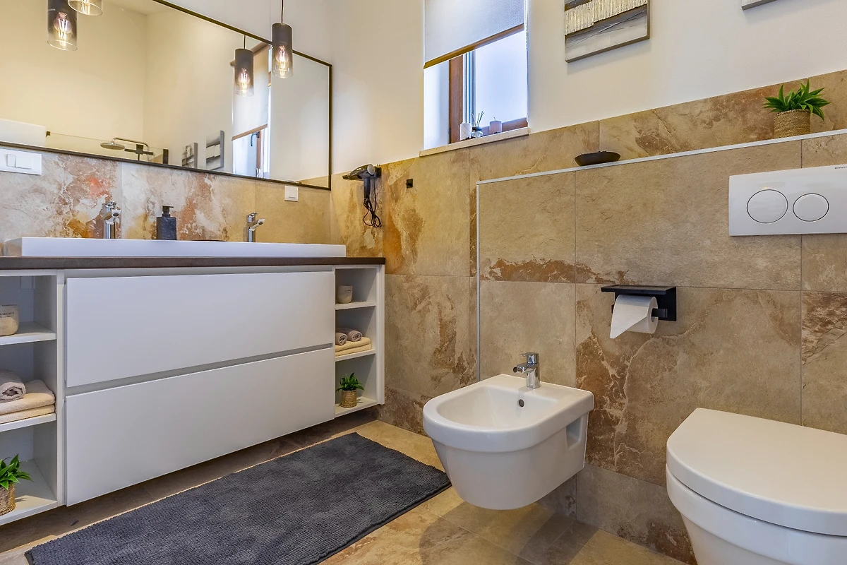 Die Villa verfügt über drei gut ausgestattete Schlafzimmer und drei Badezimmer, darunter zwei mit Duscheinrichtungen und ein Toilettenraum. Die Gäste werden die modernen Annehmlichkeiten zu schätzen wissen, wie Klimaanlage und Wärmepumpensystem, die das ganze Jahr über Komfort gewährleisten. Die vollständig ausgestattete amerikanische Küche ist mit hochwertigen Geräten ausgestattet, darunter ein Induktionskochfeld, Kühlschrank, Gefrierschrank, Geschirrspüler, Backofen, Mikrowelle, Kaffeemaschine und ein umfangreiches Set an Küchenutensilien.
