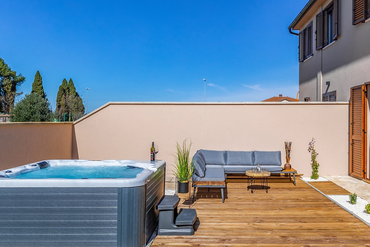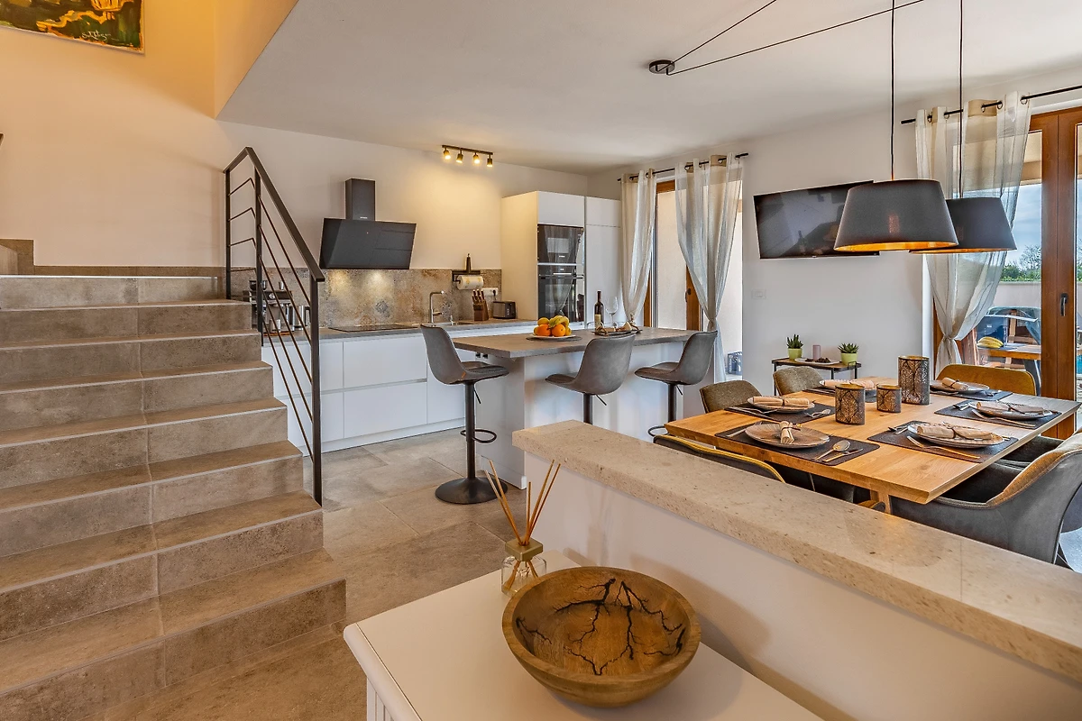 Villa Amica bietet einen entzückenden familienfreundlichen und paarfreundlichen Rückzugsort in der charmanten Stadt Vodnjan. Diese geräumige 135 Quadratmeter grosse Immobilie bietet komfortable Unterkunft für bis zu 7 Gäste, was sie ideal für grössere Familien oder Freundesgruppen macht.