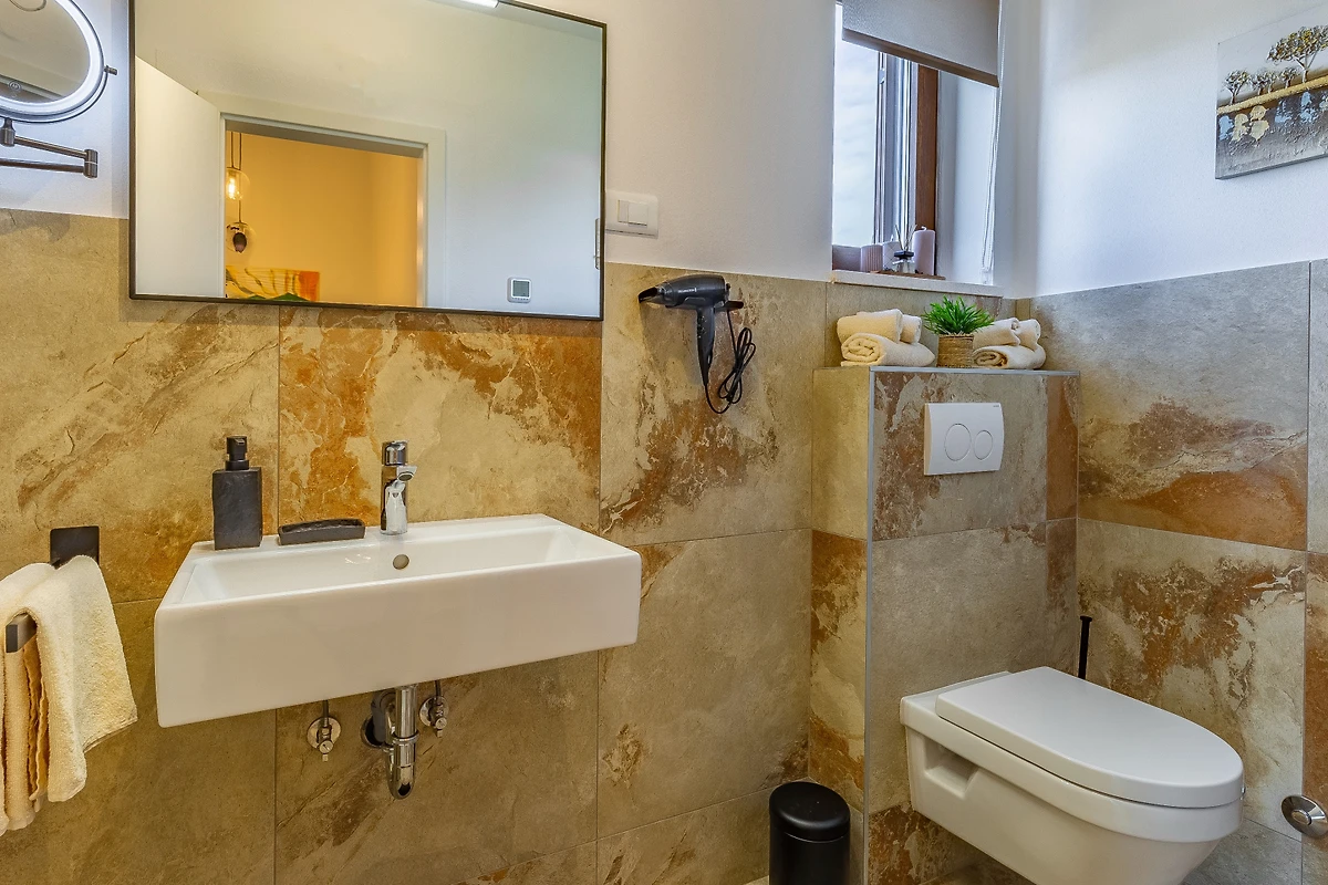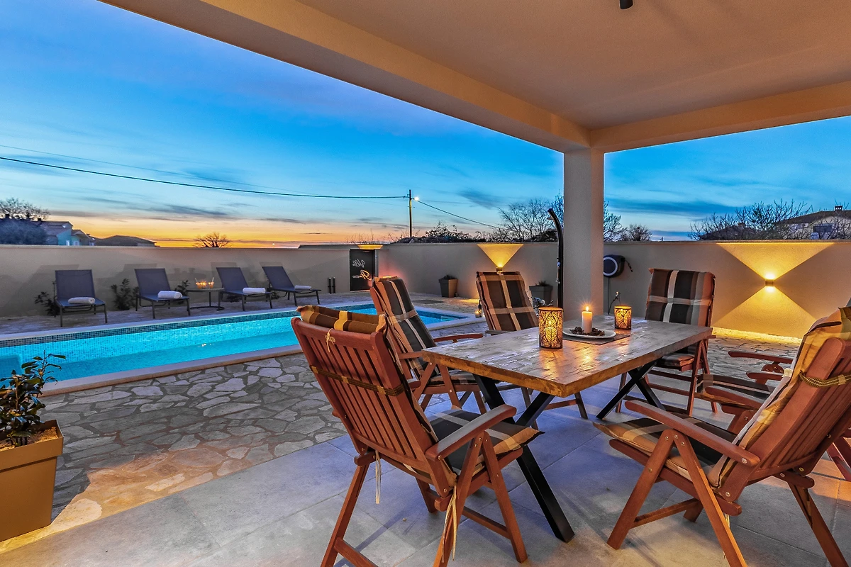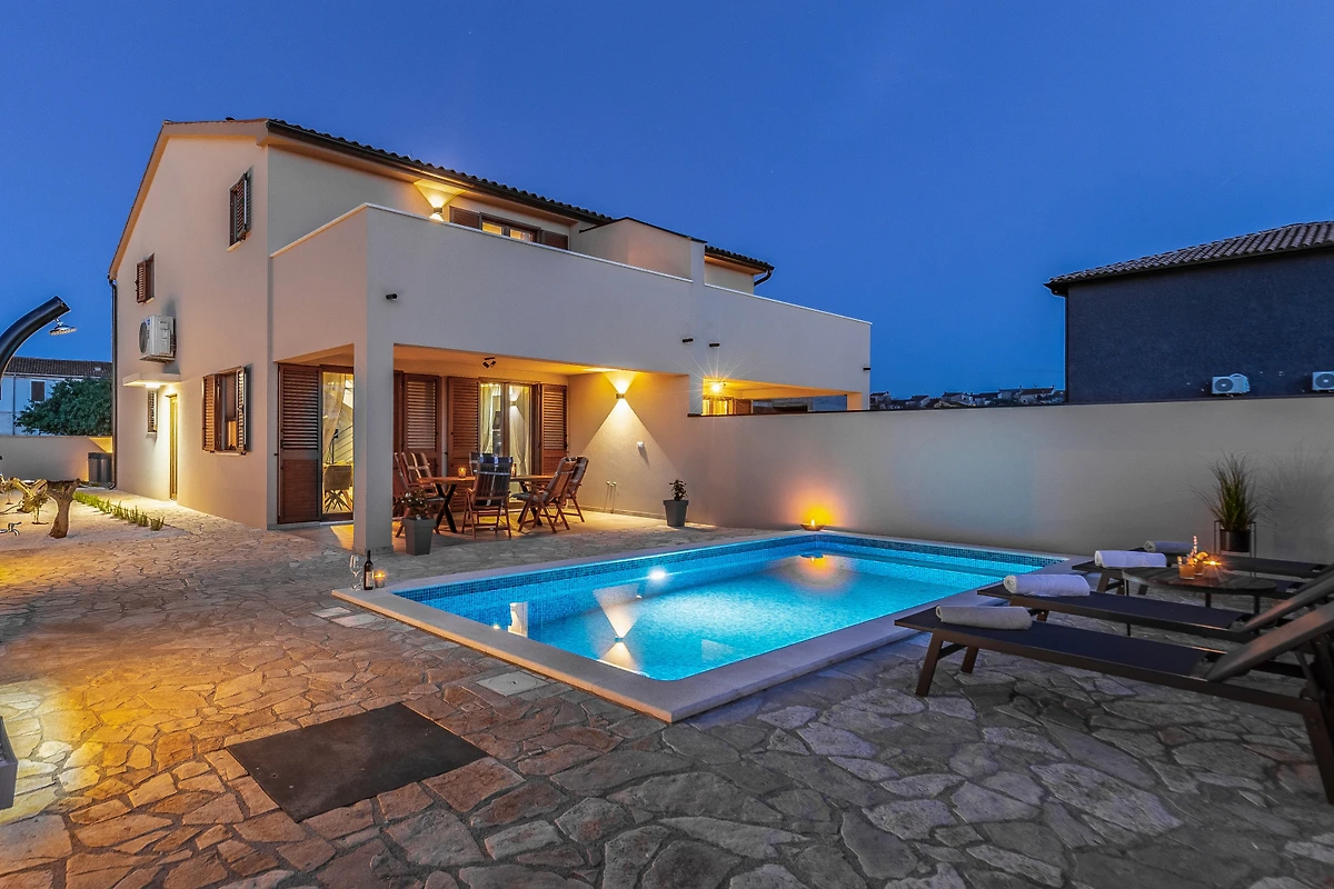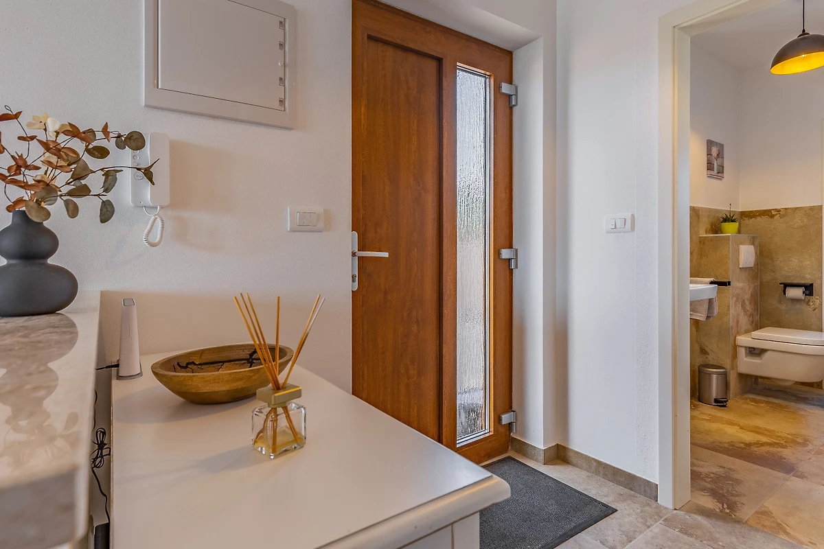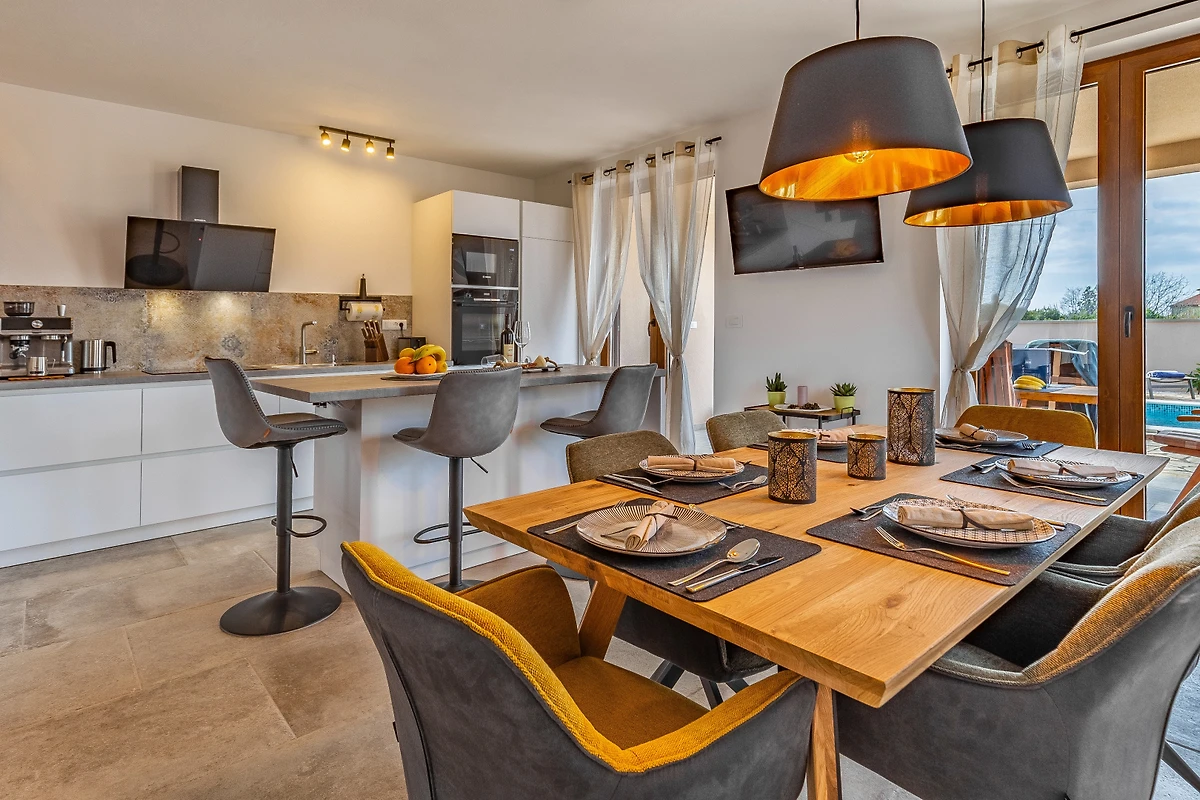 Zusätzliche Annehmlichkeiten umfassen ein Bügeleisen, Kamin und verschiedene Haushaltsaccessoires. Die Villa liegt günstig nur 1 km von einem lokalen Supermarkt und 15 km von Pula entfernt, wobei sich der Flughafen und wunderschöne Felsstrände ebenfalls in der Nähe befinden. Ein ideales Zuhause auf Zeit für Familien und Paare, die einen komfortablen und gut ausgestatteten kroatischen Rückzugsort suchen.