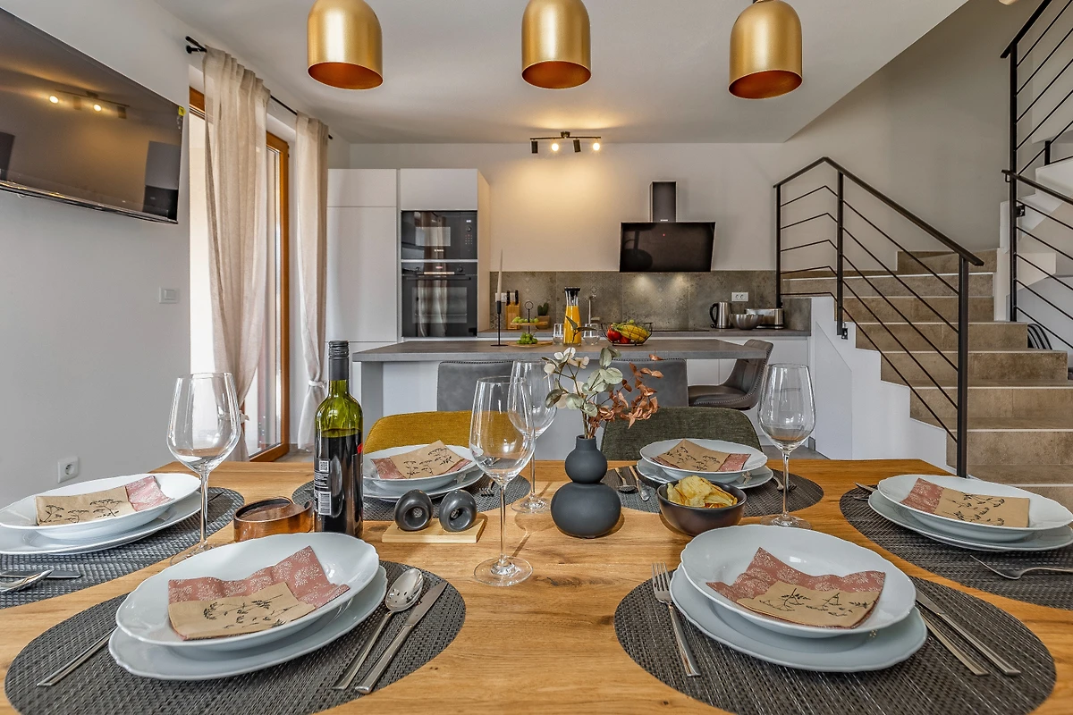 Die Villa verfügt über ein beeindruckendes Angebot an Annehmlichkeiten, die auf Komfort und Bequemlichkeit ausgelegt sind. Die moderne amerikanische Küche ist vollständig ausgestattet mit Induktionsherd, Kühlschrank, Gefrierschrank, Backofen, Mikrowelle, Geschirrspüler, Kaffeemaschine und einem kompletten Satz an Küchenutensilien. Die Gäste werden die Bequemlichkeit einer Waschmaschine und eines Trockners zu schätzen wissen.