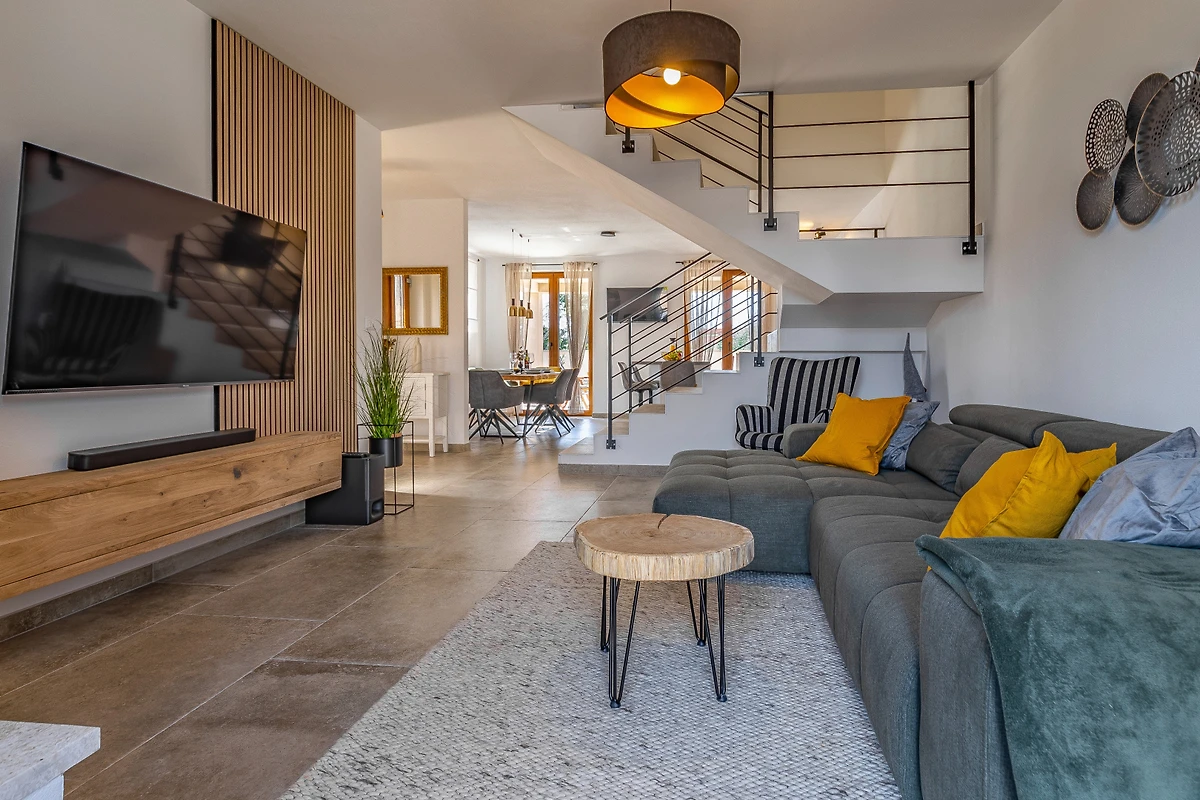 Naturliebhaber werden das 375 m² grosse Grundstück lieben, das einen Garten, einen Grillbereich, ein eingezäuntes Grundstück und eine Terrasse mit schönem Blick auf den Pool umfasst. Die Villa bietet 2 private Aussenparkplätze, was es Gästen mit Fahrzeugen besonders bequem macht.