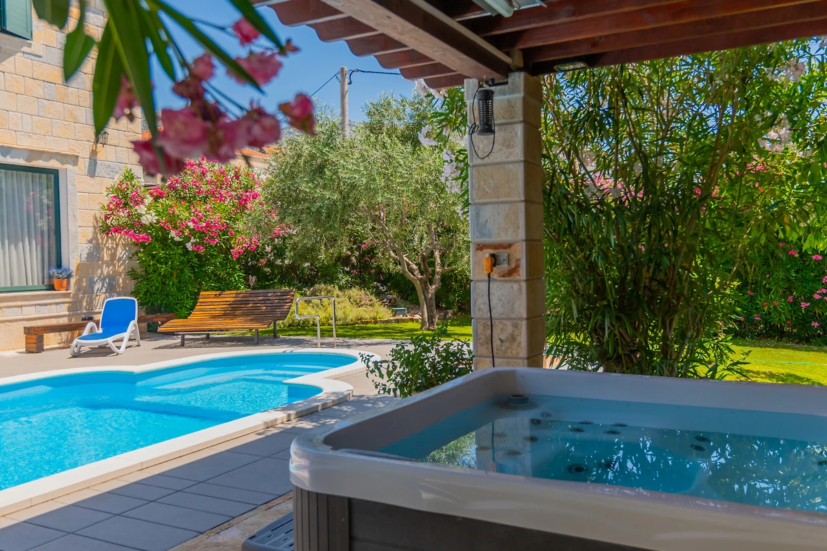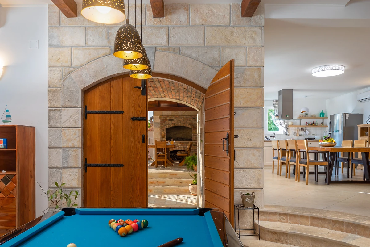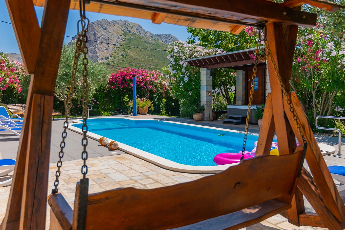Villa Dominus bietet einen luxuriösen Rückzugsort in der ruhigen Umgebung von Split, perfekt gestaltet für Familien und Paare, die ein unvergessliches Urlaubserlebnis suchen. Diese geräumige Villa bietet Platz für bis zu 9 Gäste und verfügt über 4 gut ausgestattete Schlafzimmer mit einer Mischung aus Doppelbetten und Einzelbetten.