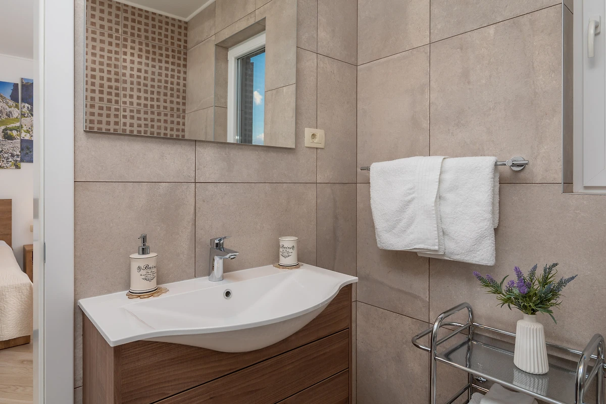 Gelegen nur 2 km von einem sandigen Strand und 8,5 km von der Stadt Split entfernt, bietet die Villa eine ruhige ländliche Umgebung bei gleichzeitig bequemem Zugang zu lokalen Sehenswürdigkeiten. Das nahe gelegene Žrnovnica verfügt über einen Supermarkt innerhalb von 800 Metern, und der Flughafen Split befindet sich etwa 30 km entfernt.
