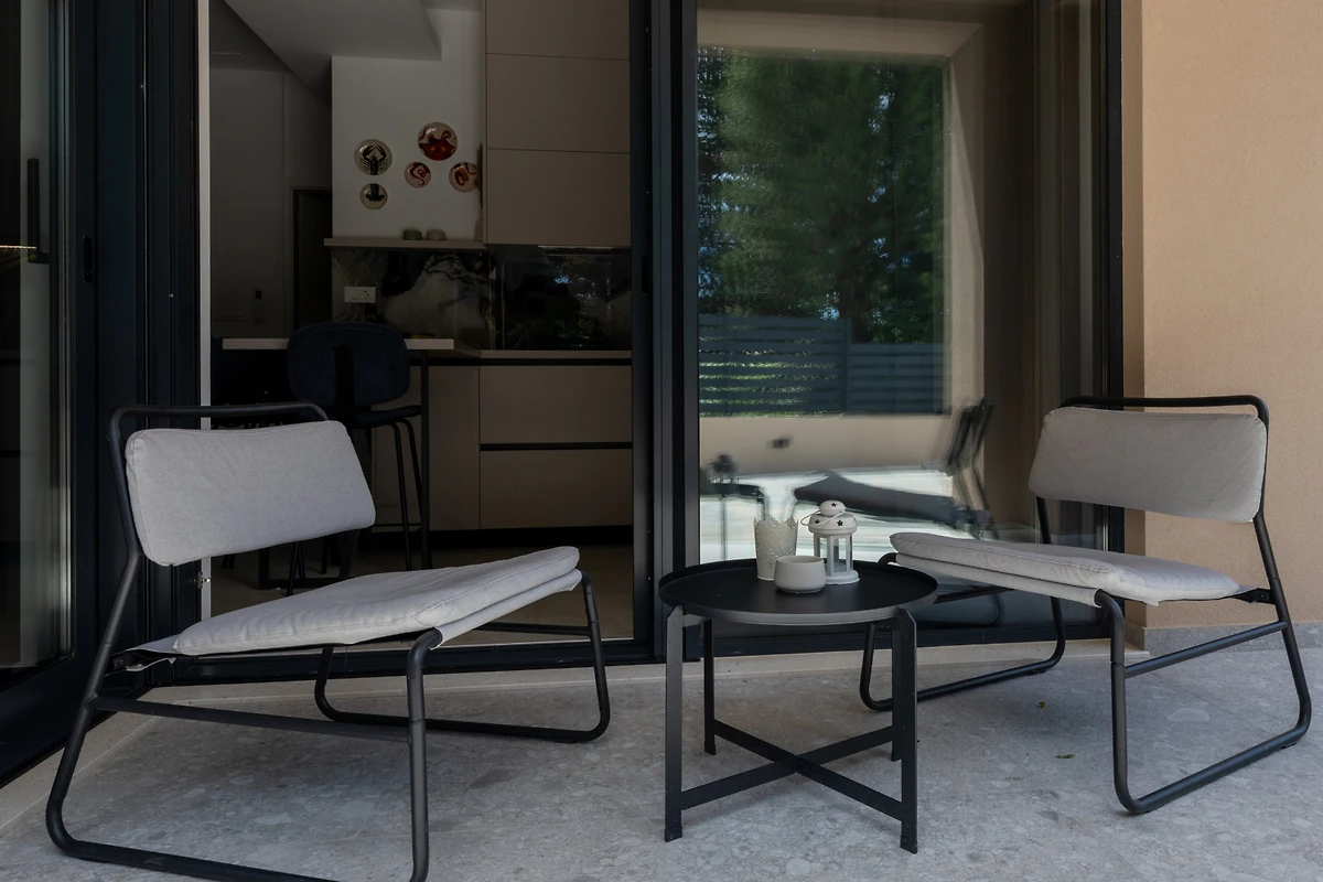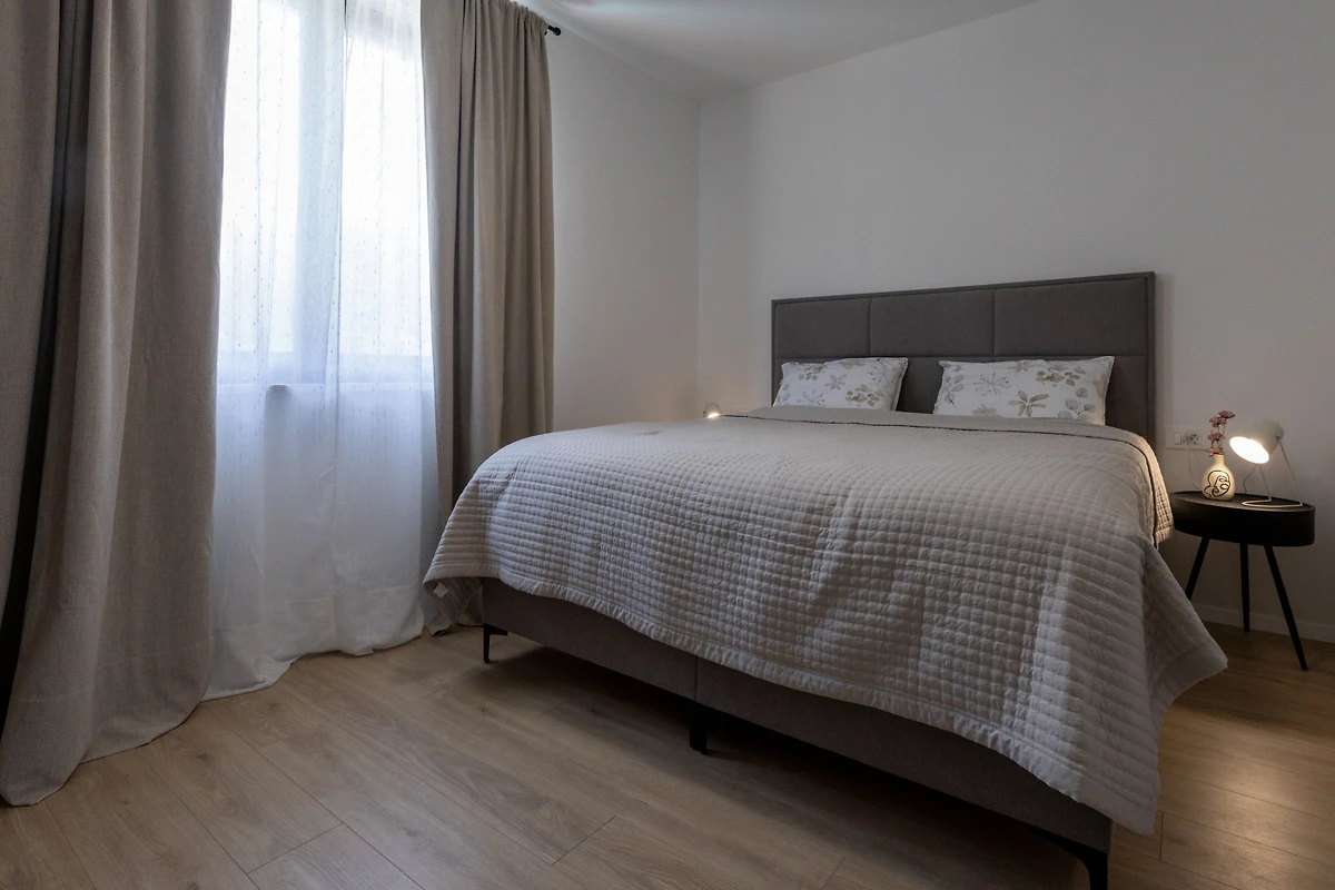 Die Villa verfügt über zwei Schlafzimmer, die jeweils mit luxuriösen Kingsize-Betten ausgestattet sind und einen erholsamen Schlaf gewährleisten. Drei gut ausgestattete Badezimmer mit Duscheinrichtungen bieten allen Gästen ausreichend Komfort. Die amerikanische Küche ist ein Traum für Kochbegeisterte, komplett mit modernen Geräten, darunter eine Glaskeramik-Kochplatte, Kühlschrank, Gefrierschrank, Backofen, Mikrowelle, Geschirrspüler, Kaffeemaschine sowie ein vollständiges Set an Küchenutensilien und Geschirr.