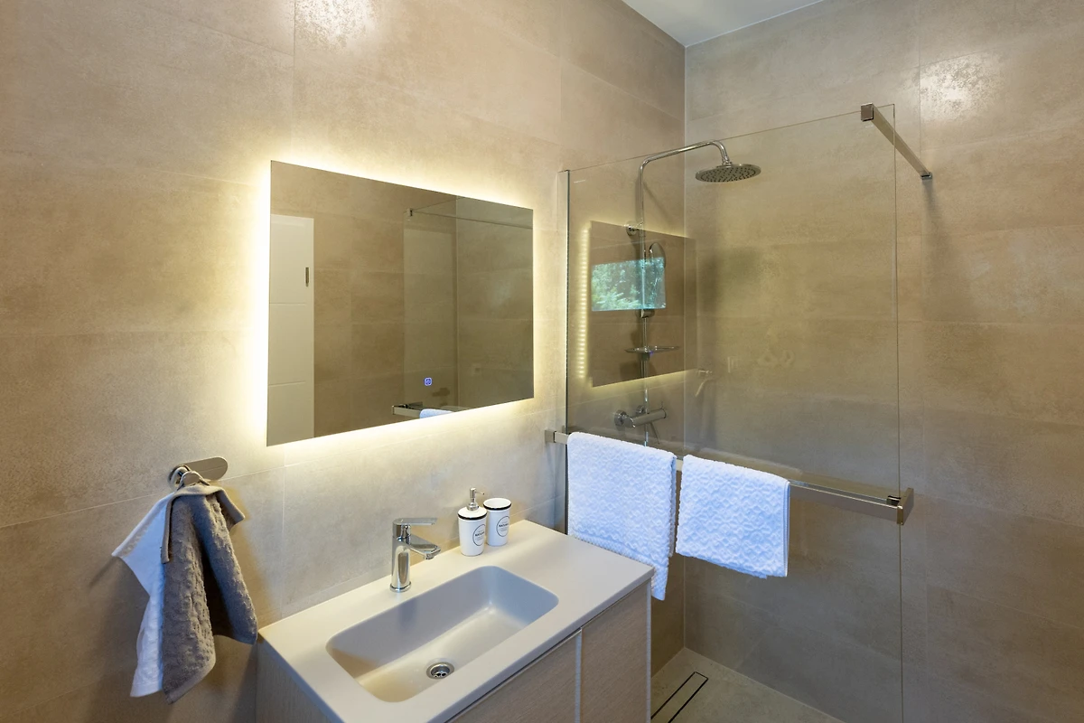 Geniessen Sie den Komfort der Klimaanlage und der effizienten Wärmepumpenheizung und sorgen Sie für eine angenehme Umgebung das ganze Jahr über. Bleiben Sie mit kostenlosem WLAN und Unterhaltungsoptionen, einschliesslich Satellitenfernsehen, verbunden. Die Villa bietet auch praktische Annehmlichkeiten wie ein Bügeleisen zu Ihrer Bequemlichkeit.
