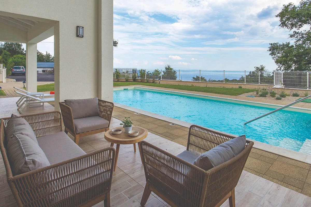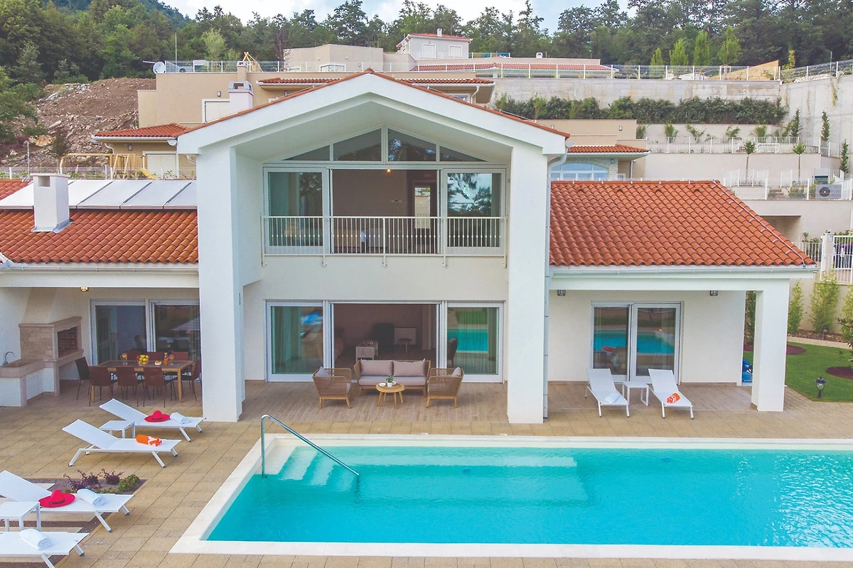 Entdecken Sie Villa Natura 5, einen atemberaubenden familienfreundlichen Rückzugsort, der in der ruhigen ländlichen Landschaft in der Nähe von Opatija eingebettet ist. Diese geräumige Villa bietet bequem Platz für bis zu 8 Gäste und vereint Luxus und Komfort für Familien und Paare, die ein unvergessliches Urlaubserlebnis suchen.