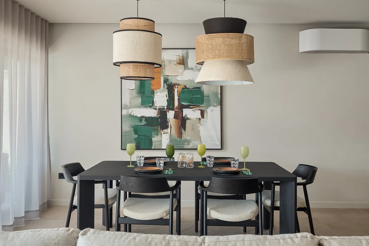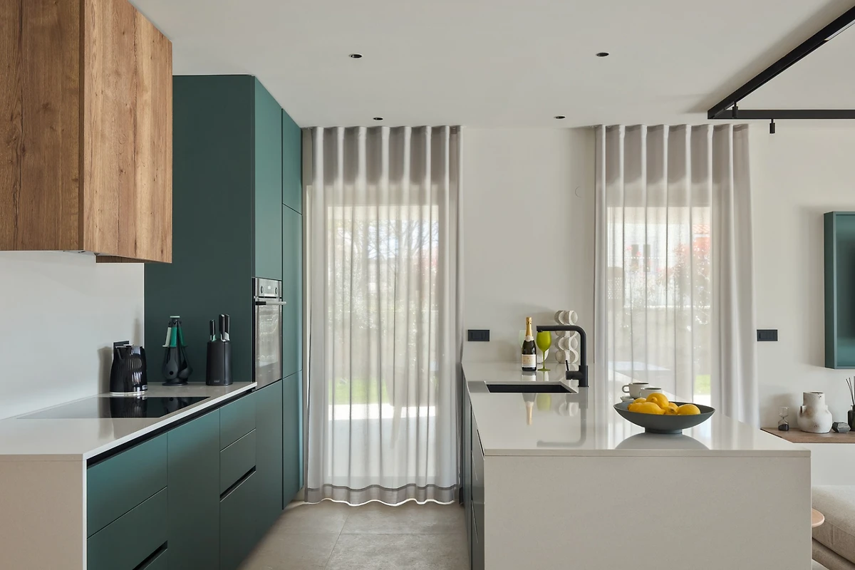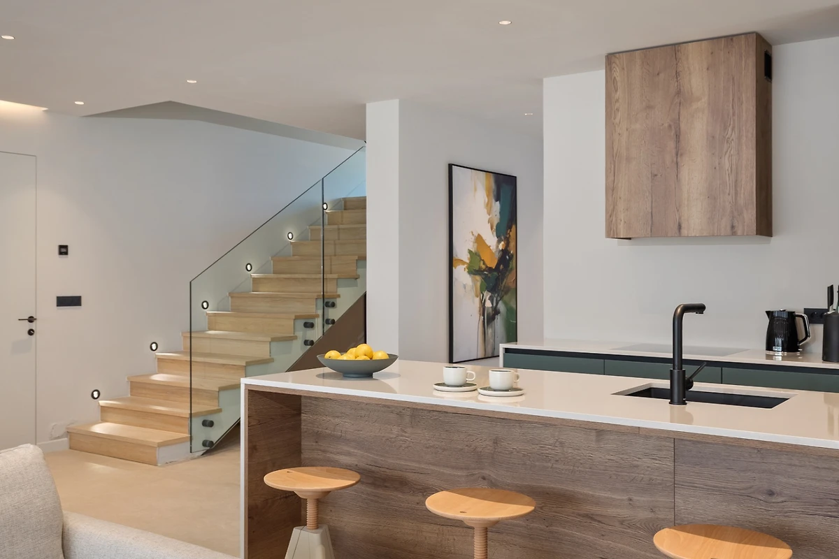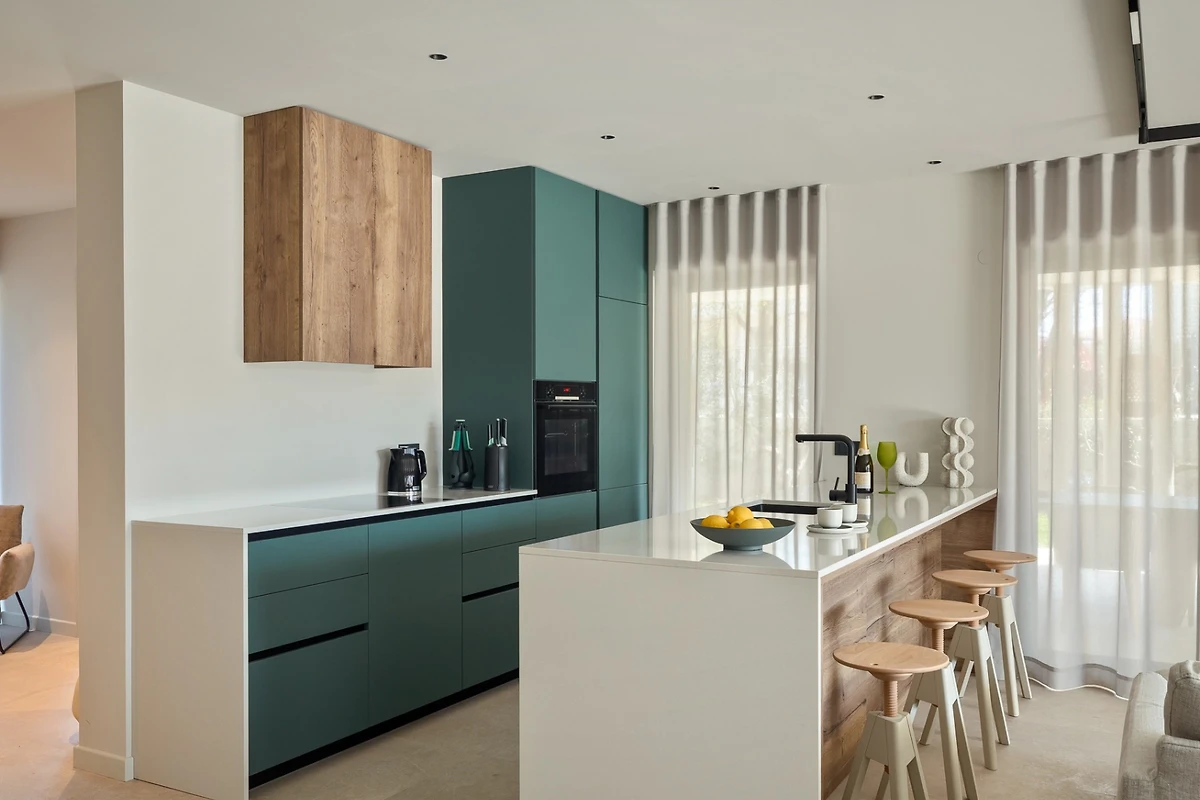 Die Villa verfügt über beeindruckende 4 Badezimmer, die allen Gästen ausreichende Bequemlichkeit bieten. Zwei Badezimmer verfügen über Duschen zum Hineintreten, eines beinhaltet eine entspannende Badewanne, und eine zusätzliche Toilette gewährleistet maximalen Komfort. Die moderne amerikanische Küche ist vollständig ausgestattet mit hochwertigen Geräten, einschliesslich Induktionskochfeld, Kühlschrank, Gefrierschrank, Backofen, Geschirrspüler, Kaffeemaschine und essentieller Küchenausstattung.