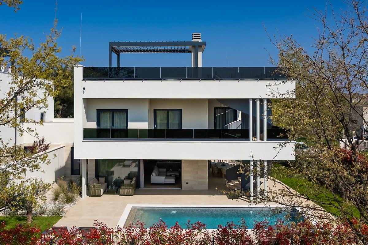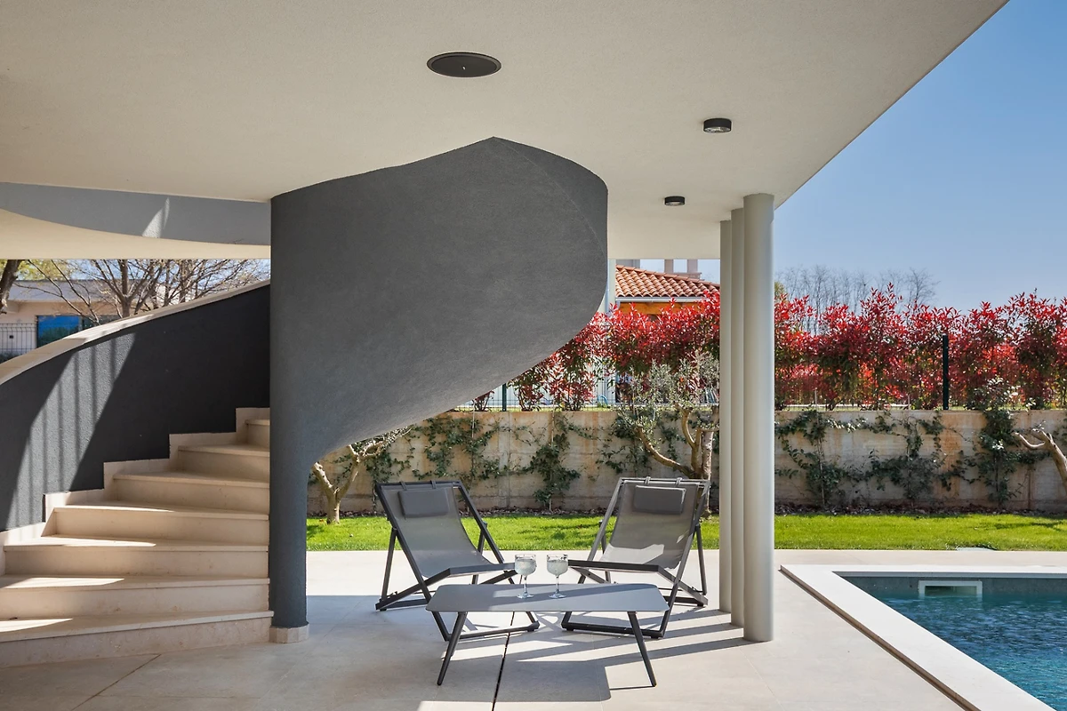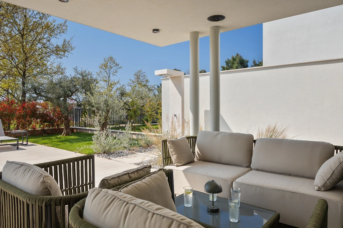Villa Tranquilla bietet einen ruhigen und modernen Rückzugsort, der ideal für Familien und Paare ist, die einen friedlichen Urlaub in der charmanten Region Istrien suchen. Diese wunderschön gestaltete Villa bietet bequem Platz für bis zu 6 Gäste in 3 geräumigen Schlafzimmern, die jeweils mit luxuriösen Kingsize-Betten ausgestattet sind und einen erholsamen Schlaf garantieren.