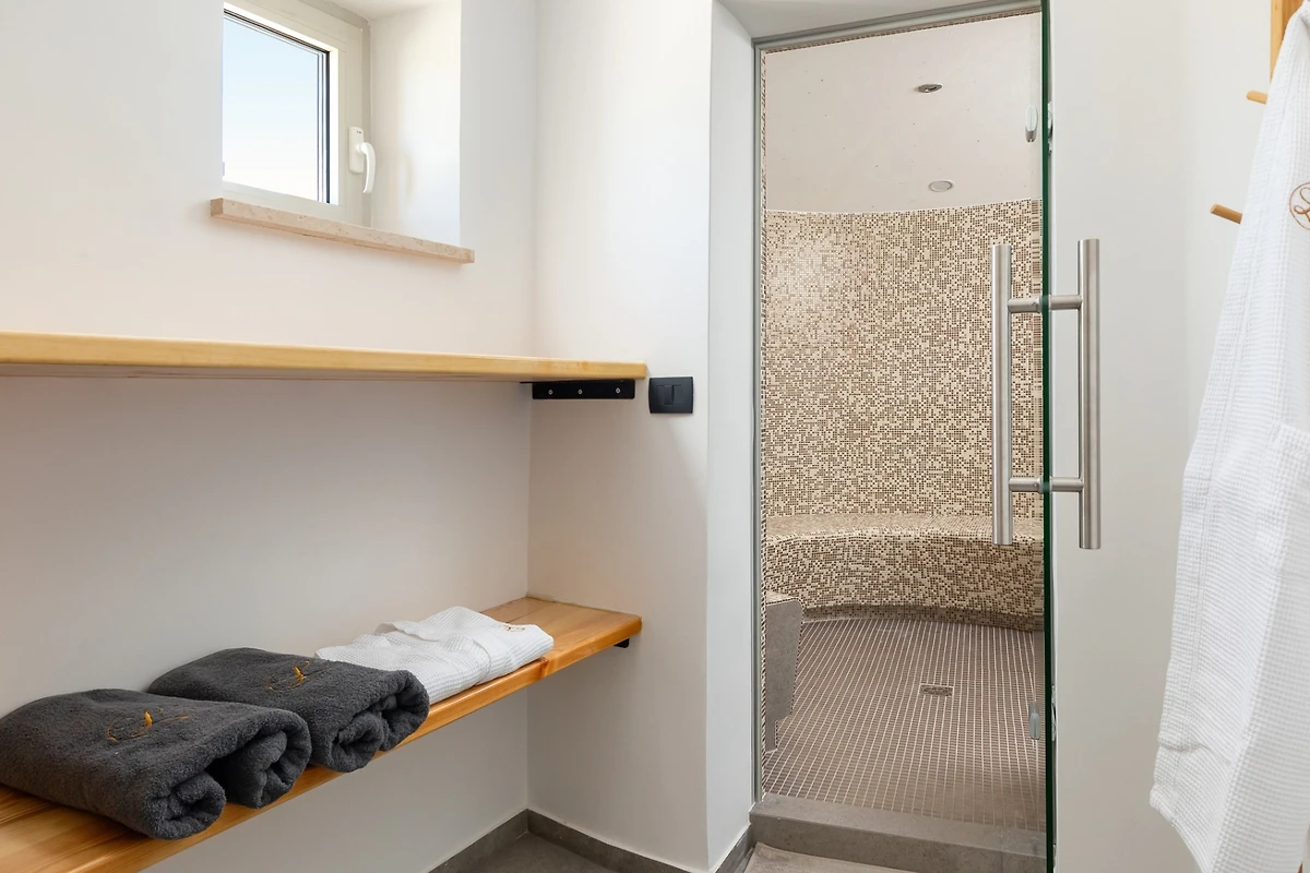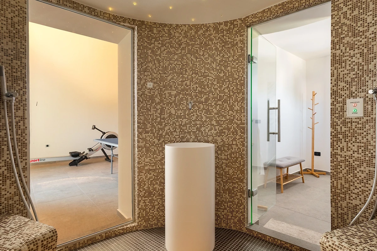 Zusätzliche Annehmlichkeiten umfassen Klimaanlage, WLAN, Satellitenfernsehen, ein Bügeleisen und einen Kinderbereich. Die Unterkunft bietet 5 private überdachte Parkplätze, was es Gästen mit Fahrzeugen bequem macht. Eine Sauna und ein Spa stehen für ultimative Entspannung zur Verfügung.