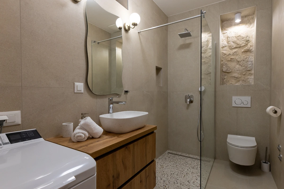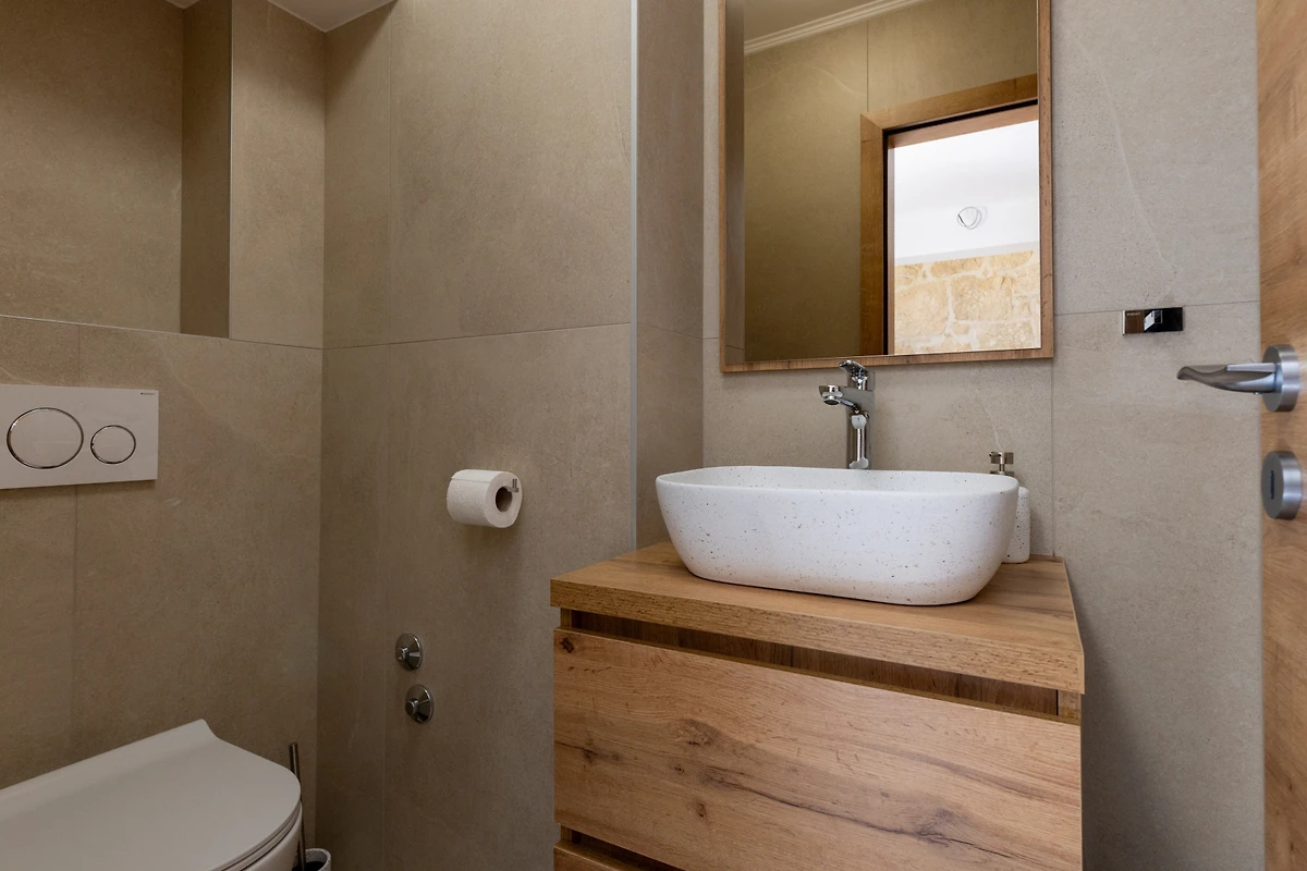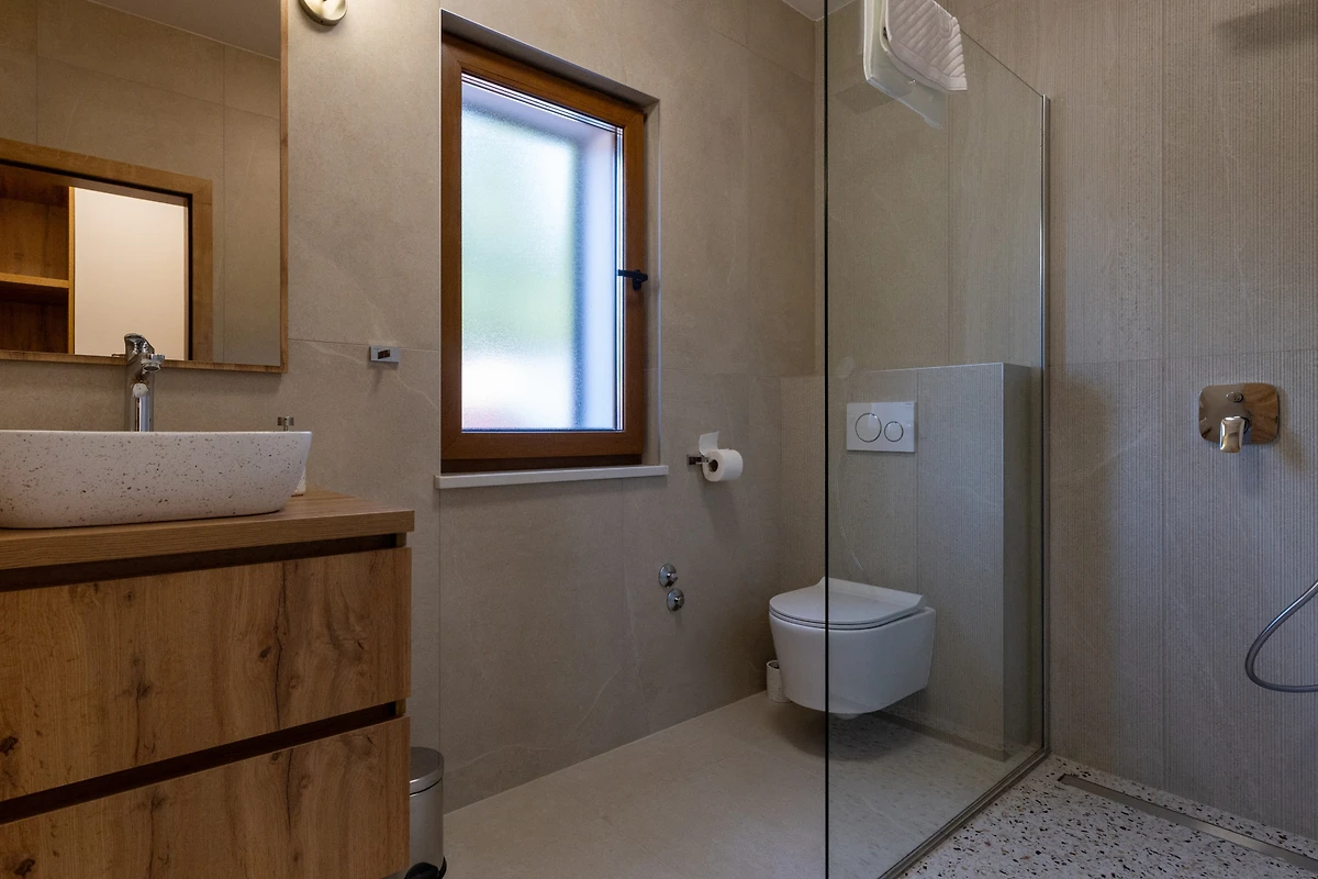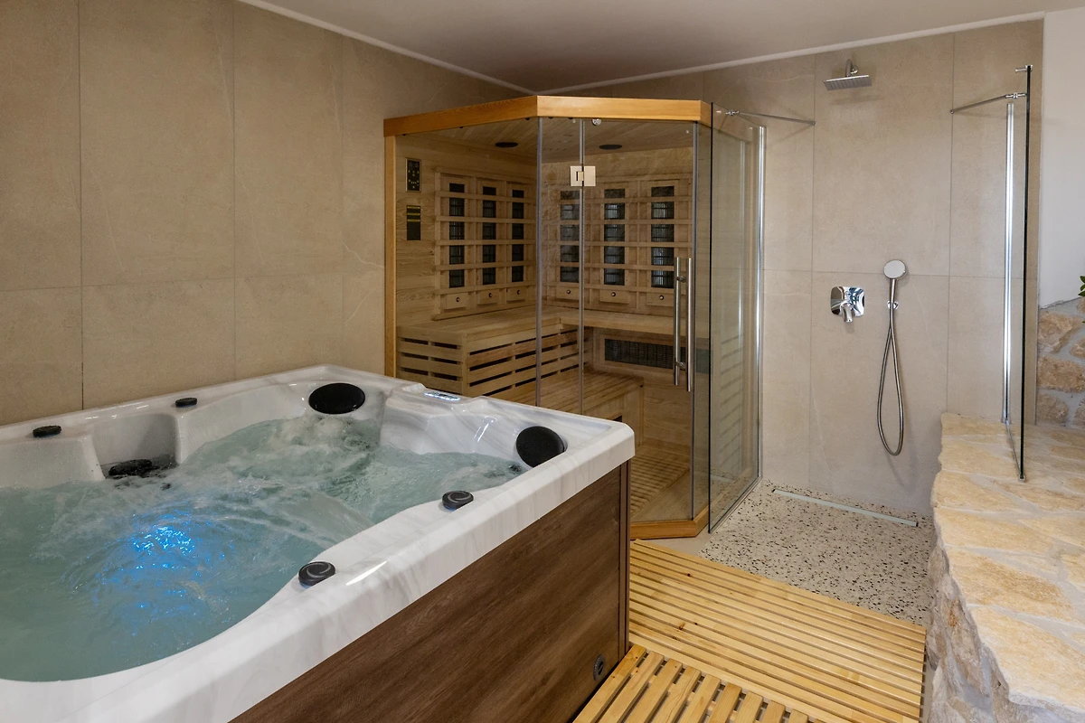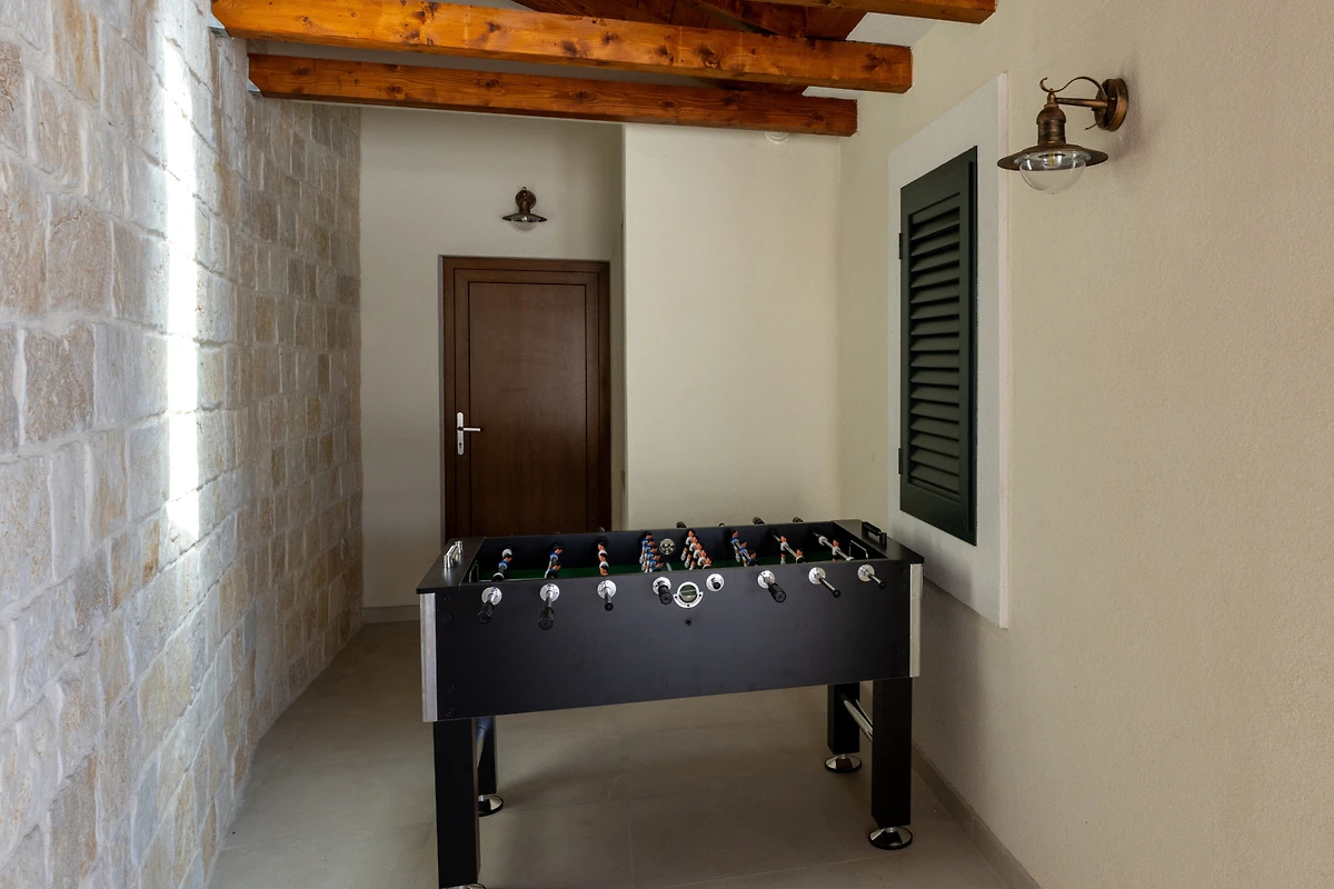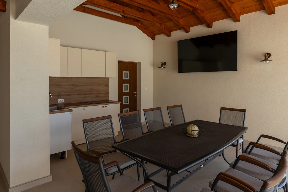 Komfort steht in der Villa Mikic an oberster Stelle, mit 6 gut ausgestatteten Badezimmern mit Duscheinrichtungen, die Bequemlichkeit für alle Gäste gewährleisten. Die Immobilie verfügt über Klimaanlage und ein Wärmepumpenheizsystem, die das ganze Jahr über angenehme Temperaturen sicherstellen. Für Unterhaltung sorgt ein mehrsprachiges Satelliten-TV, und kostenloses WLAN hält alle verbunden.