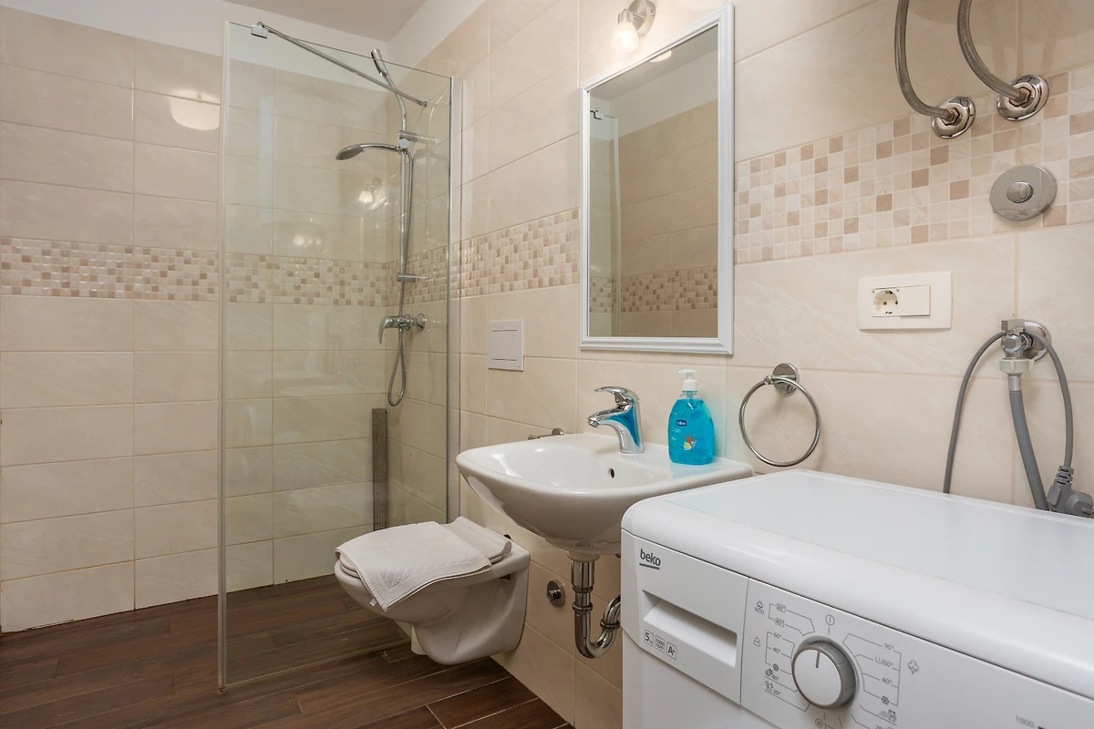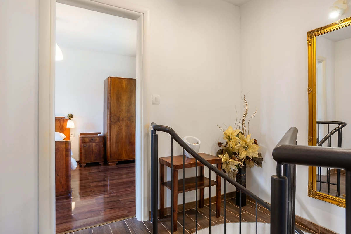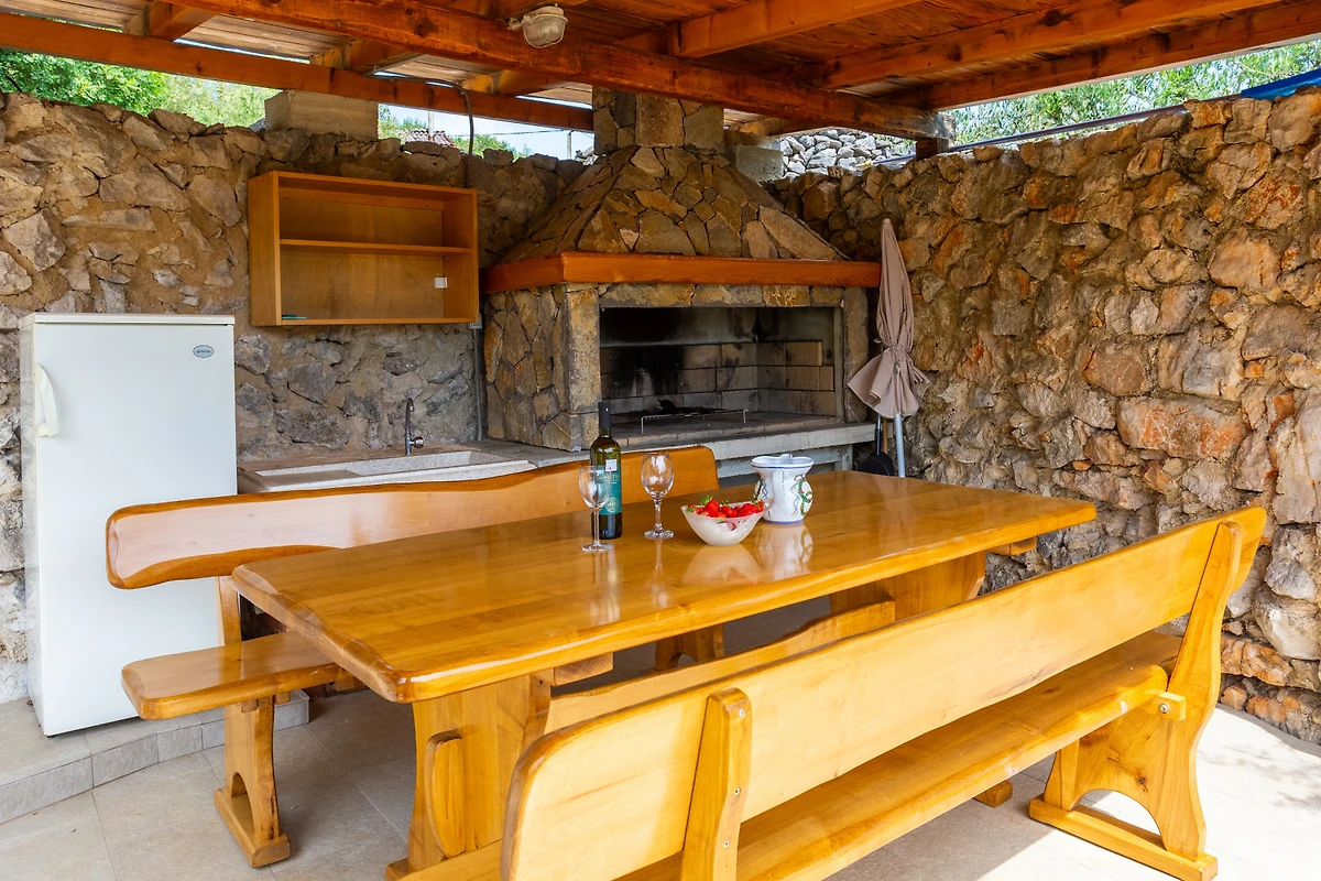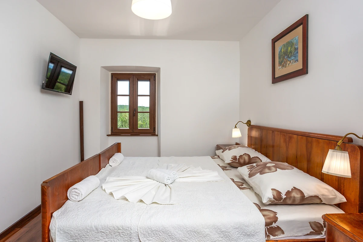 Entdecken Sie Casa Verde Oliva Residence, ein charmantes Ferienhaus, das in den ruhigen Wäldern von Dobrinj eingebettet ist und ideal für Familien und Paare ist, die einen friedlichen Urlaub suchen. Diese geräumige 75 Quadratmeter grosse Immobilie bietet komfortable Unterkunft für bis zu 6 Gäste und verfügt über 2 Schlafzimmer mit einer Mischung aus Kingsize- und Zusatzbetten.