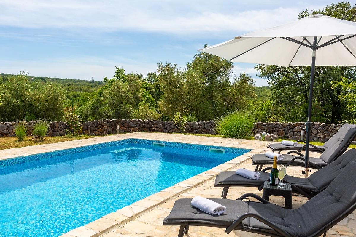 Tierbesitzer werden erfreut sein zu erfahren, dass bis zu 2 Tiere willkommen sind. Der Standort bietet eine ruhige Waldkulisse mit nahegelegenen Attraktionen wie einem Felsstrand in Šilo (5 km), der Stadt Malinska und einem Supermarkt (12 km) sowie dem Flughafen Omišalj (20 km). Geniessen Sie atemberaubende Ausblicke auf Pool und Garten von diesem idyllischen Rückzugsort.