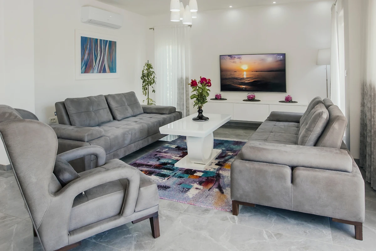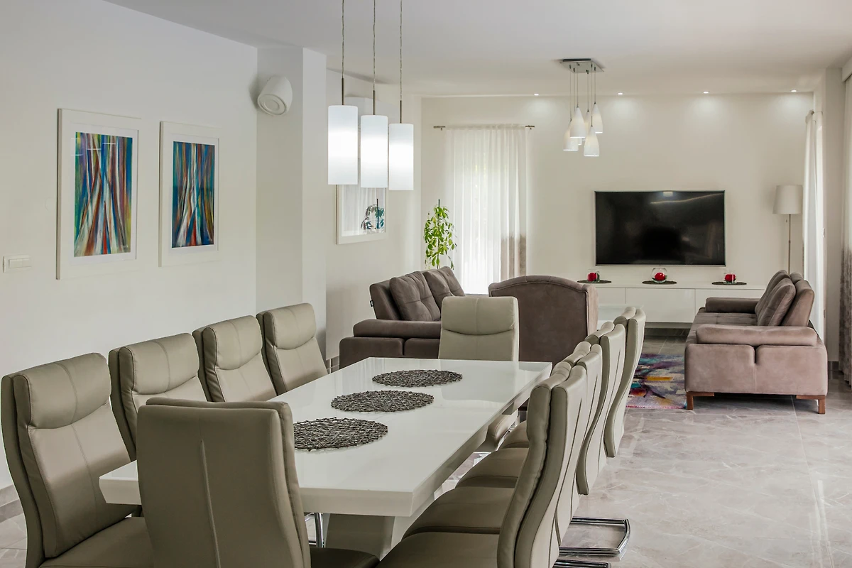 Villa Antonija-Makarska bietet einen luxuriösen Rückzugsort in der ruhigen Urbanisation von Glavina Gornja, ideal für Familien und Paare, die einen unvergesslichen kroatischen Urlaub suchen. Diese geräumige Villa bietet bequem Platz für bis zu 12 Gäste in 5 wunderschön eingerichteten Schlafzimmern mit 4 Queensize-Betten und 2 Einzelbetten.
