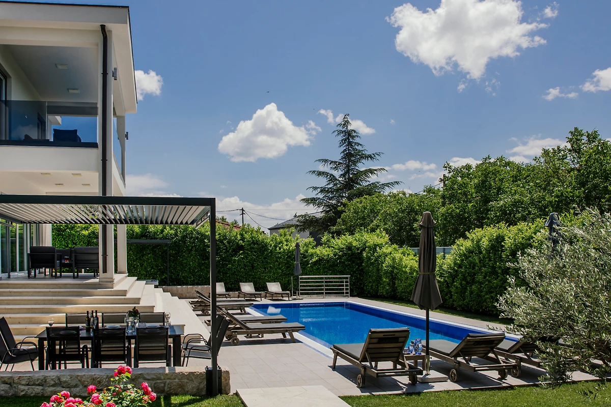 Für ultimative Entspannung verfügt die Villa über einen Spa-Bereich und einen Whirlpool, die es den Gästen ermöglichen, stilvoll zu entspannen. Das klimatisierte Innere sorgt für Komfort an warmen Sommertagen, während die ruhige Lage der Immobilie eine friedliche Auszeit bietet.