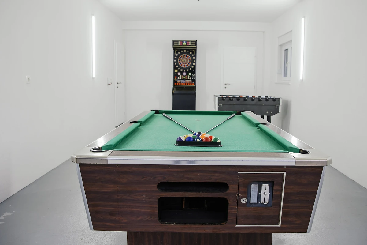 Mit 5 Badezimmern - 4 mit Duschen und 1 mit einer Badewanne - gibt es reichlich Platz für alle, um sich zu erfrischen und zu entspannen. Die Immobilie verfügt über WLAN, Satelliten-TV und ein Bügeleisen für zusätzlichen Komfort. Ein privater Swimmingpool mit den Massen 4x11 Meter bietet den perfekten Ort für gemütliche Schwimmen und Entspannung.