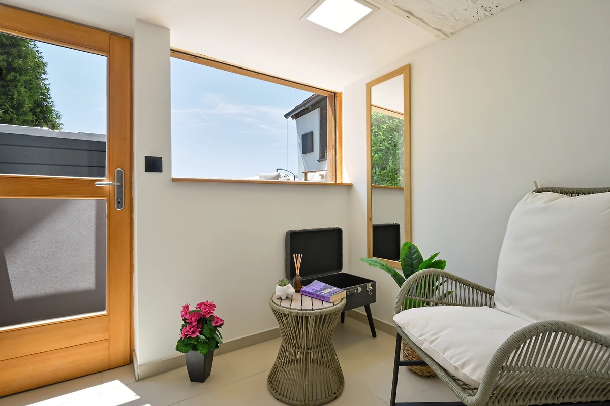 Die Immobilie bietet Klimaanlage und effiziente Wärmepumpenheizung und gewährleistet so Komfort in allen Jahreszeiten. Hochgeschwindigkeits-WLAN, Satelliten-TV und ein Bügeleisen stehen den Gästen zur Verfügung. Zwei private Aussenparkplätze werden direkt auf dem Grundstück bereitgestellt.