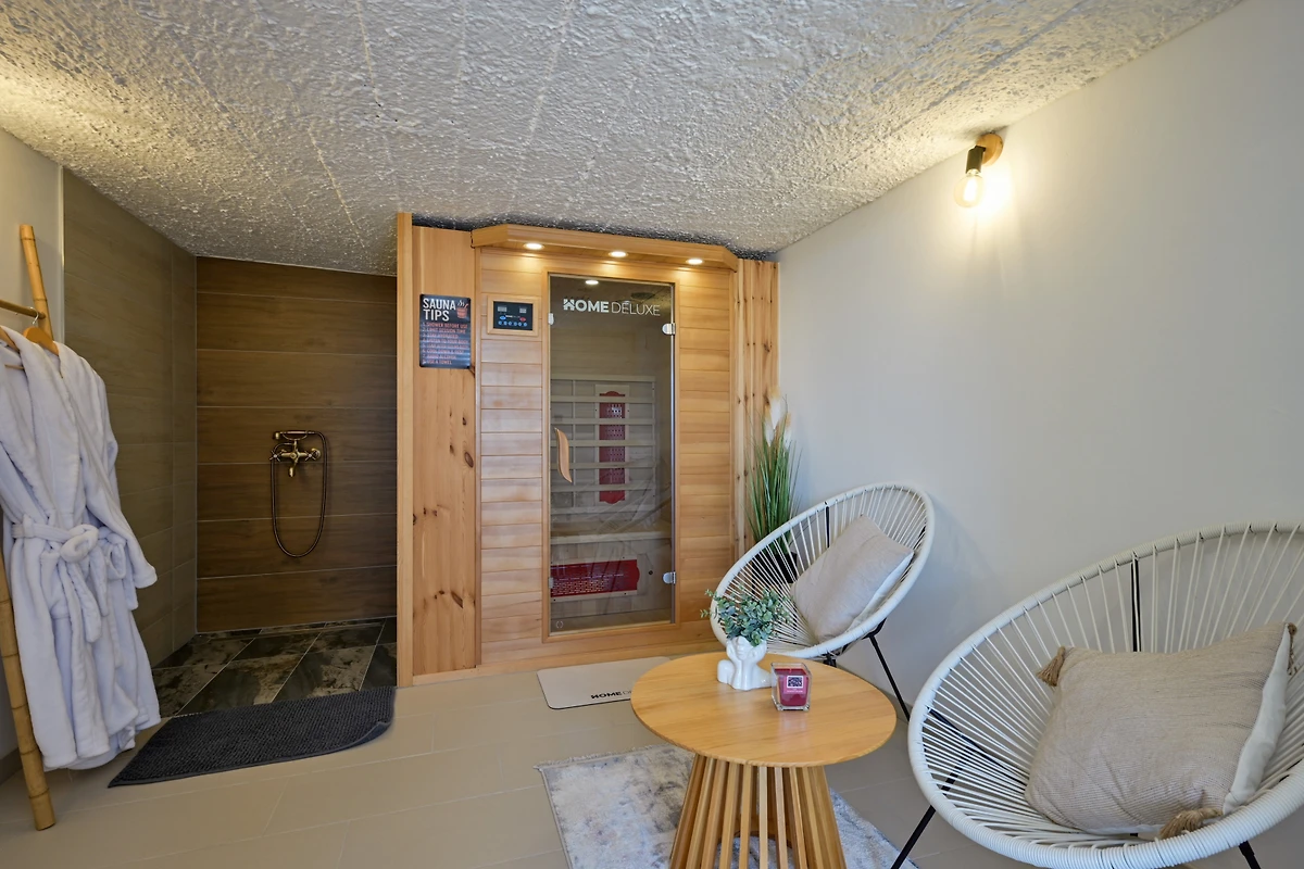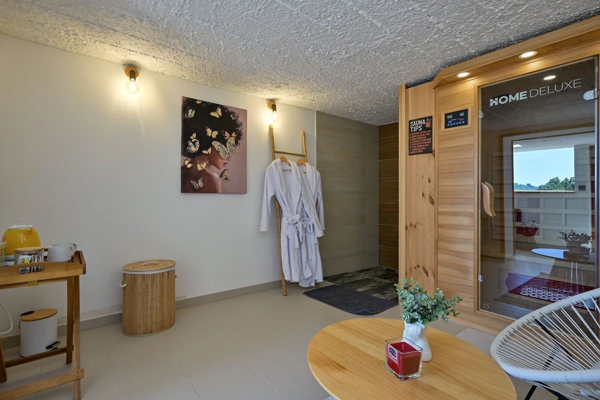 Entspannen Sie sich im privaten Spa-Bereich der Villa, der eine Sauna und einen Whirlpool umfasst. Der 6x4,2 m grosse private Swimmingpool bietet einen perfekten Ort zum Abkühlen und zum Geniessen der atemberaubenden Garten- und Poolausblicke. Naturliebhaber werden die Gartenanlage, die Grillmöglichkeiten und die Gartenmöbel zu schätzen wissen.