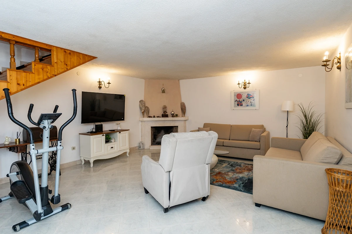 Das Herzstück des Hauses ist die vollständig ausgestattete amerikanische Küche mit Induktionskochen, einer umfassenden Auswahl an Geräten, darunter Kühlschrank, Gefrierschrank, Geschirrspüler, Backofen, Mikrowelle, Kaffeemaschine und allem notwendigen Küchengeschirr. Geniessen Sie das Zubereiten köstlicher Mahlzeiten mit Leichtigkeit und Stil.
