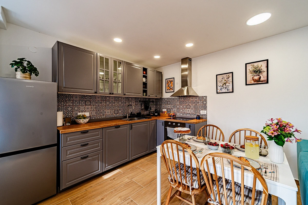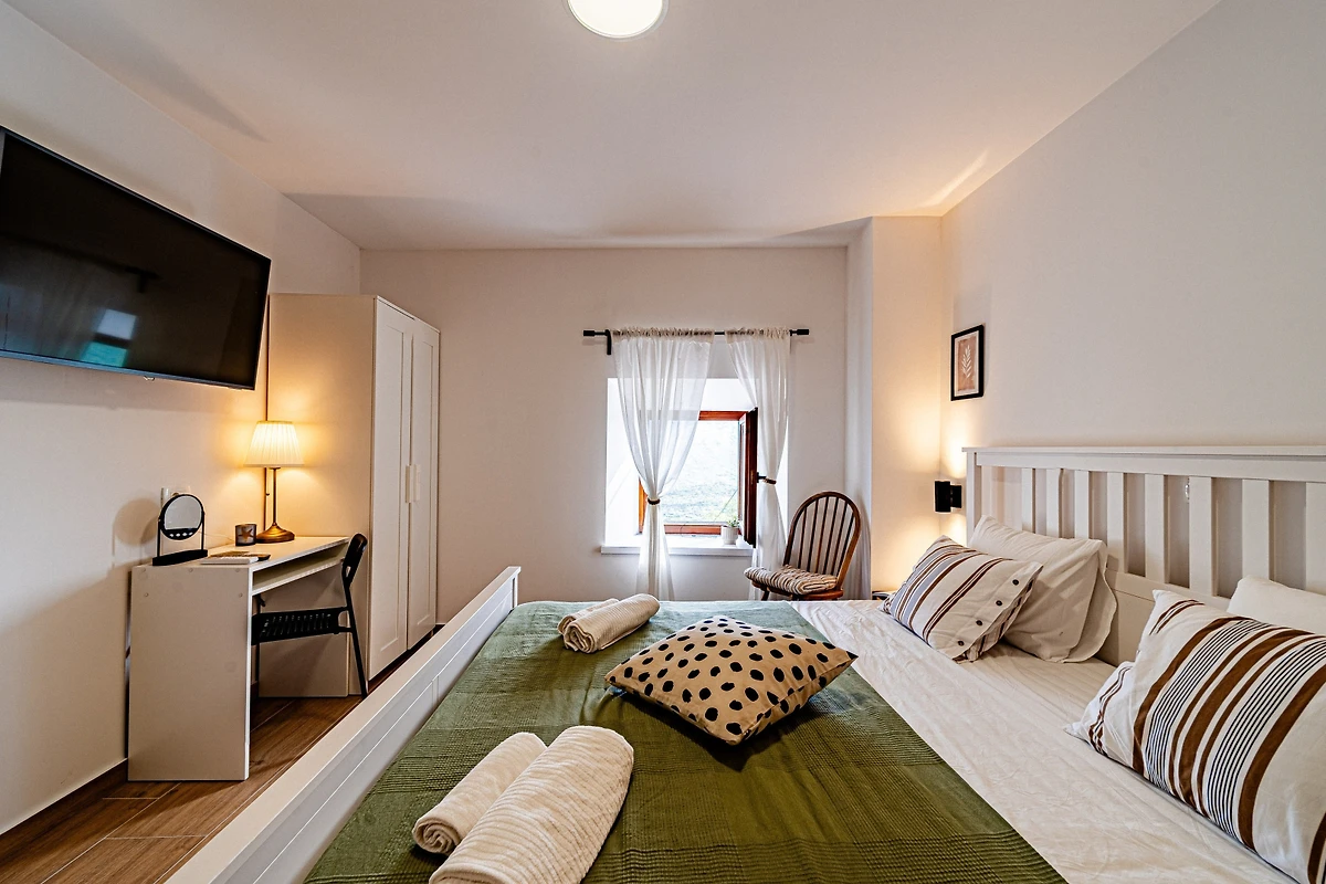 Entdecken Sie Villa Sorelle, eine charmante 96m² ländliche Unterkunft, die im friedlichen Dancanje-Hinterland eingebettet ist und ideal für Familien und Paare ist, die eine ruhige Auszeit suchen. Diese helle und wunderschöne Villa bietet bequem Platz für bis zu 5 Gäste mit ihren durchdacht gestalteten Wohnbereichen.