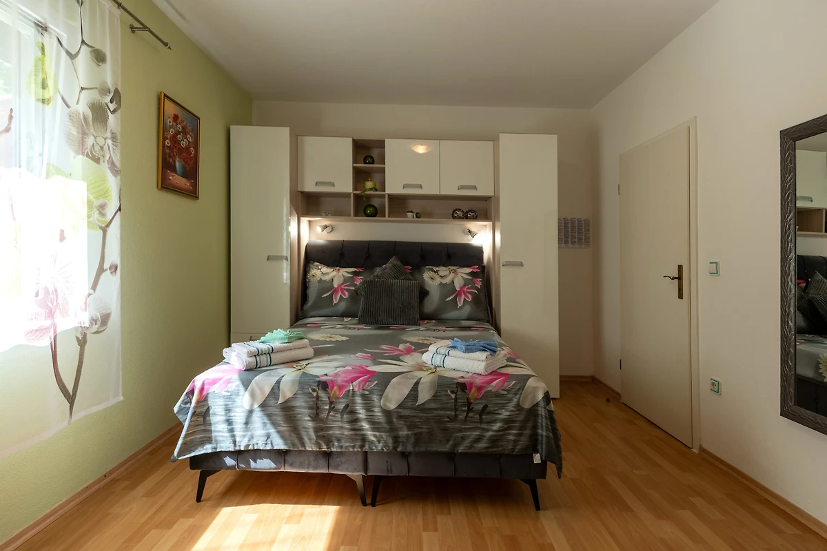 Das Parken ist bequem mit einem privaten Aussenparkplatz im selben Gebäude. Die Wohnung befindet sich in einem Wohngebiet, nur 3 Kilometer vom Felsstrand und Stadtzentrum von Crikvenica entfernt. Ein Supermarkt ist in 2,3 Kilometern leicht erreichbar, und der Flughafen Krk liegt etwa 21 Kilometer entfernt.