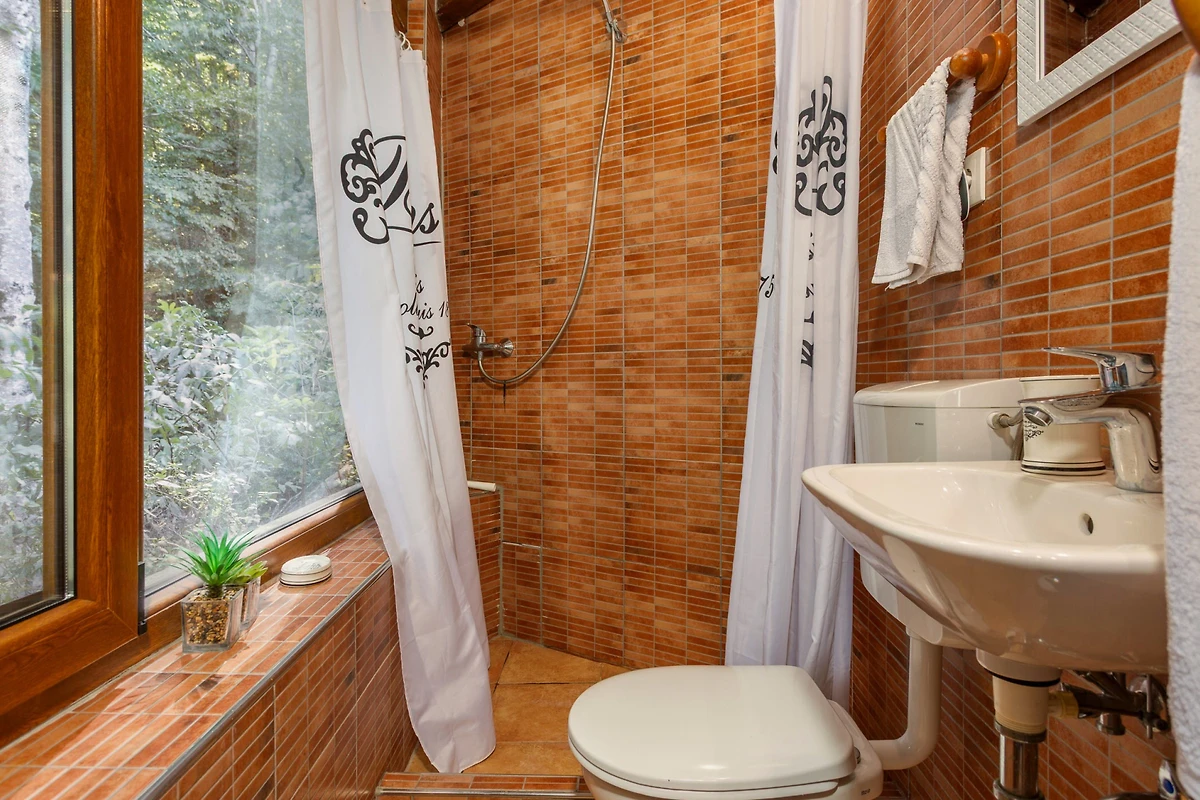 Die Villa beherbergt bequem bis zu 5 Gäste mit einem durchdacht gestalteten Innenbereich, der ein Schlafzimmer mit einem Queensize-Bett und zwei Einzelbetten umfasst. Das Haus verfügt über zwei Badezimmer - eines mit einer Dusche und ein anderes mit einer Toilette - und gewährleistet so Bequemlichkeit für alle Gäste.