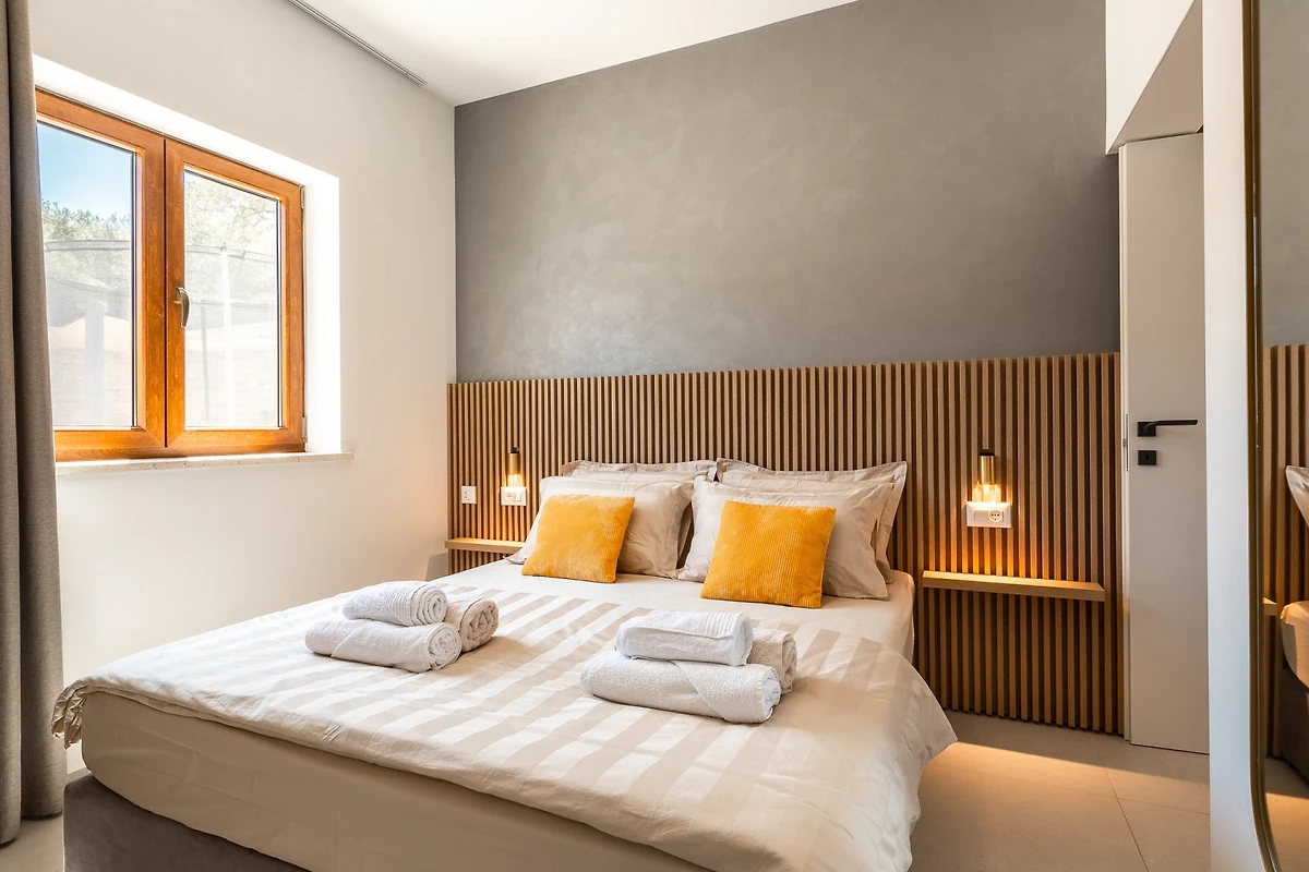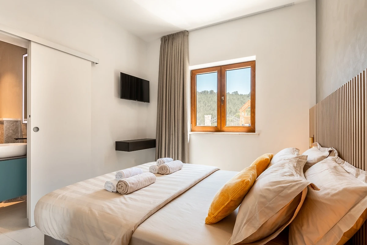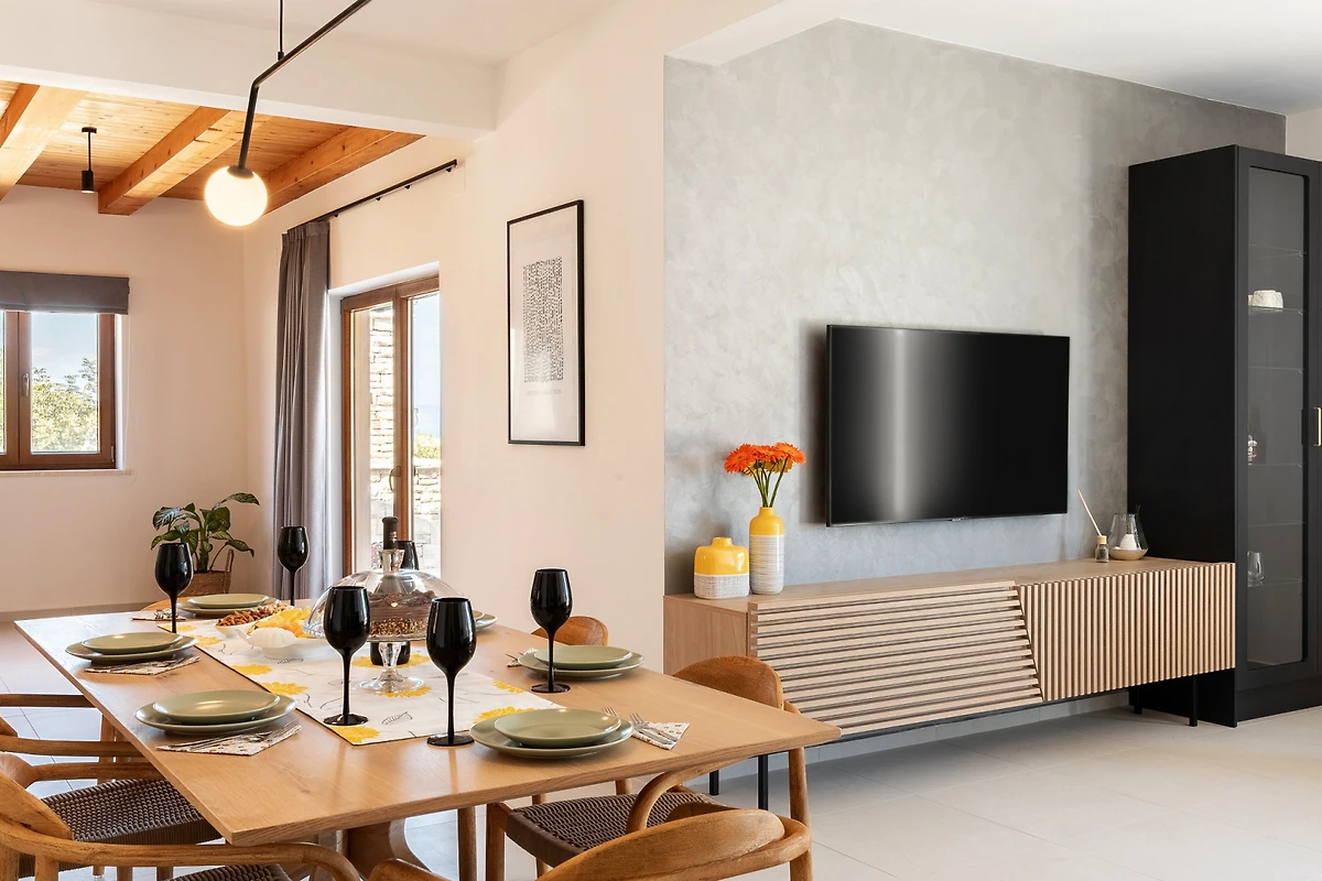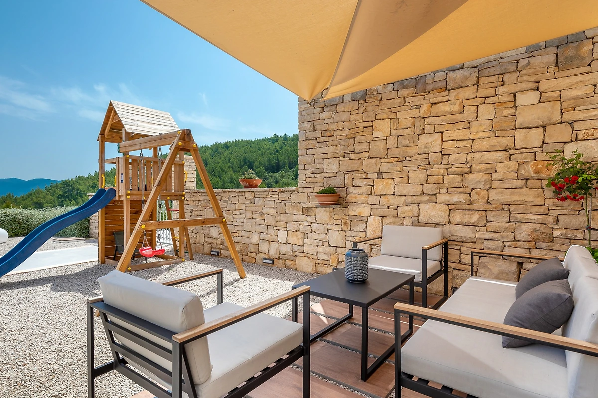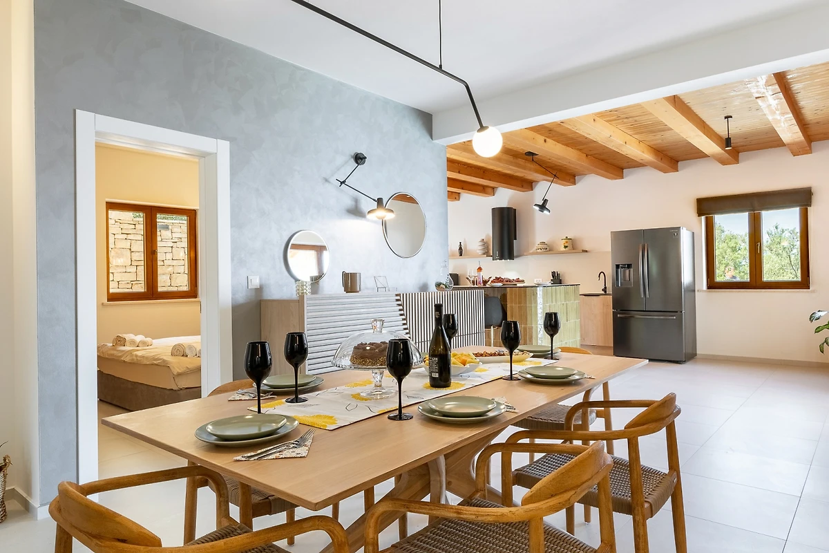 Entdecken Sie Villa Brig, einen atemberaubenden familienfreundlichen Rückzugsort, der in der ruhigen Urbanisation von Blato eingebettet ist und einen perfekten Zufluchtsort für Paare und Gruppen bietet, die Komfort und Entspannung suchen.
