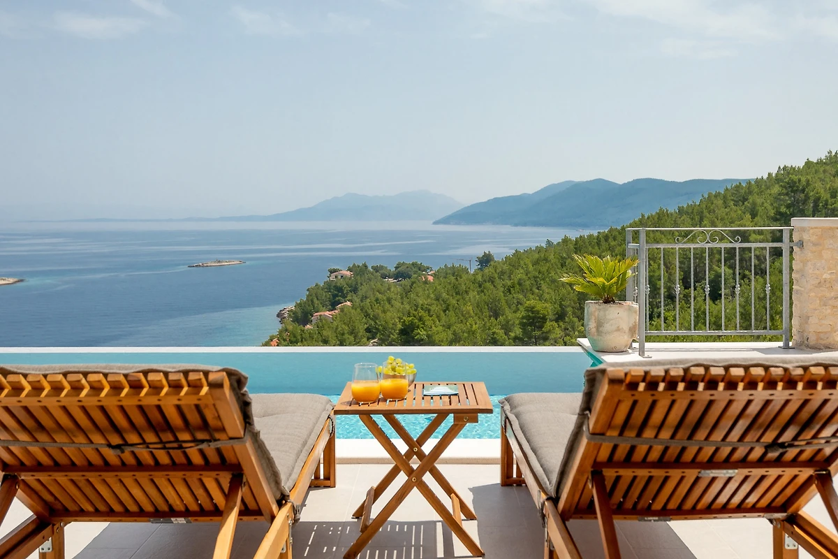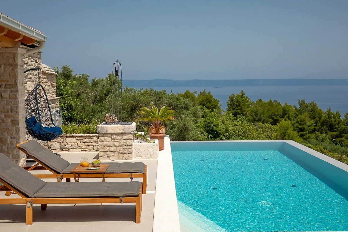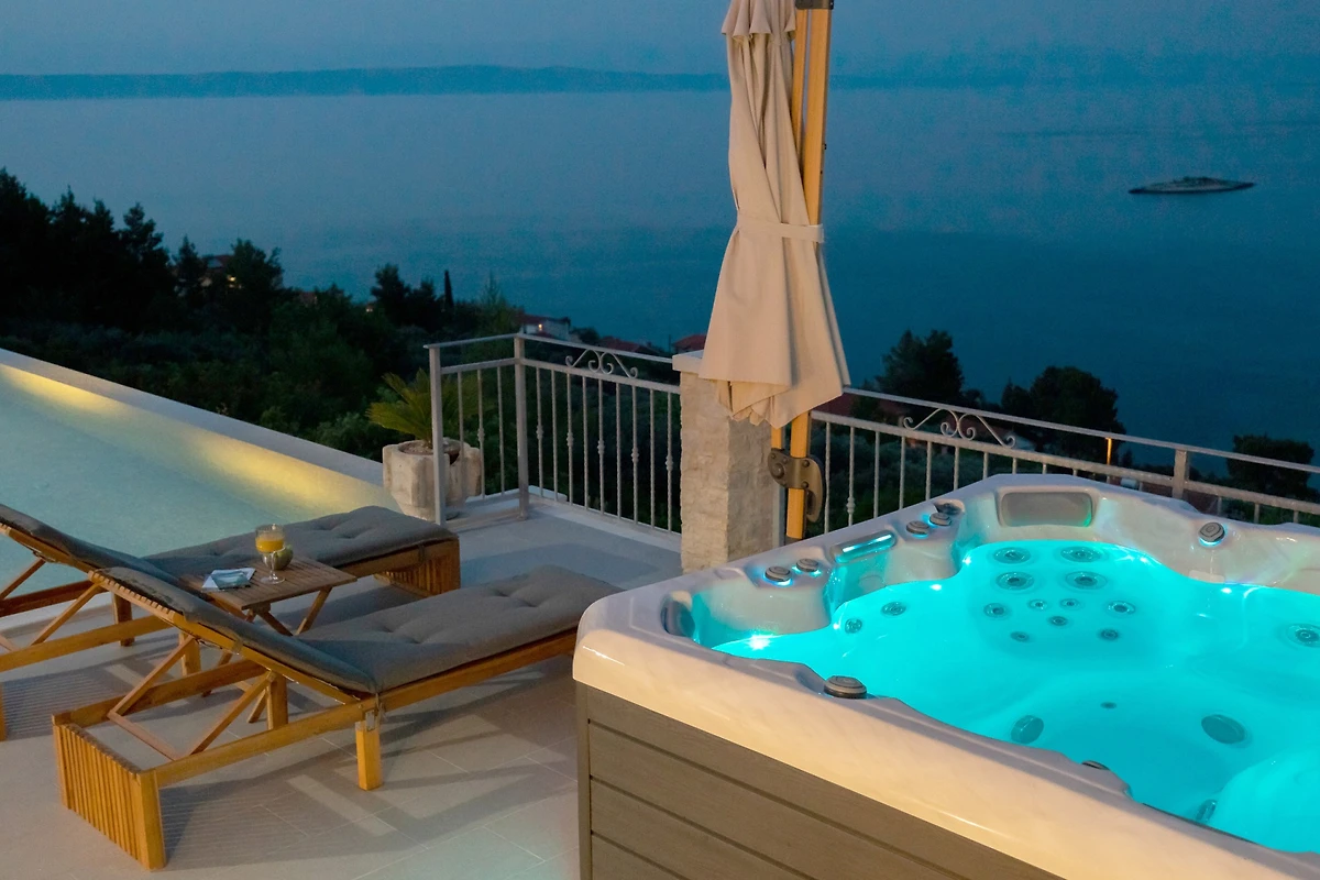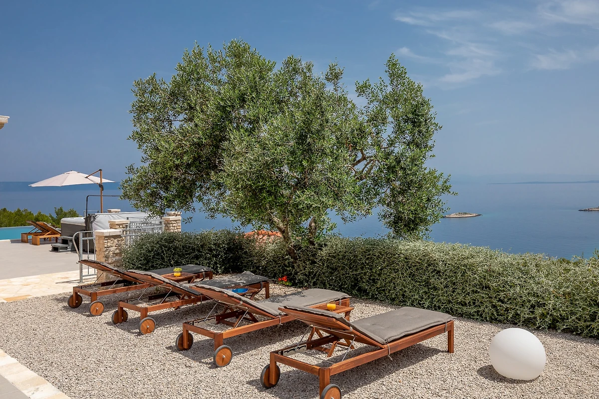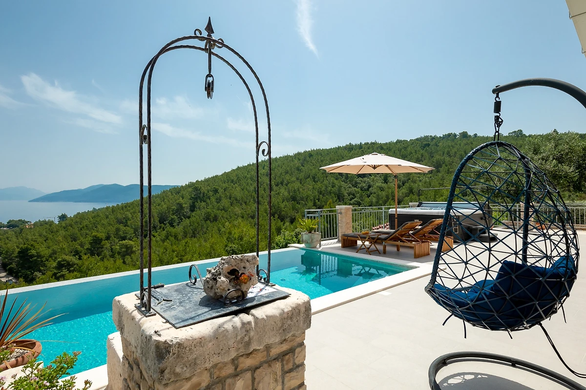 Naturliebhaber werden den privaten 7x4,5 m grossen Swimmingpool lieben, der perfekt ist, um an warmen Tagen abzukühlen. Das 2000 m² grosse Grundstück umfasst einen wunderschönen Garten mit Grillmöglichkeiten und Gartenmöbeln, ideal für Mahlzeiten im Freien und Entspannung. Geniessen Sie atemberaubende Meer- und Poolausblicke von der Terrasse.