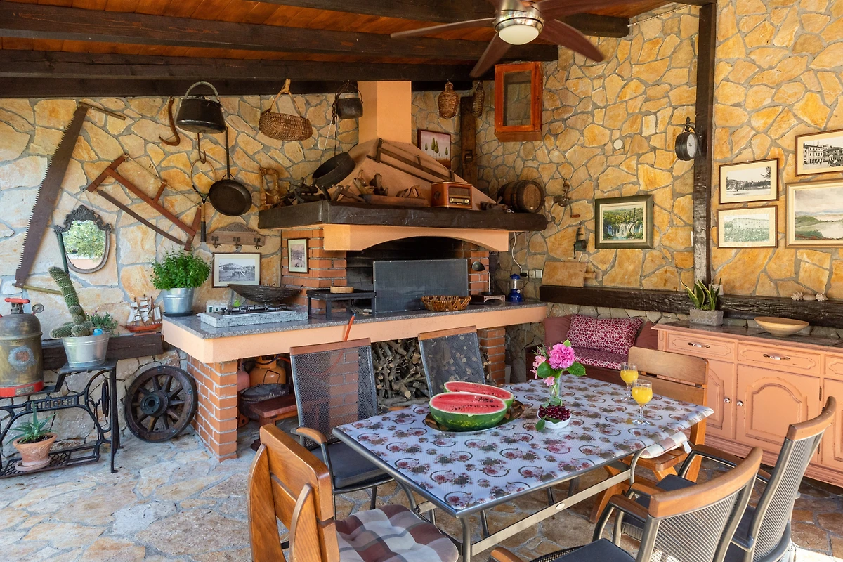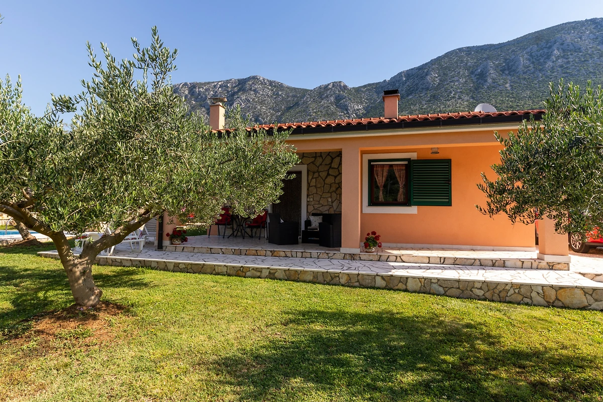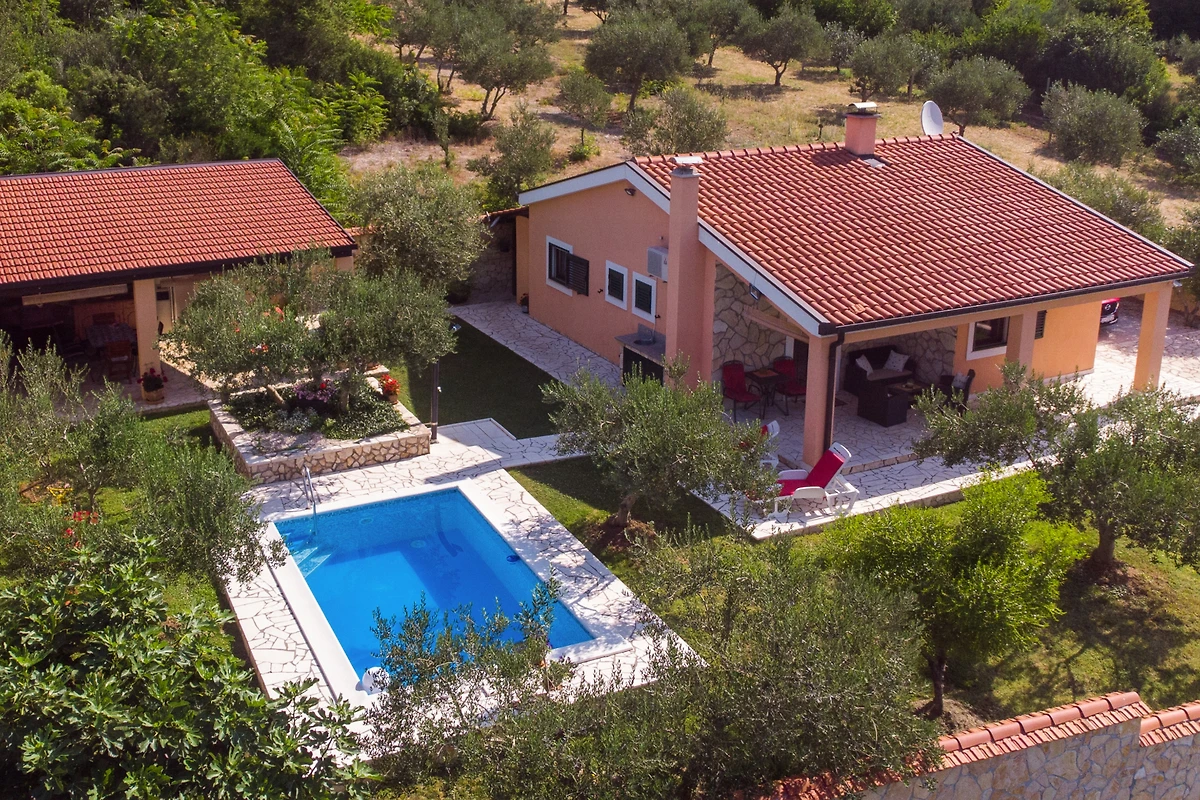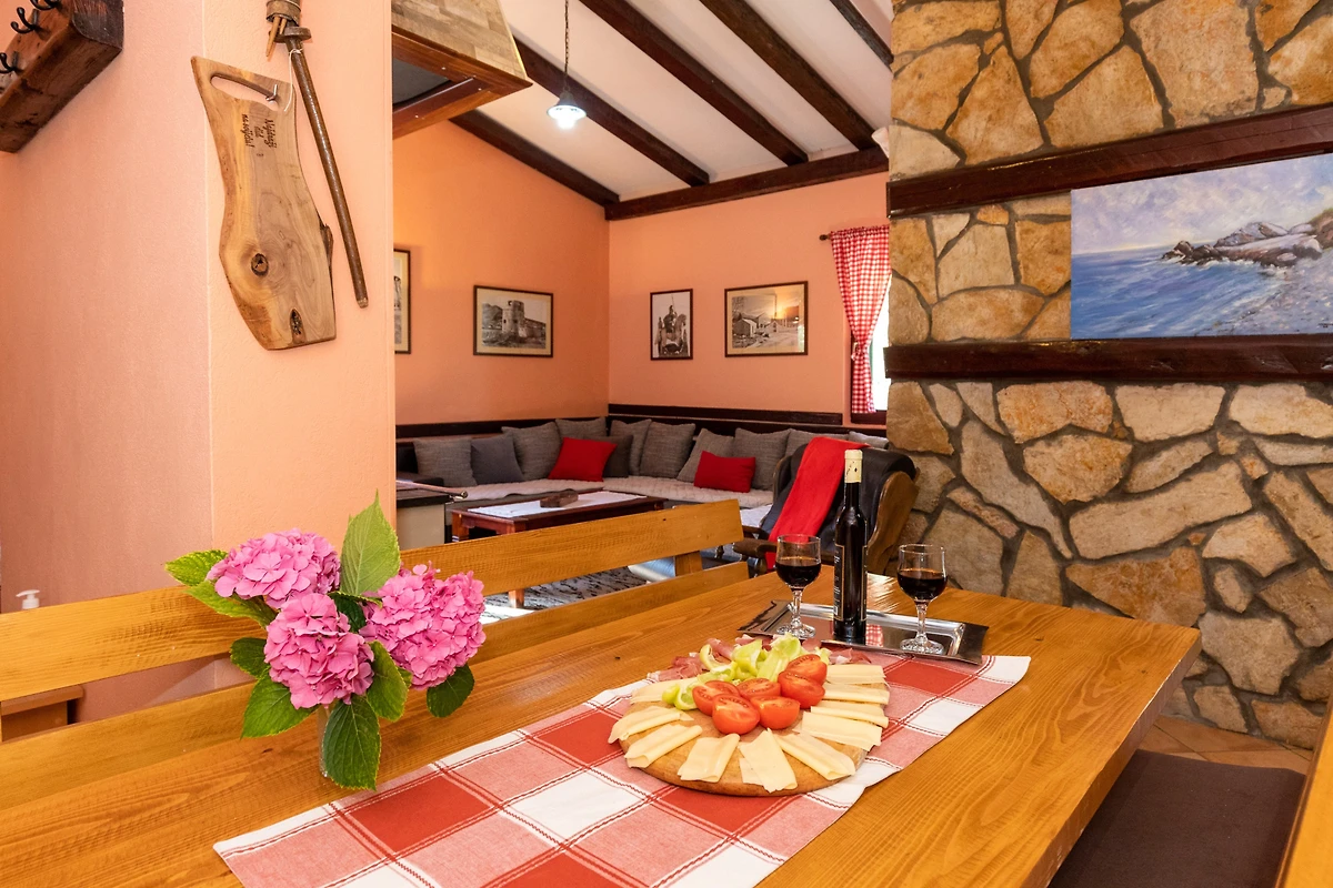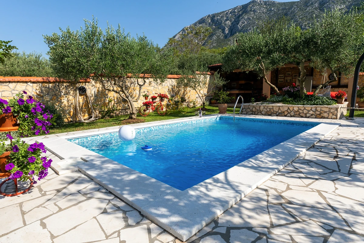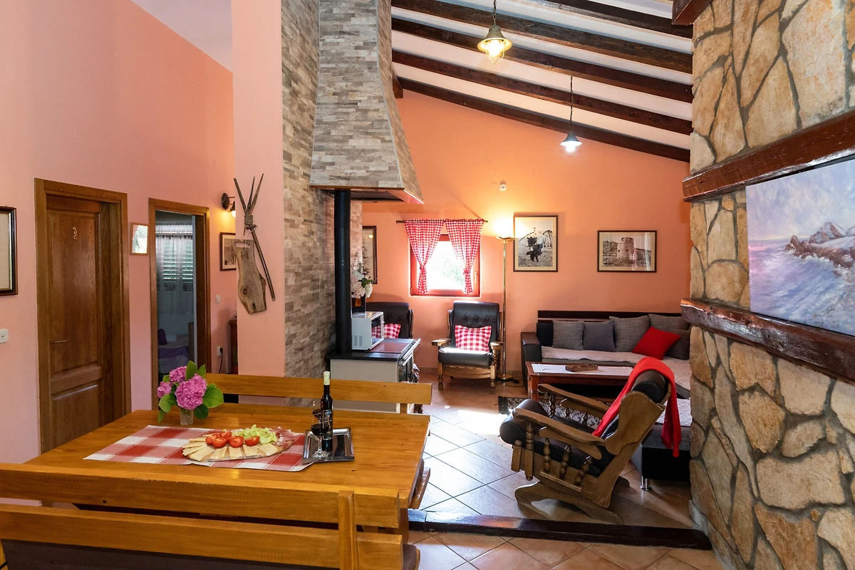 Villa Marija bietet einen entzückenden Landrückzugsort, der ideal für Familien und Paare ist, die eine friedliche Auszeit suchen. Eingebettet in einer ruhigen ländlichen Umgebung, bietet diese charmante 65m² grosse Immobilie einen komfortablen und einladenden Raum mit atemberaubenden Blicken auf Berge, Pool und Garten.