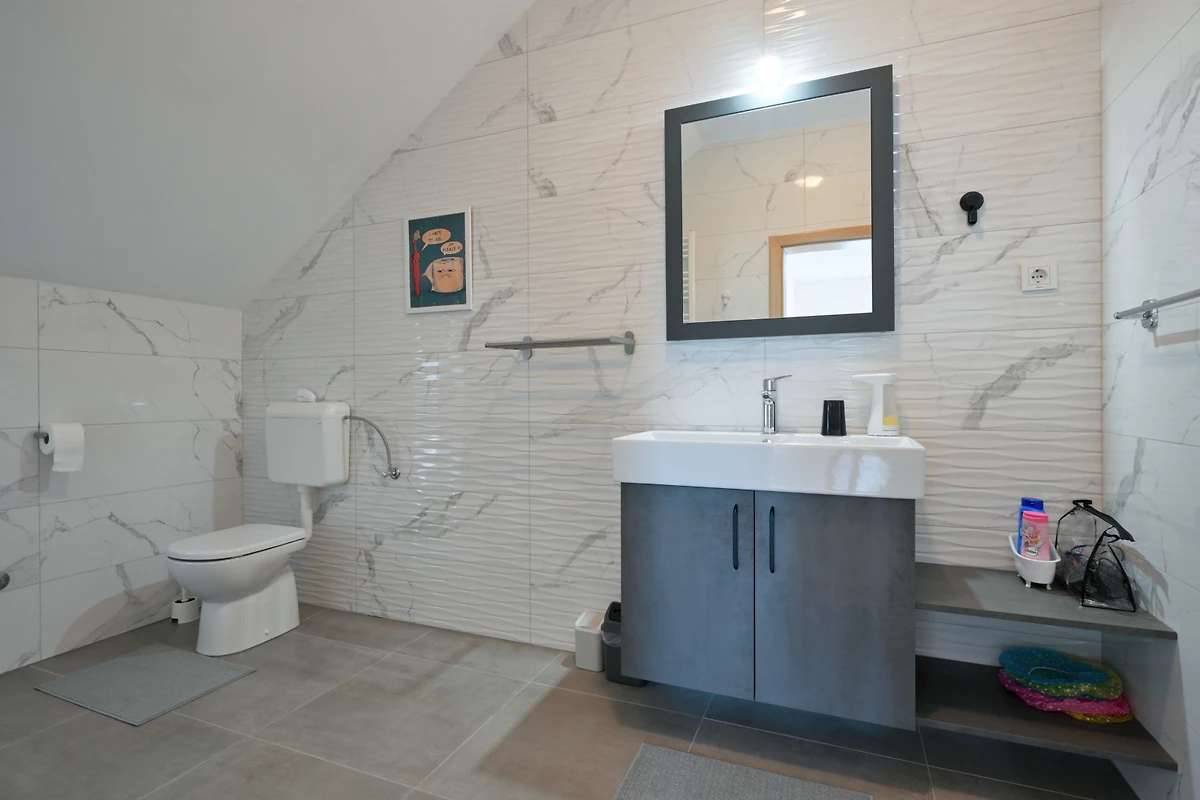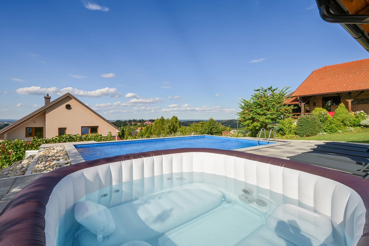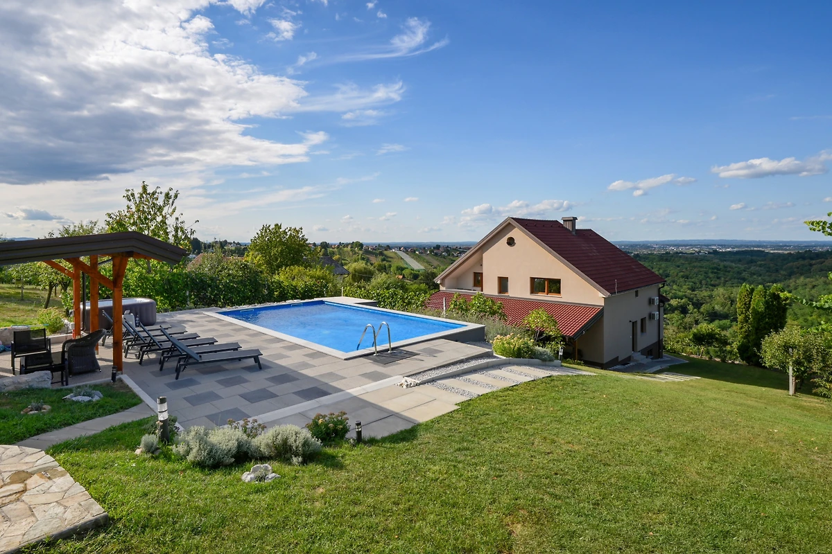Gelegen im ruhigen ländlichen Gebiet von Gornji Kneginec bietet die Villa Nevita eine friedliche Auszeit bei gleichzeitiger bequemer Nähe zu Varaždin (8 km). Die Villa ist haustierfreundlich und erlaubt einem pelzigen Begleiter, an Ihrem Aufenthalt teilzunehmen. Mit 4 privaten Parkplätzen und einem grosszügigen Grundstück von 4.500 m² bietet diese Villa die perfekte Kombination aus Komfort, Privatsphäre und natürlicher Schönheit.