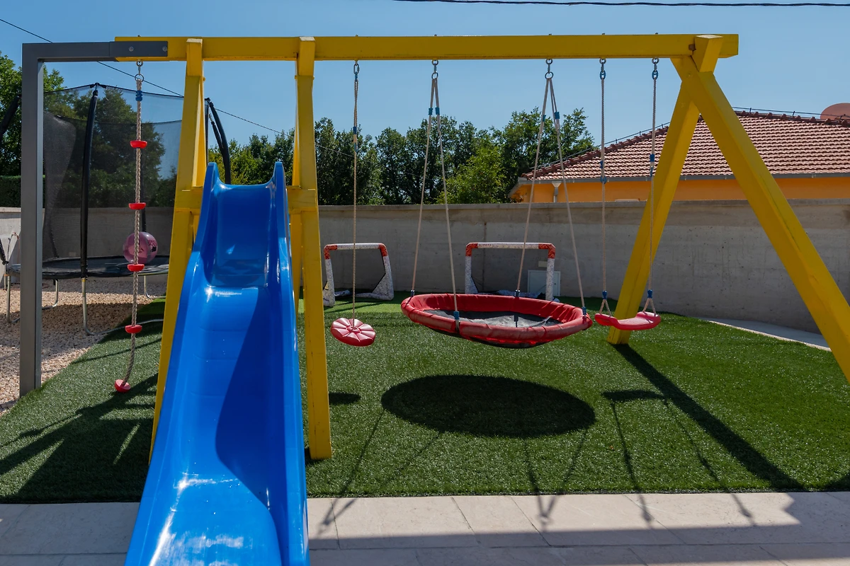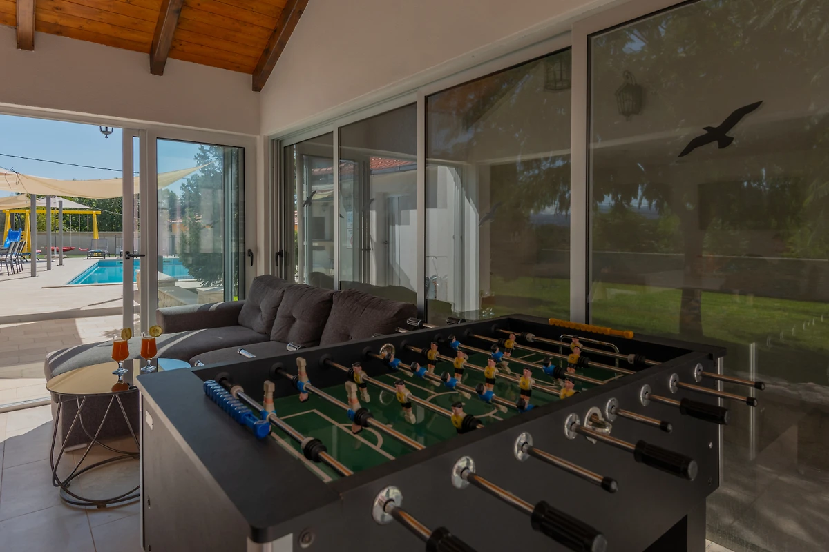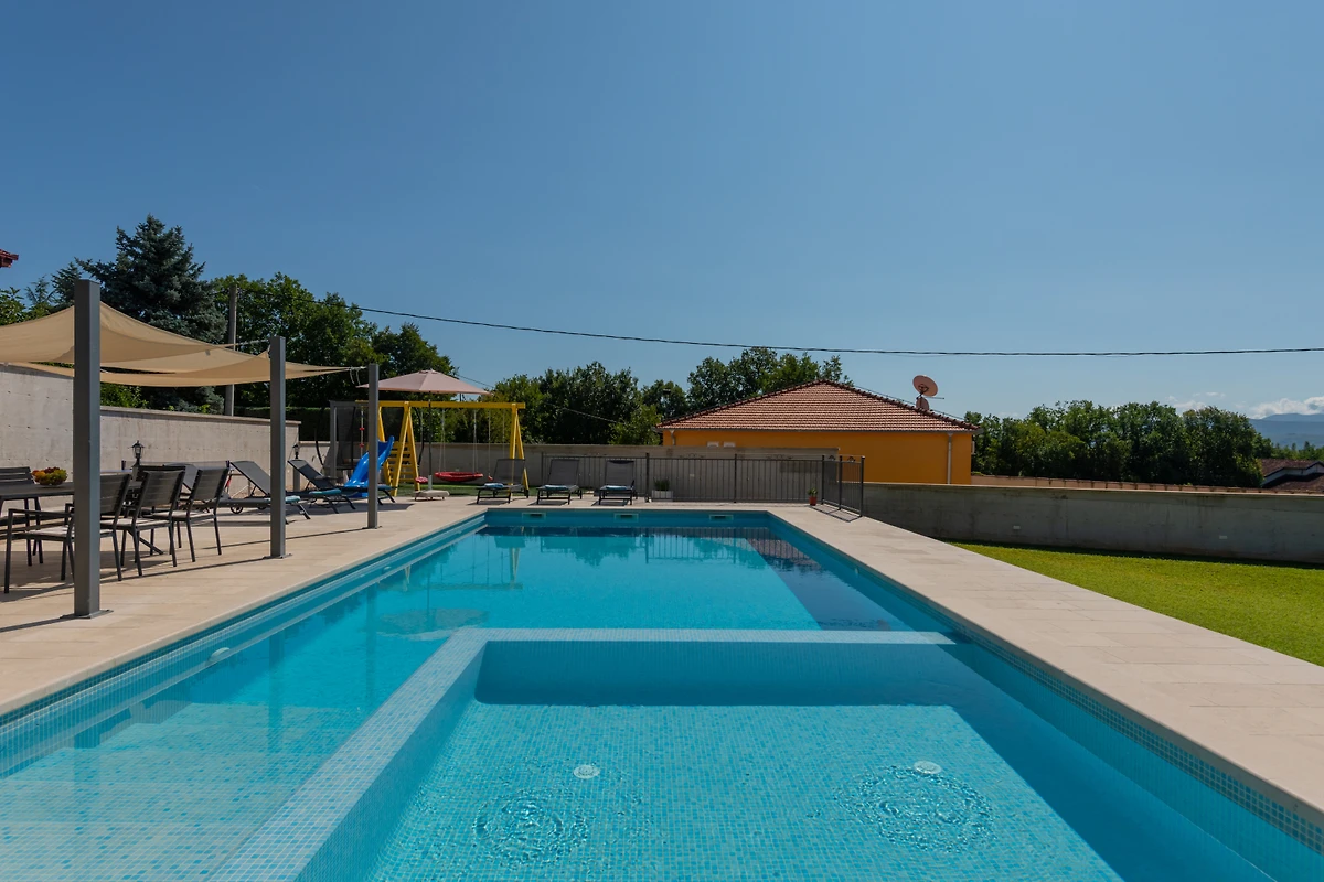 Das Parken ist bequem mit 4 privaten Aussenparkplätzen, die sich direkt auf dem Grundstück befinden. Die Unterhaltung ist mit einem Fernseher, der mehrere Sprachoptionen bietet, gedeckt. Zusätzliche Annehmlichkeiten umfassen ein Bügeleisen und einen privaten Swimmingpool mit den Massen 5x11 Meter, der perfekt für entspannte Sommertage ist.