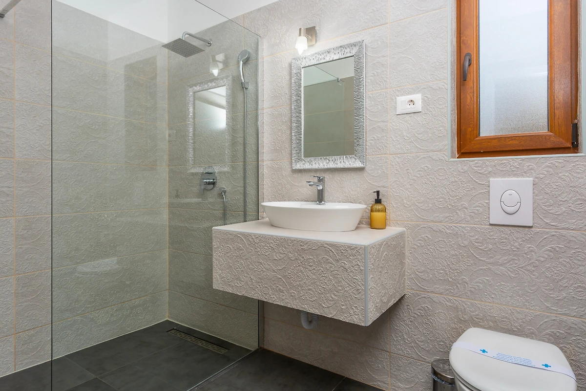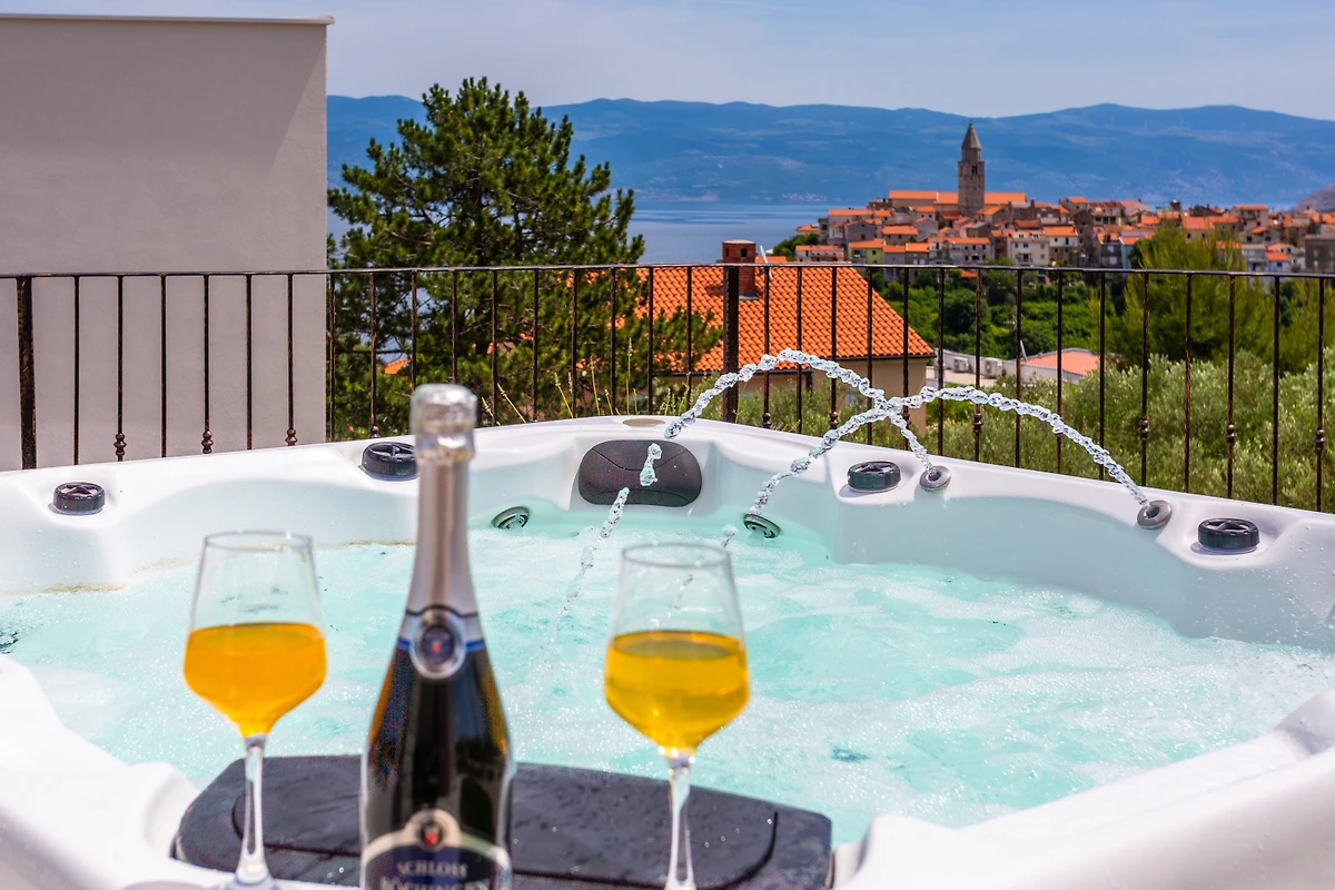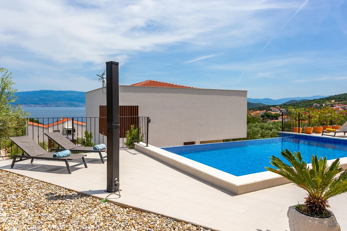 Gelegen in einer ruhigen Urbanisierung befindet sich die Villa nur 750 Meter von einem Felsstrand entfernt und bietet bequemen Zugang zur Stadt Krk (12 km), Supermärkten und dem Flughafen Omišalj (17 km). Ob Sie eine romantische Auszeit oder einen Familienurlaub suchen, diese helle und wunderschöne Villa bietet den perfekten mediterranen Rückzugsort.