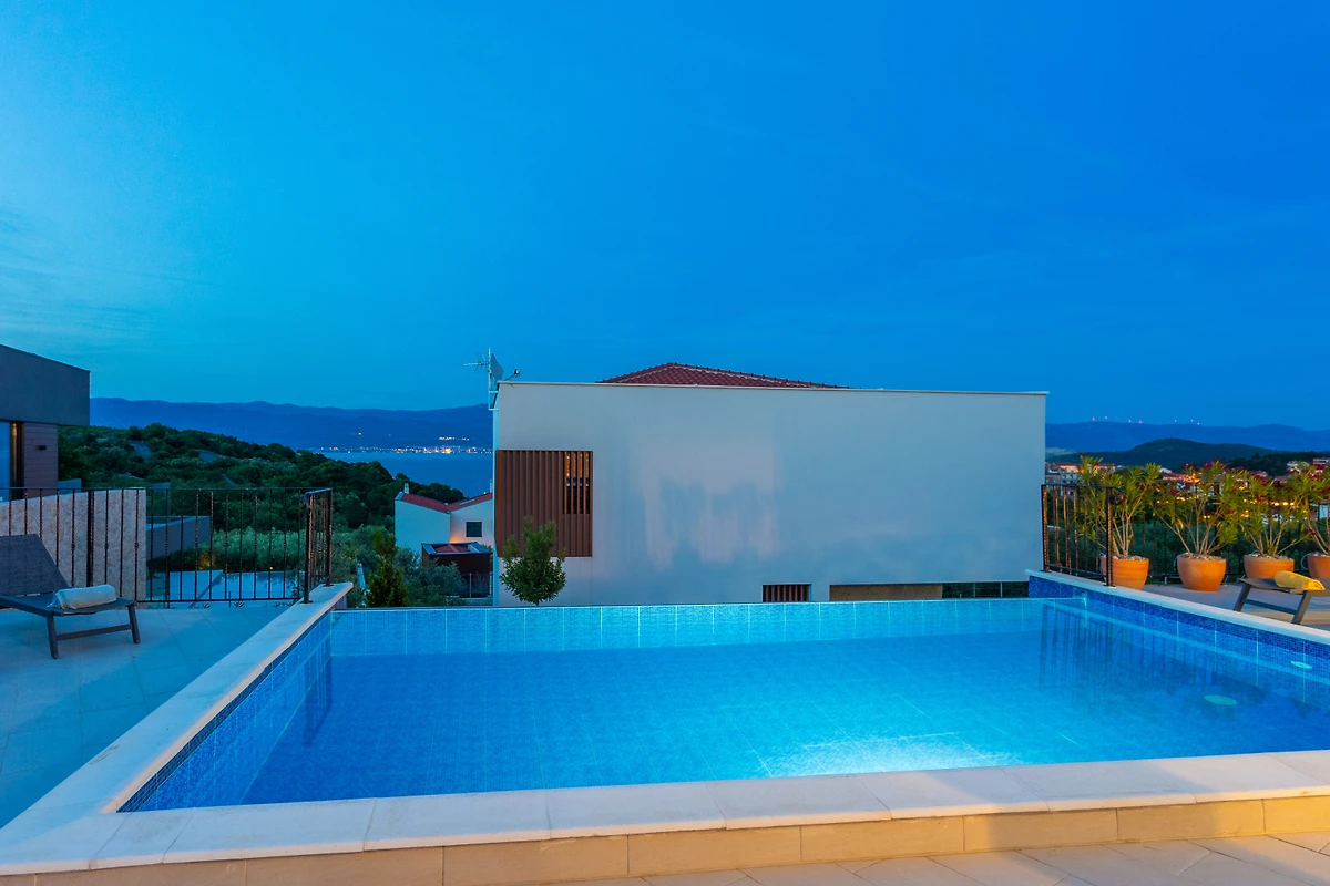 Naturliebhaber werden den privaten Swimmingpool mit einer Grösse von 7x4 Metern lieben, der perfekt für erfrischende Abkühlung und Familienunterhaltung ist. Die Immobilie verfügt über einen wunderschönen Garten, einen Grillbereich und eine einladende Terrasse, ideal zum Speisen im Freien und zum Geniessen der atemberaubenden Meer- und Bergaussicht.