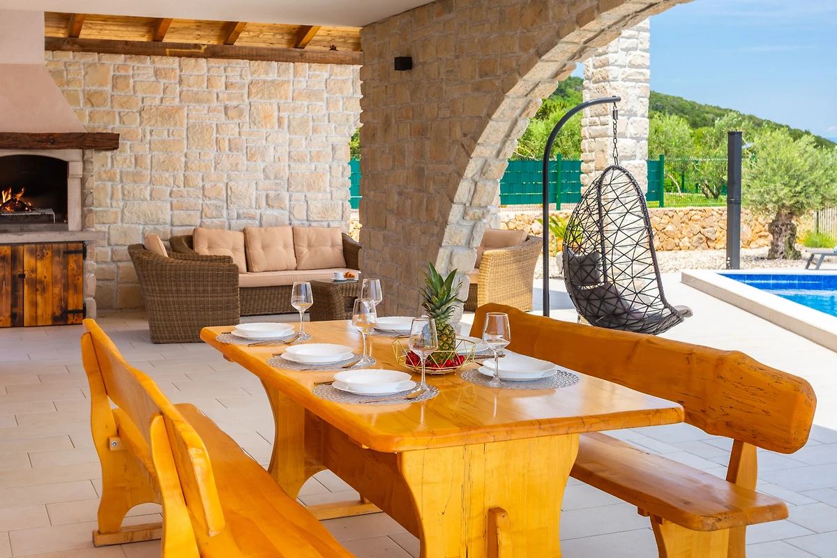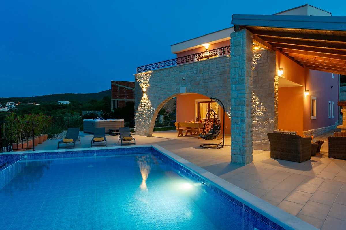 Entdecken Sie eine ruhige Familienunterkunft, die in der malerischen Stadt Vrbnik eingebettet ist. Diese geräumige Ferienvilla bietet einen aussergewöhnlichen Rückzugsort für bis zu 10 Gäste. Verteilt auf 175 Quadratmeter mit einem grosszügigen 470 Quadratmeter grossen Grundstück verspricht diese Villa Komfort, Entspannung und unvergessliche Erinnerungen.