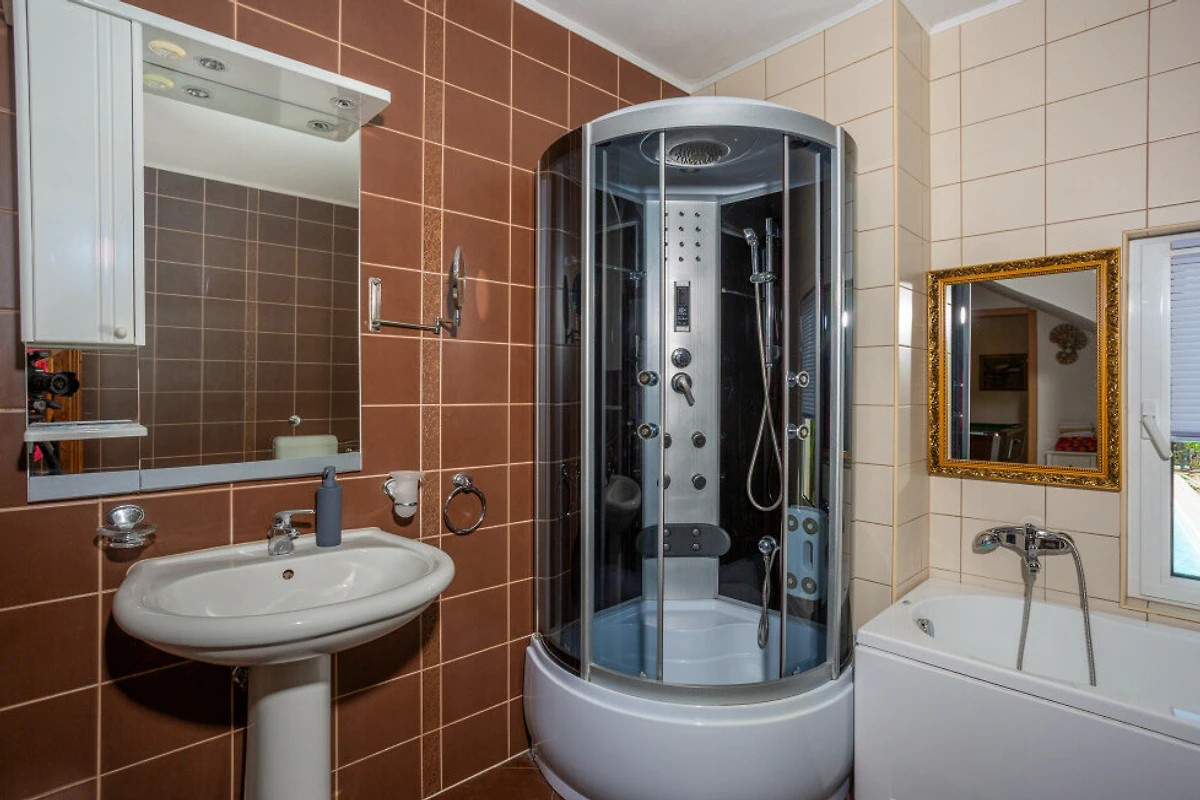 Entdecken Sie eine atemberaubende Ferienbehausung, die in der ruhigen Urbanisation von Bregi eingebettet ist und einen perfekten Rückzugsort für Familien und Paare bietet, die Komfort und Entspannung suchen. Dieses geräumige 320 Quadratmeter grosse Haus bietet Platz für bis zu 8 Gäste mit 4 wunderschön ausgestatteten Schlafzimmern, die eine Mischung aus 3 Kingsize-Betten und 2 Einzelbetten umfassen.