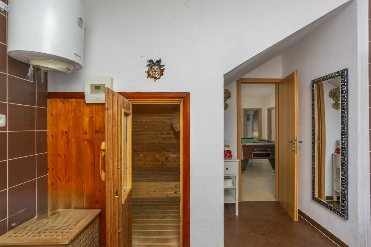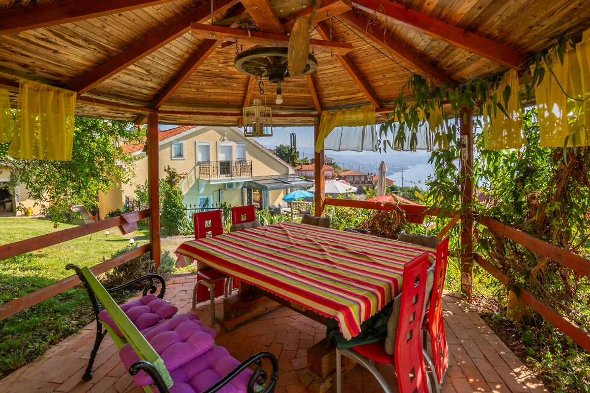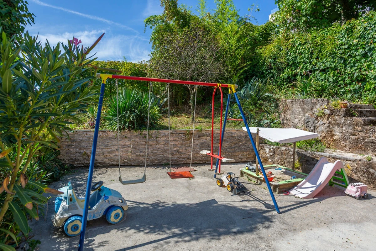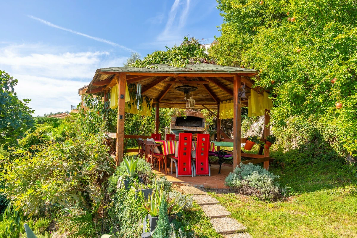 Im Inneren können Gäste Klimaanlage, WLAN, Satellitenfernsehen, einen gemütlichen Kamin und ein Bügeleisen zur Bequemlichkeit geniessen. Das Haus bietet atemberaubende Ausblicke auf das Meer, die Berge, den Pool und den Garten. Tierbesitzer werden erfreut sein zu erfahren, dass bis zu 2 Tiere willkommen sind.