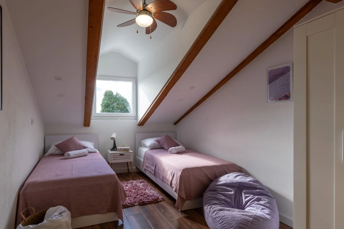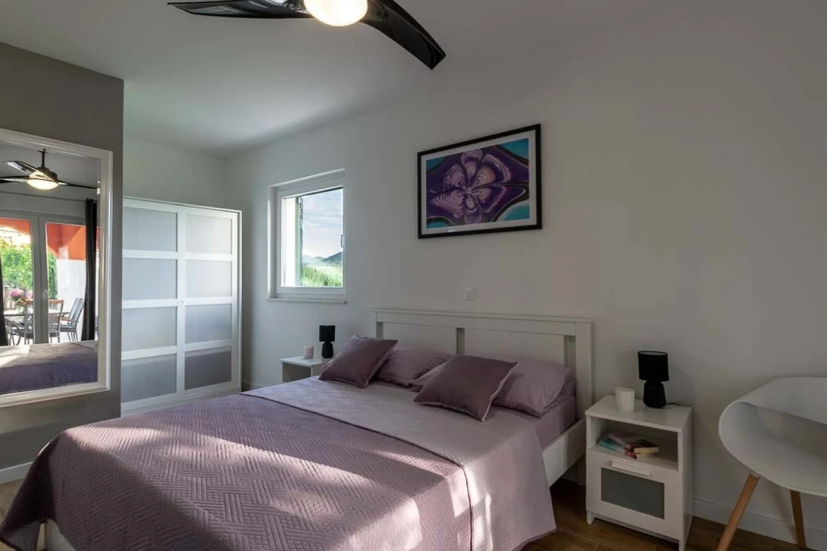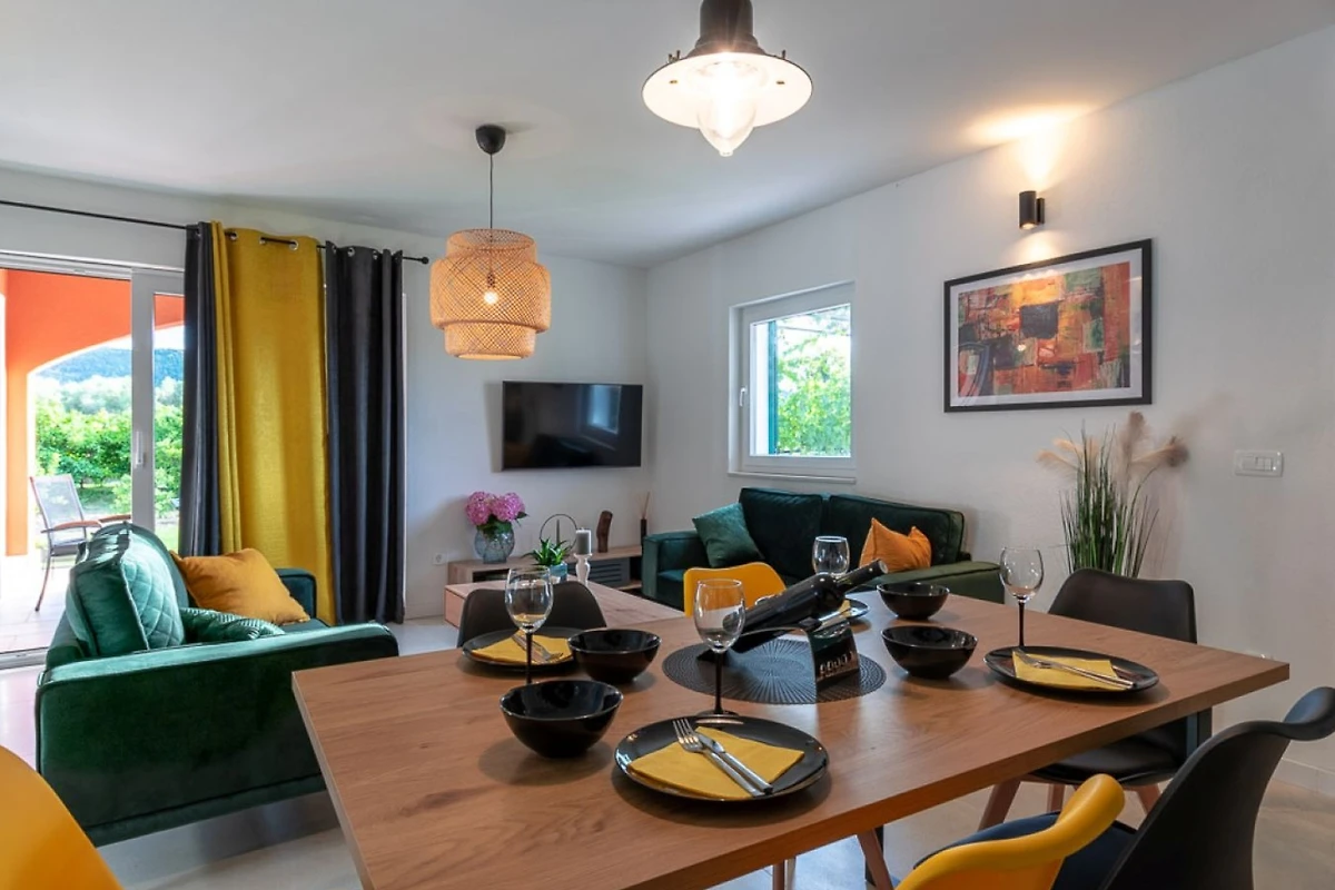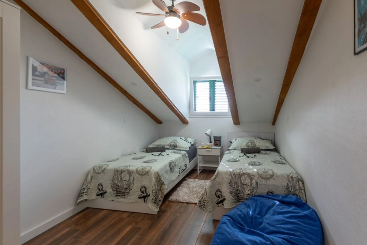 Villa MiaMare bietet einen entzückenden familienfreundlichen und paarfreundlichen Rückzugsort, eingebettet im malerischen Buk Vlaka-Gebiet. Diese geräumige 160m² grosse Immobilie bietet komfortable Unterkunft für bis zu 9 Gäste und verfügt über 4 gut ausgestattete Schlafzimmer mit flexiblen Schlafmöglichkeiten: 2 Kingsize-Betten, 4 Einzelbetten und 2 zusätzliche Betten.