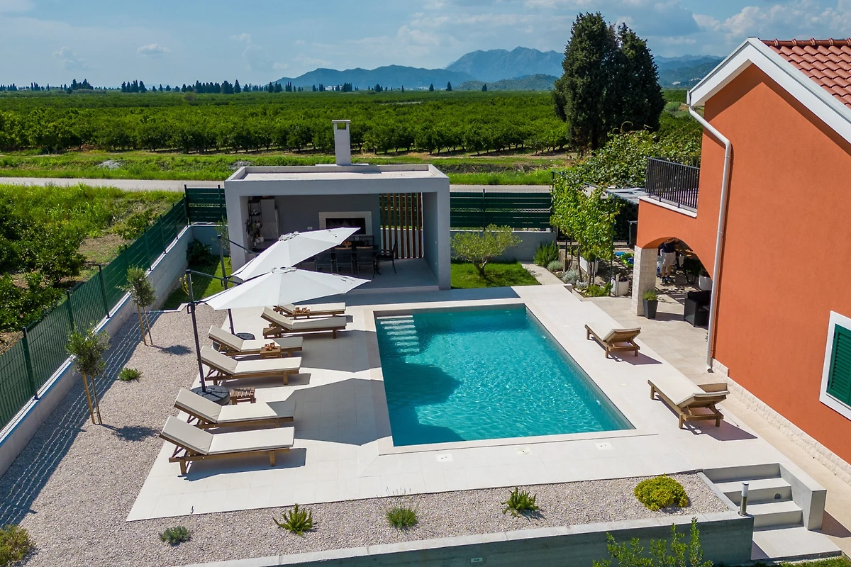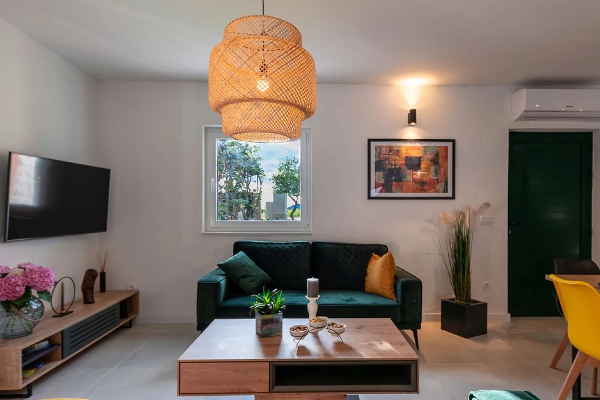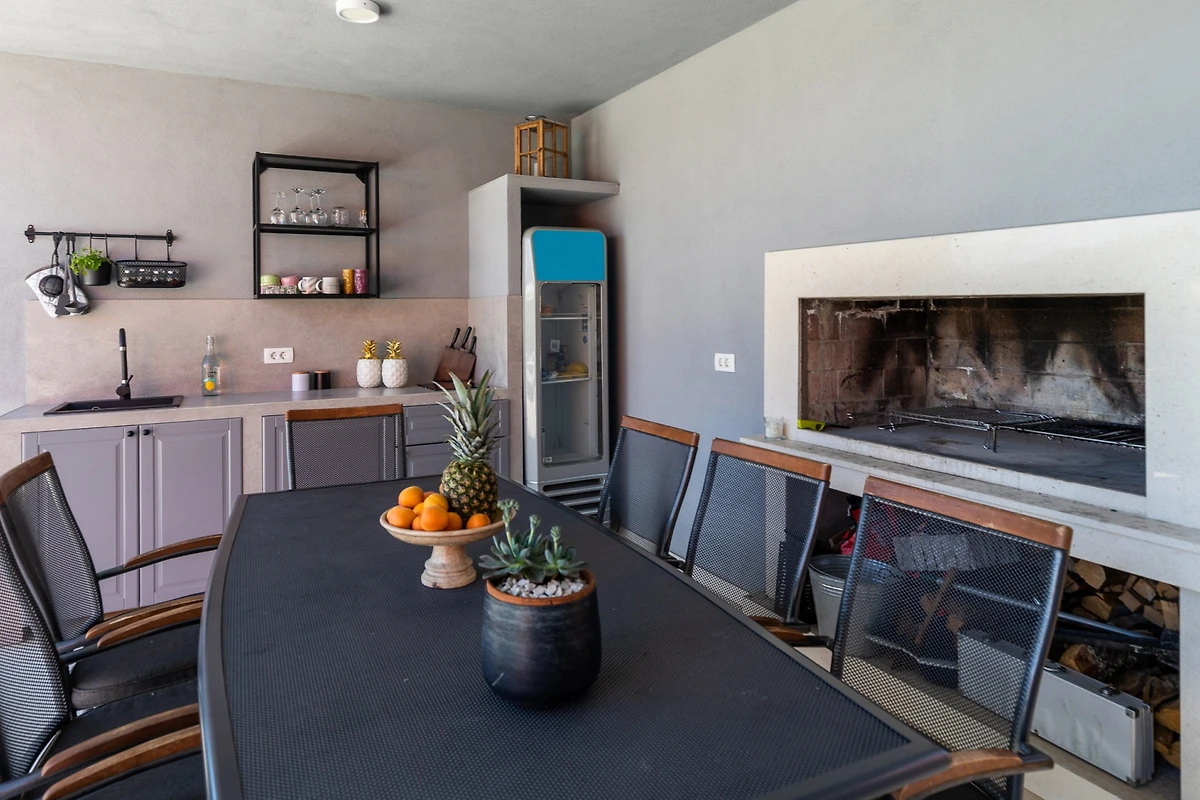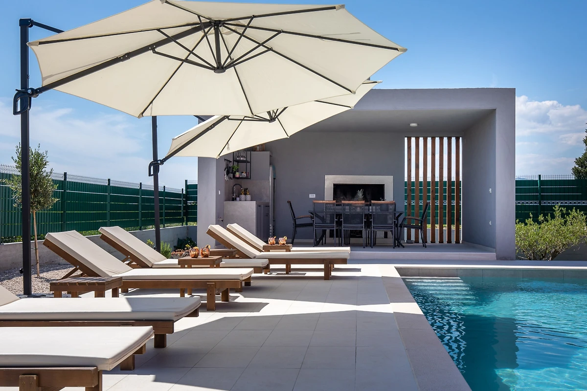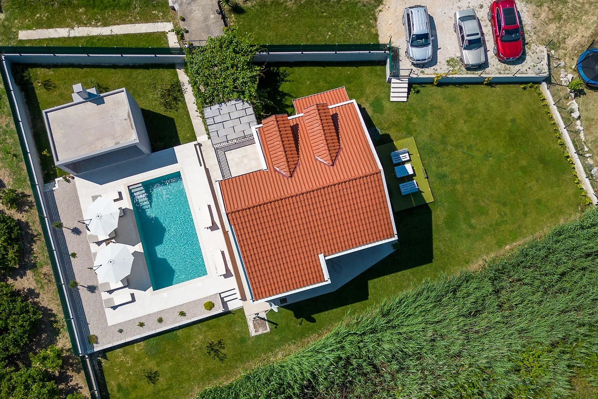 Villa MiaMare bietet einen entzückenden familienfreundlichen und paarfreundlichen Rückzugsort, eingebettet im malerischen Buk Vlaka-Gebiet. Diese geräumige 160m² grosse Immobilie bietet komfortable Unterkunft für bis zu 9 Gäste und verfügt über 4 gut ausgestattete Schlafzimmer mit flexiblen Schlafmöglichkeiten: 2 Kingsize-Betten, 4 Einzelbetten und 2 zusätzliche Betten.