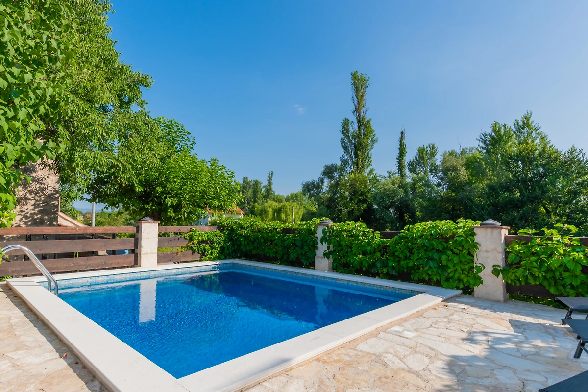 Entdecken Sie Villa Toni, eine charmante 135m² Immobilie, die in der ruhigen Urbanisation von Zmijavci eingebettet ist und ideal für Familien und Paare ist, die einen friedlichen kroatischen Urlaub suchen. Diese geräumige Villa bietet bequem Platz für bis zu 8 Gäste mit 4 gut ausgestatteten Schlafzimmern, die eine Mischung aus King-Size-, Queen-Size- und Einzelbetten aufweisen.