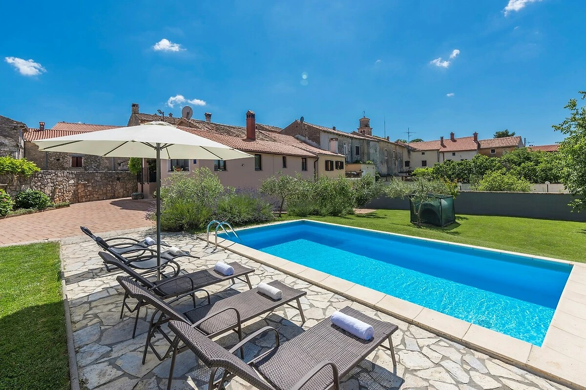 Barban. Die Villa befindet sich auf einem geschlossenen Gartengrundstück. Parkplatz auf dem Grundstück.